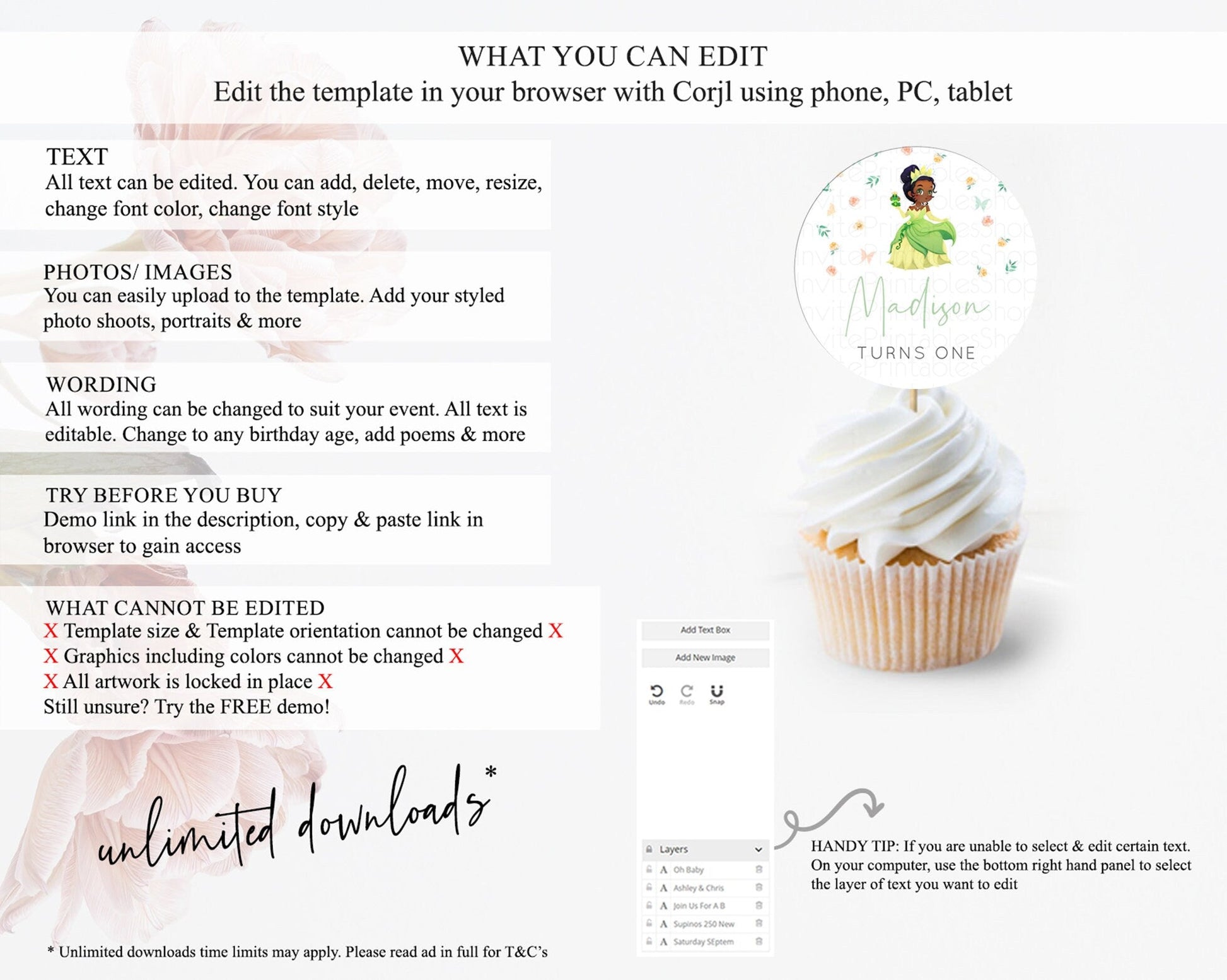 Princess Cupcake Toppers Castle Cupcake Toppers Royal Princess Decor Fairy Tale Enchanted Castle Pastel Floral Garden Table Number D10358