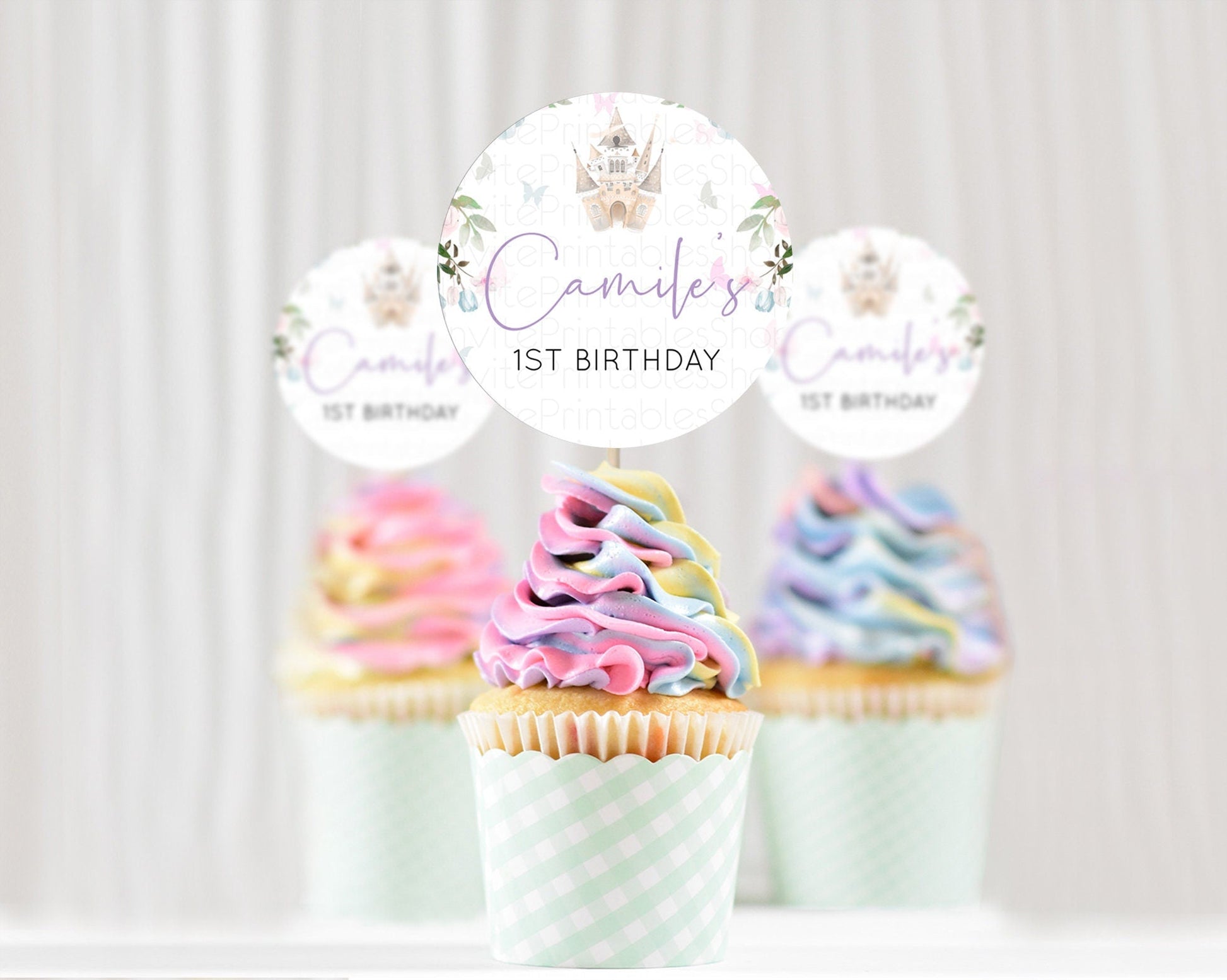 Princess Cupcake Toppers Castle Cupcake Toppers Royal Princess Decor Fairy Tale Enchanted Castle Pastel Floral Garden Table Number D10471