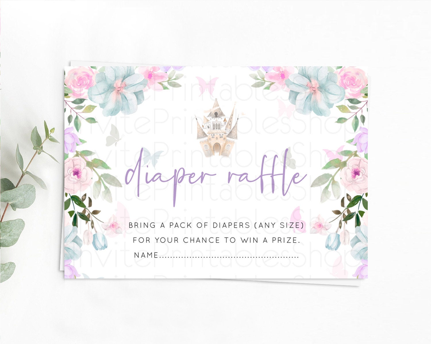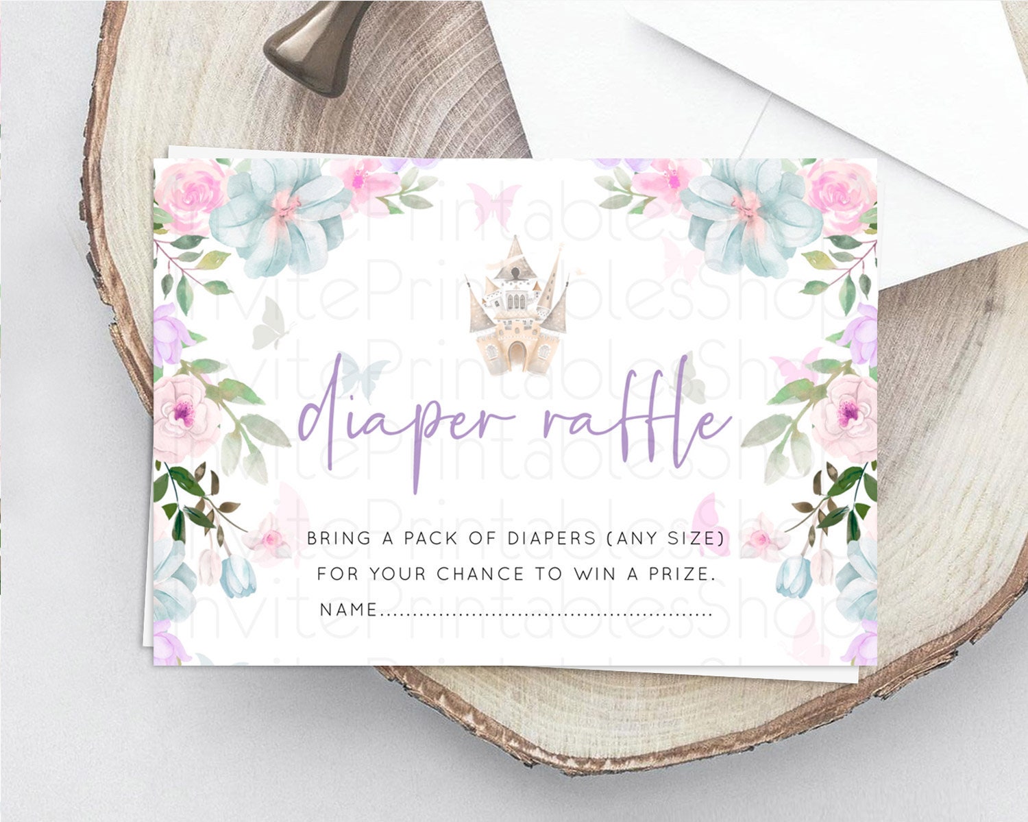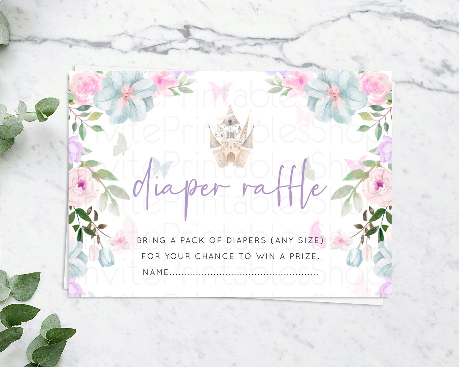 Princess Diaper Raffle Card Castle Diaper Ticket Insert Secret Garden Enchanted Castle Pastel Floral Garden Baby Shower Poem Request D10471