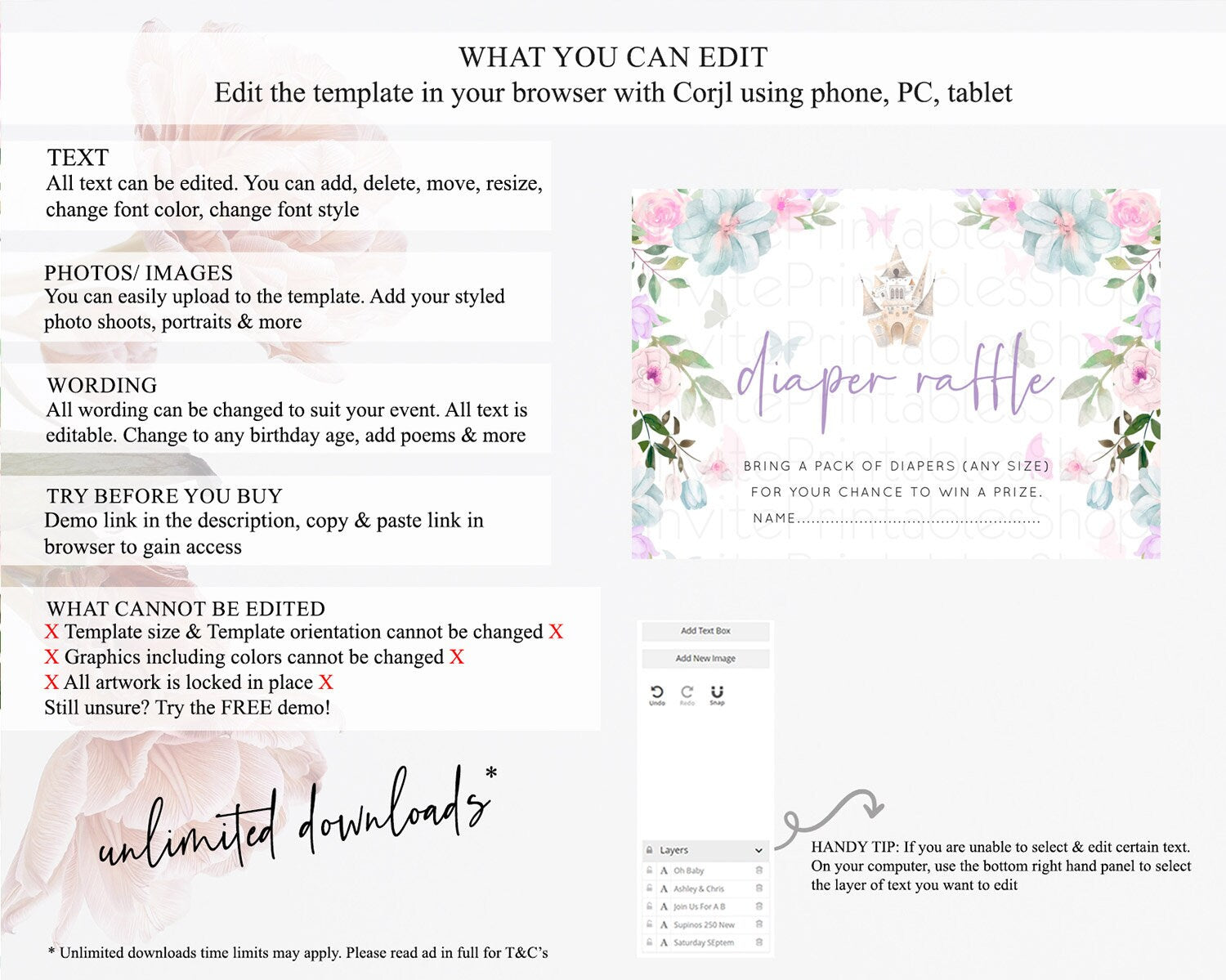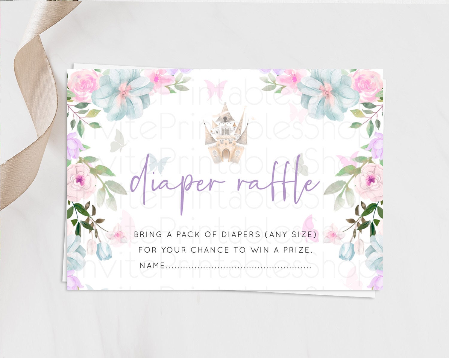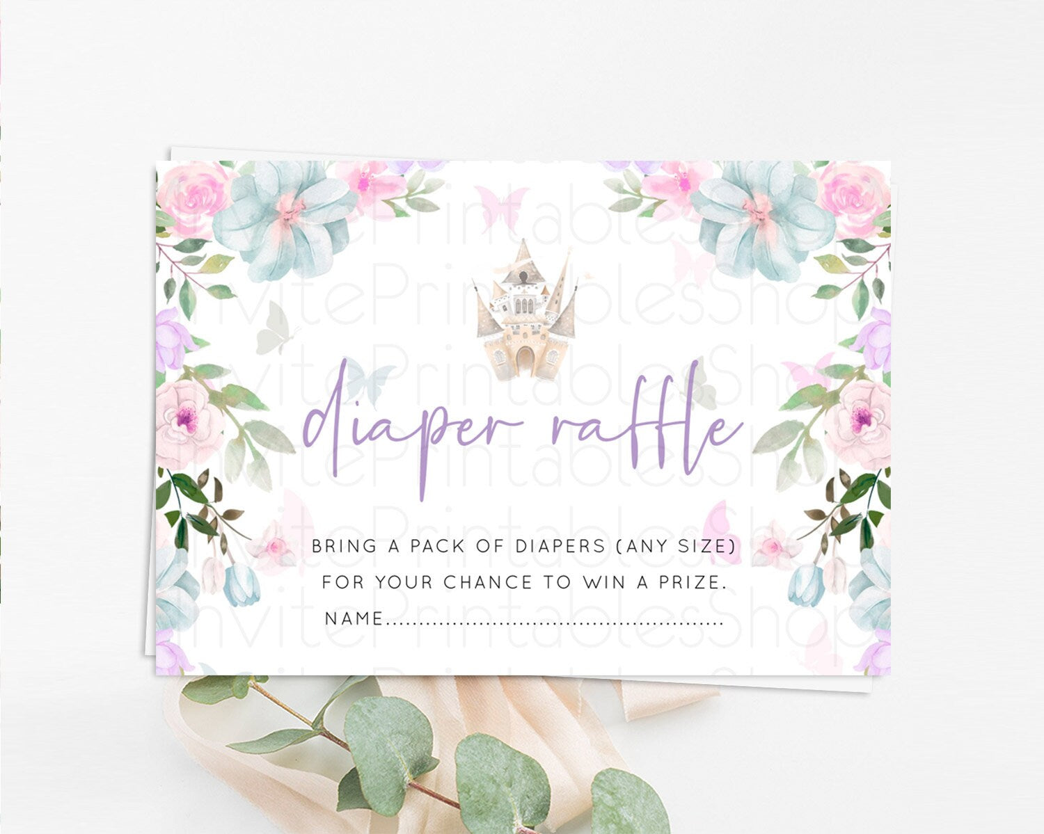 Princess Diaper Raffle Card Castle Diaper Ticket Insert Secret Garden Enchanted Castle Pastel Floral Garden Baby Shower Poem Request D10471