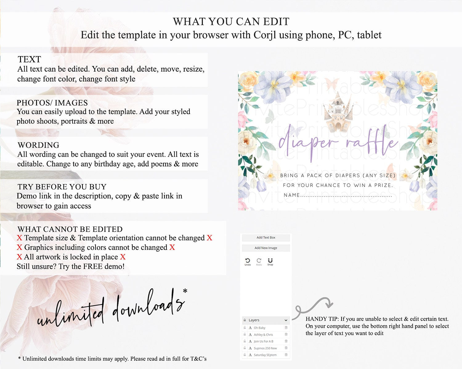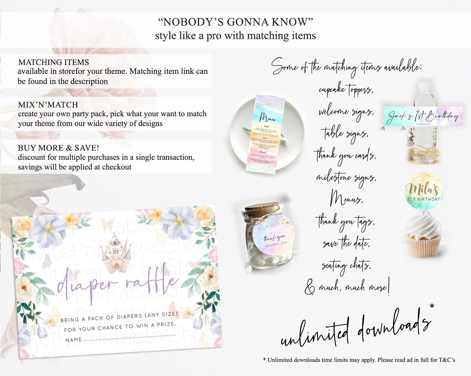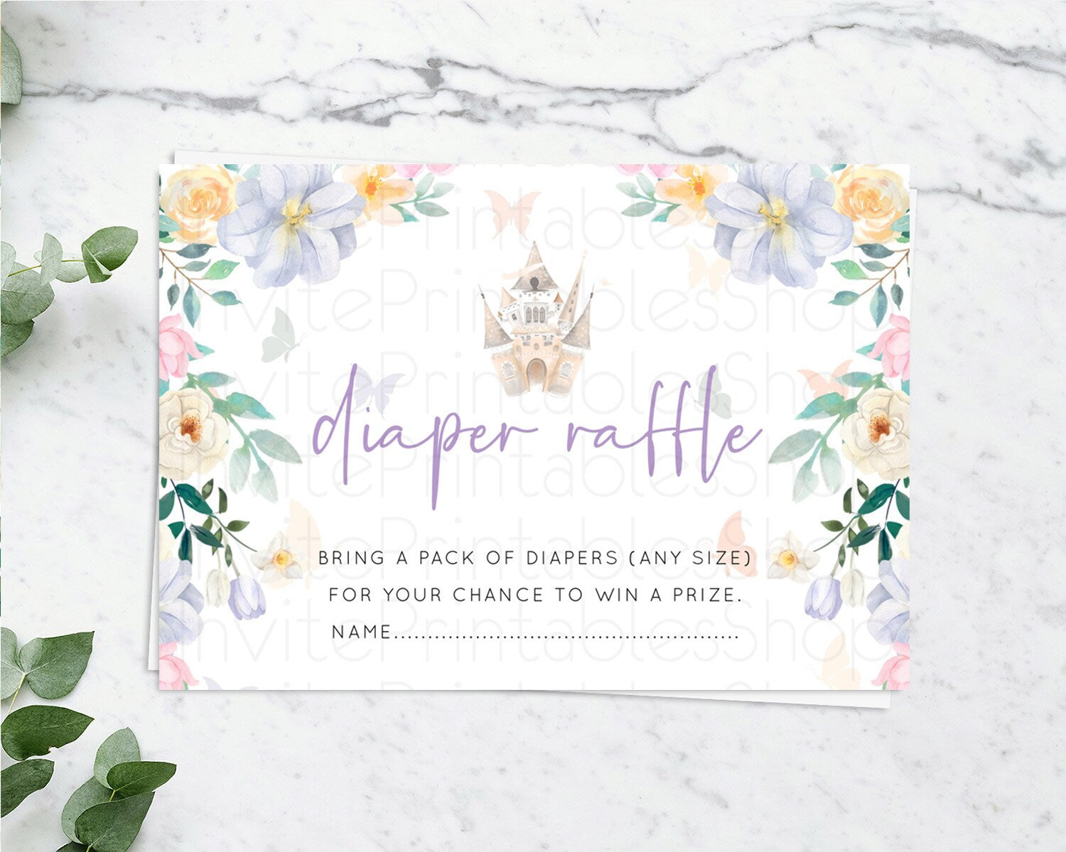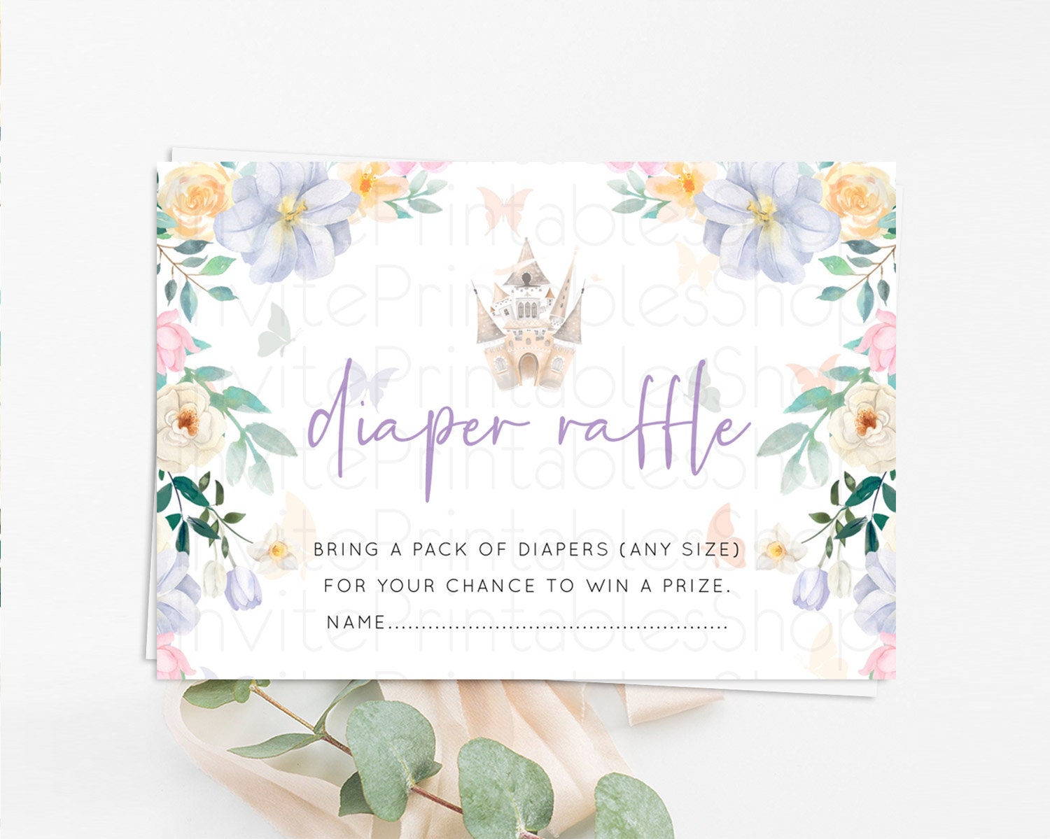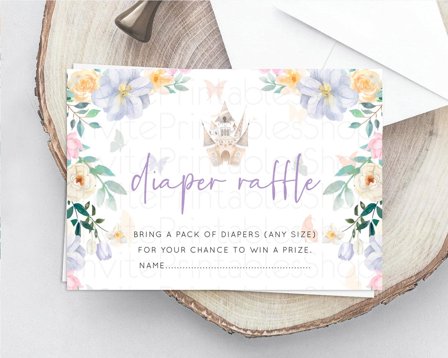 Princess Diaper Raffle Card Castle Diaper Ticket Insert Secret Garden Enchanted Castle Pastel Floral Garden Baby Shower Poem Request D10473