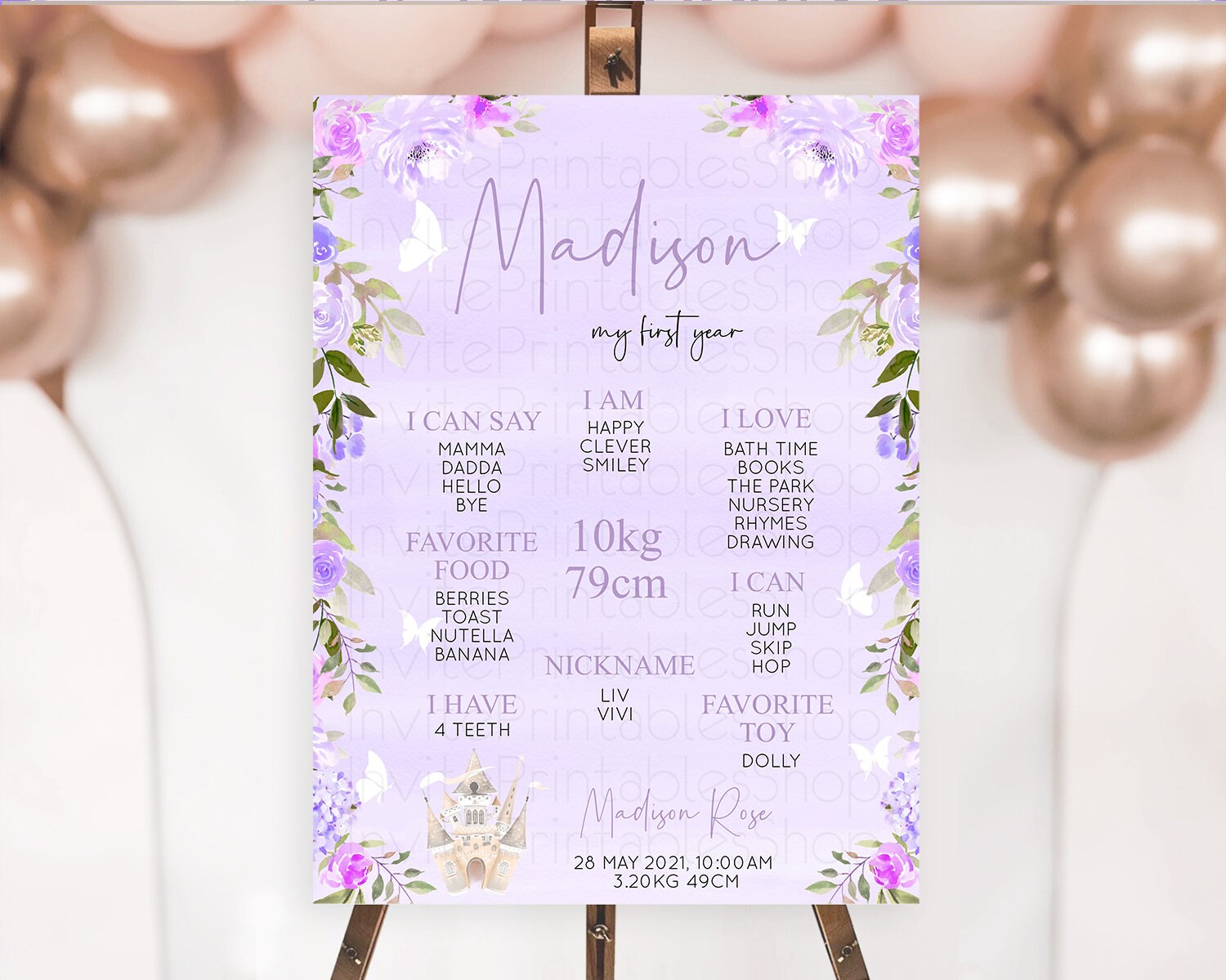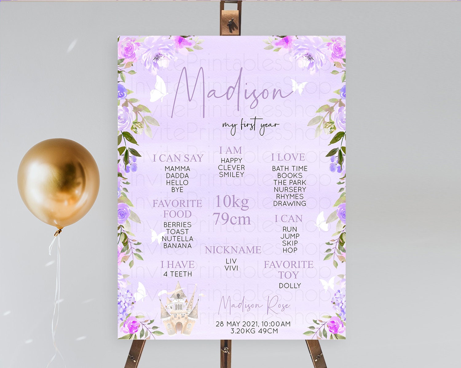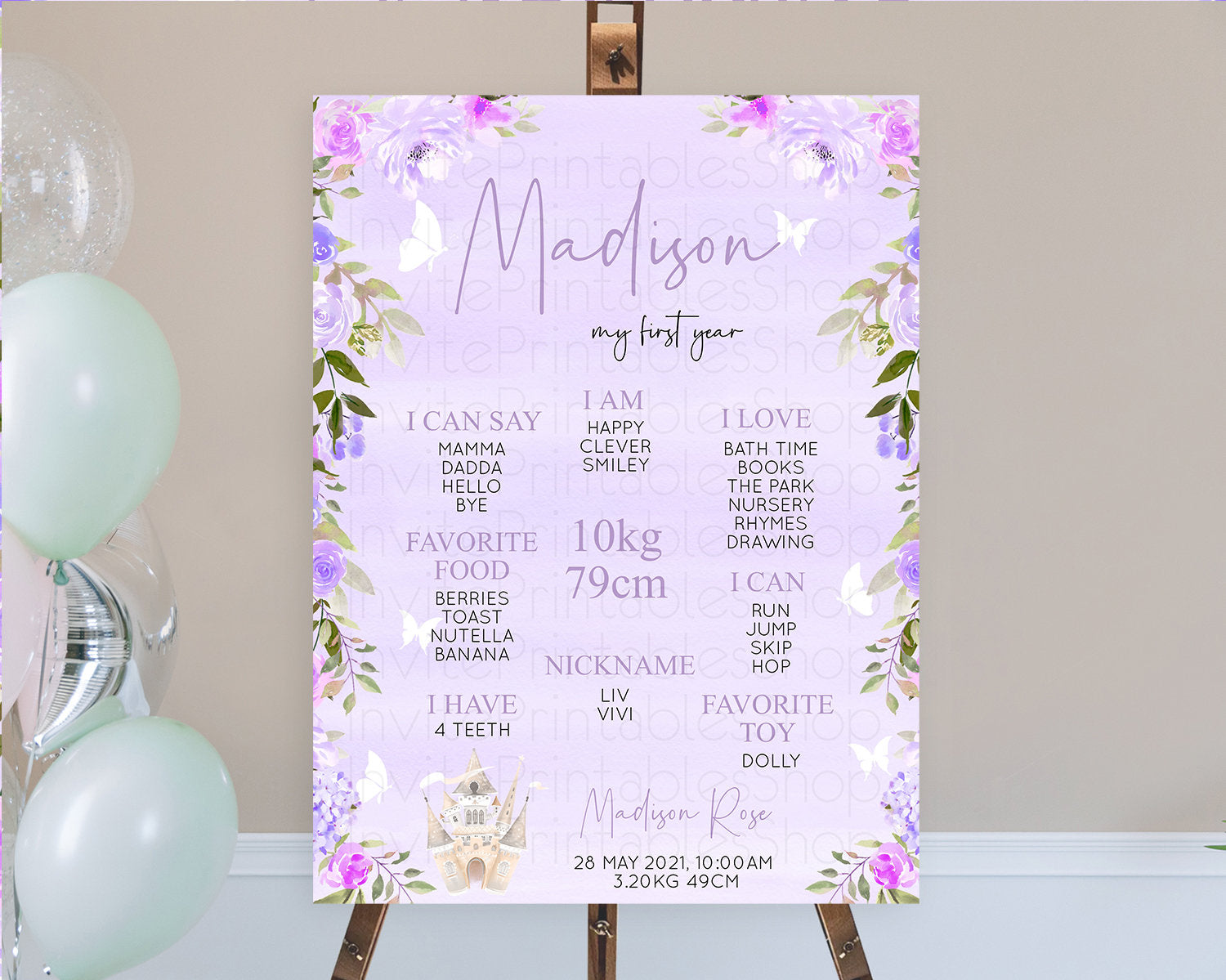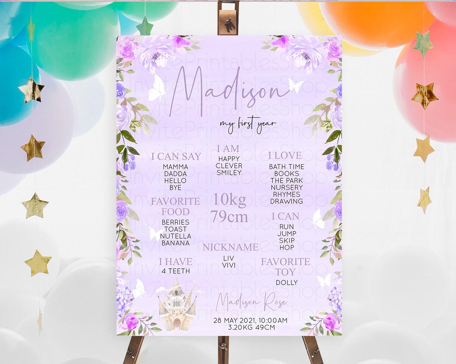 Princess First Birthday Milestone Poster Castle Milestone Board Secret Garden Enchanted Castle Pastel Floral Garden First Birthday D10339