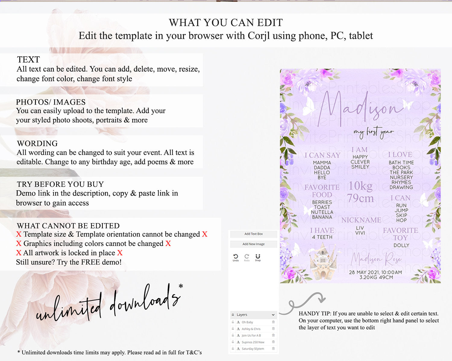 • After purchase, Corjl emails your editing link. Allow up to 15 minutes for delivery.
