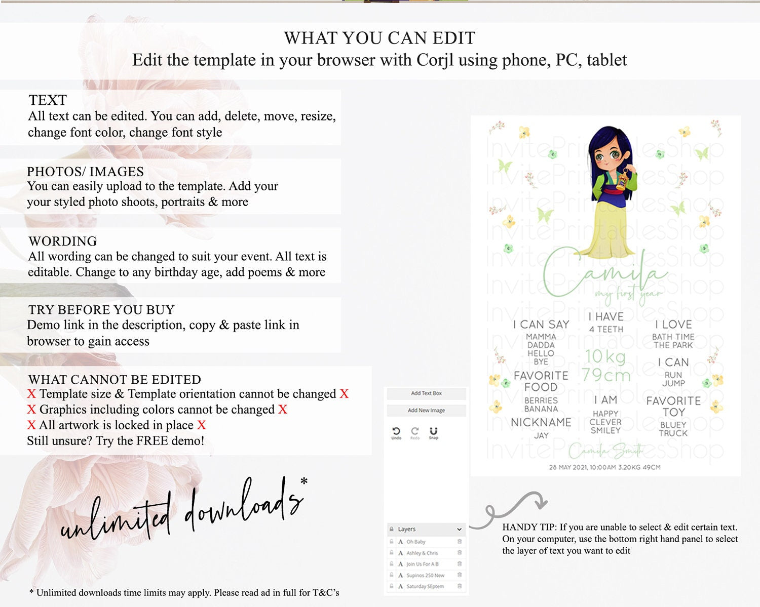 • Template size & orientation cannot be changed. Please use the demo link to confirm this product suits your needs.