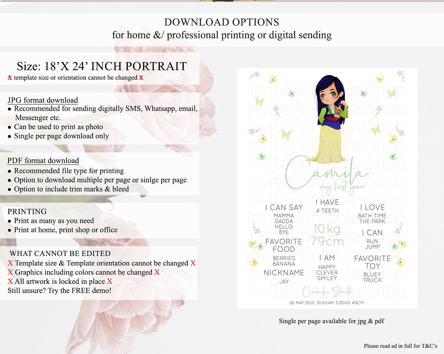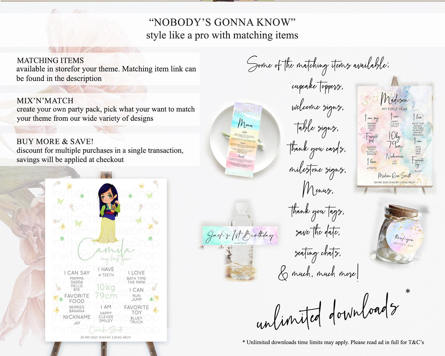Princess First Birthday Milestone Poster Castle Milestone Board Secret Garden Enchanted Castle Pastel Floral Garden First Birthday D10350