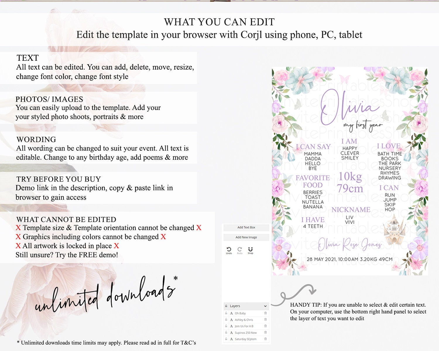 • After purchase, Corjl emails your editing link. Allow up to 15 minutes for delivery.
