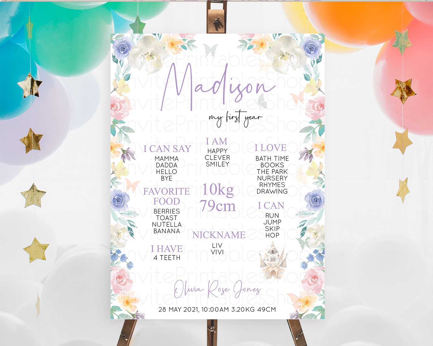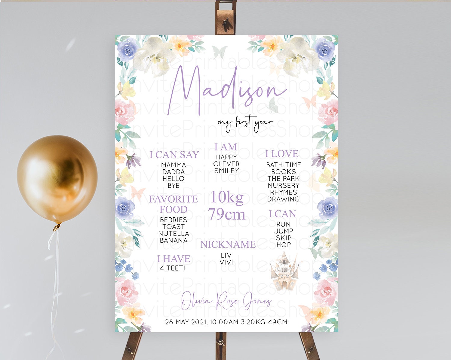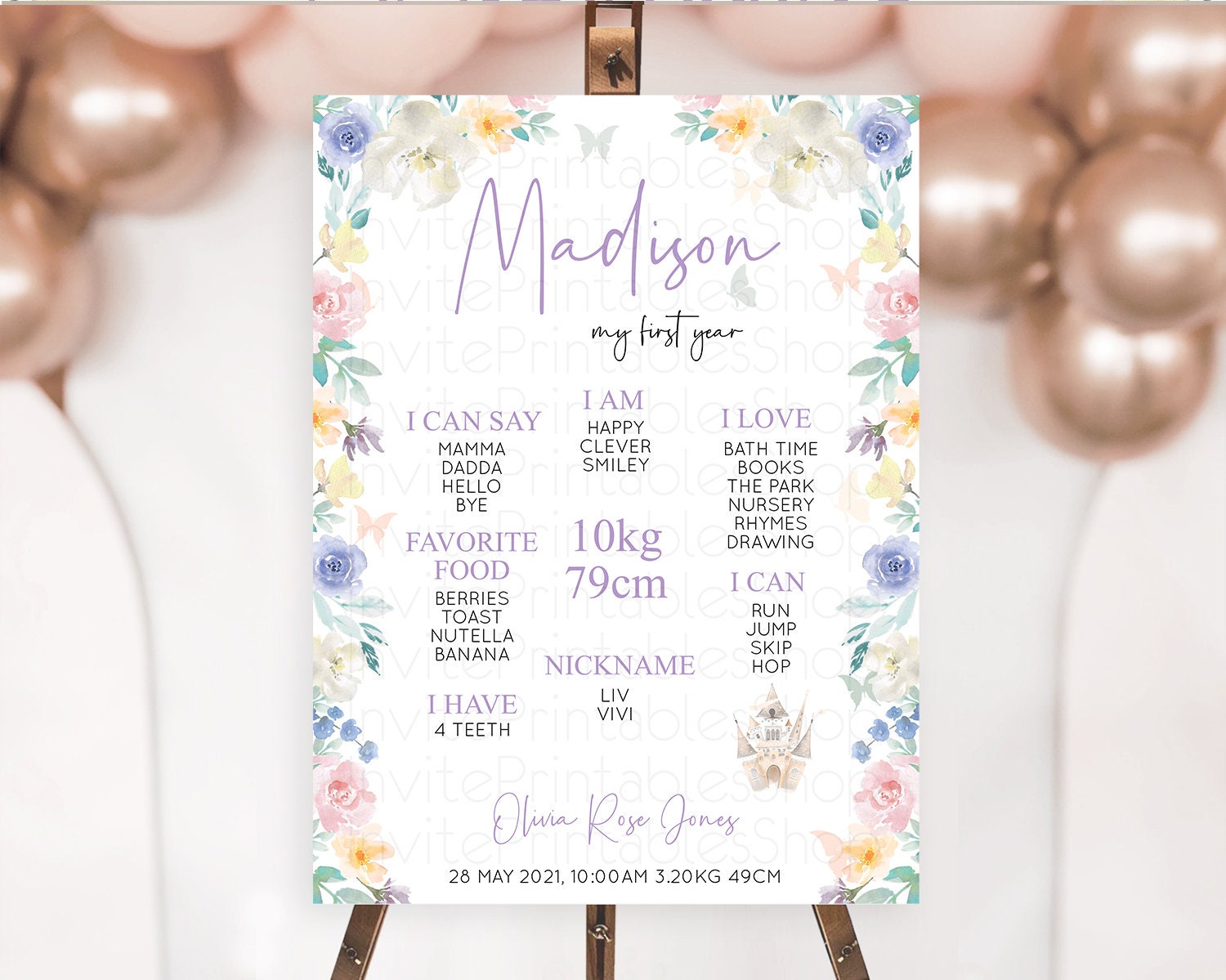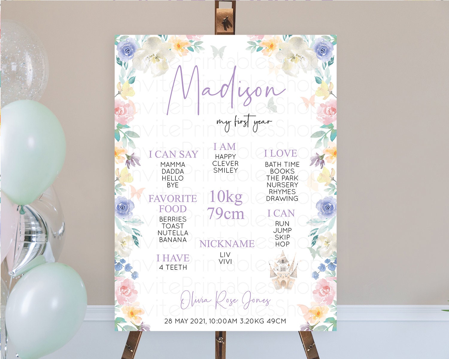 Princess First Birthday Milestone Poster Castle Milestone Board Secret Garden Enchanted Castle Pastel Floral Garden First Birthday D10709