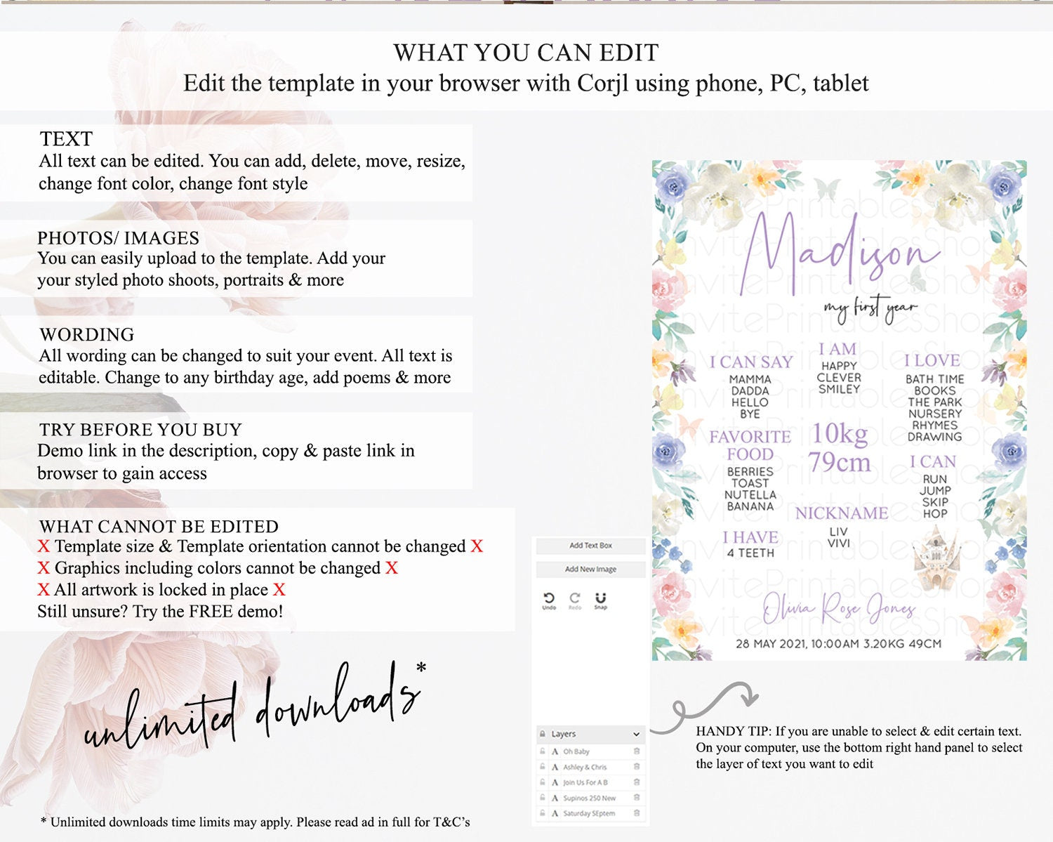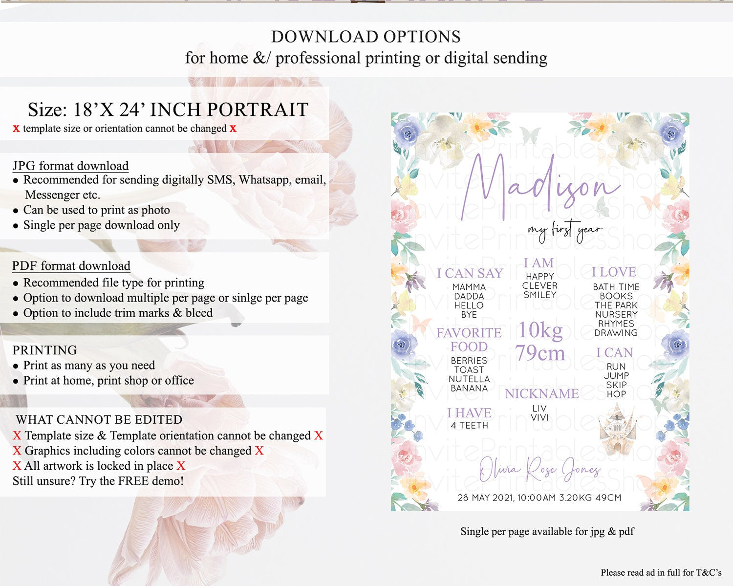 • Template size & orientation cannot be changed. Please use the demo link to confirm this product suits your needs.