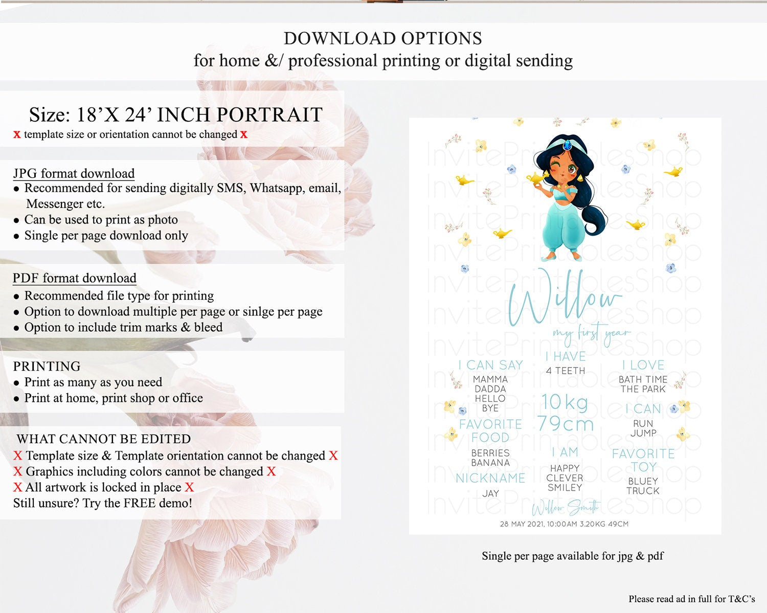 • Template size & orientation cannot be changed. Please use the demo link to confirm this product suits your needs.