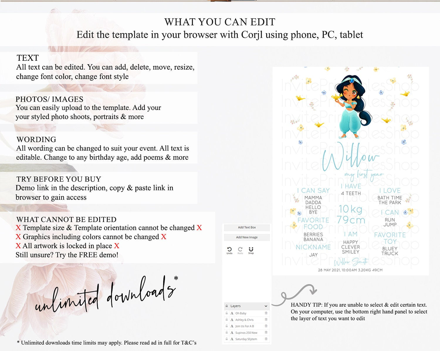 • After purchase, Corjl emails your editing link. Allow up to 15 minutes for delivery.