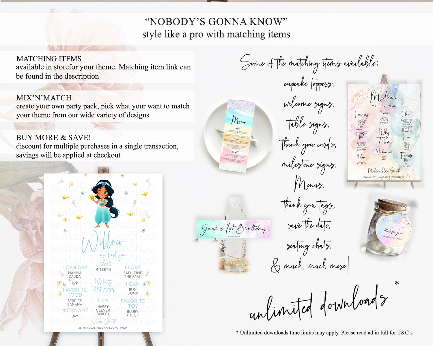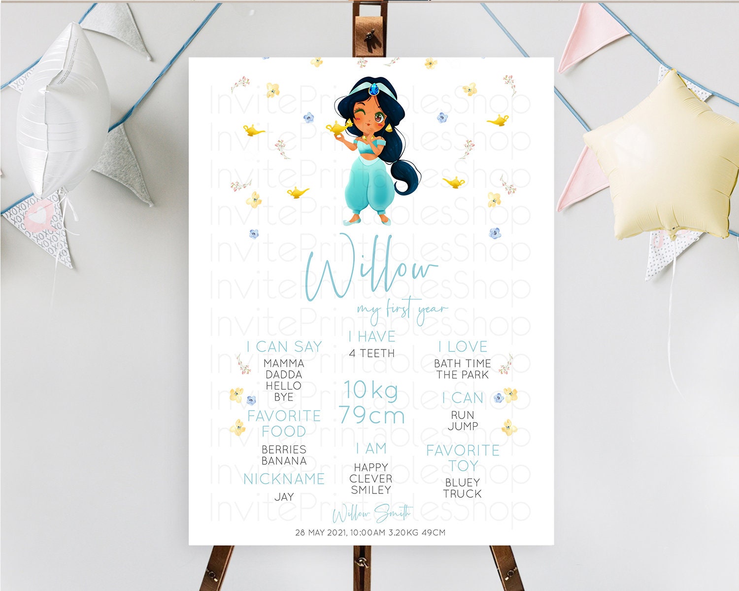 Princess First Birthday Milestone Poster Castle Milestone Board Secret Garden Enchanted Castle Pastel Floral Garden First Birthday D10887