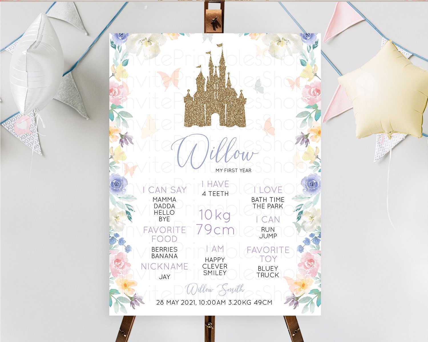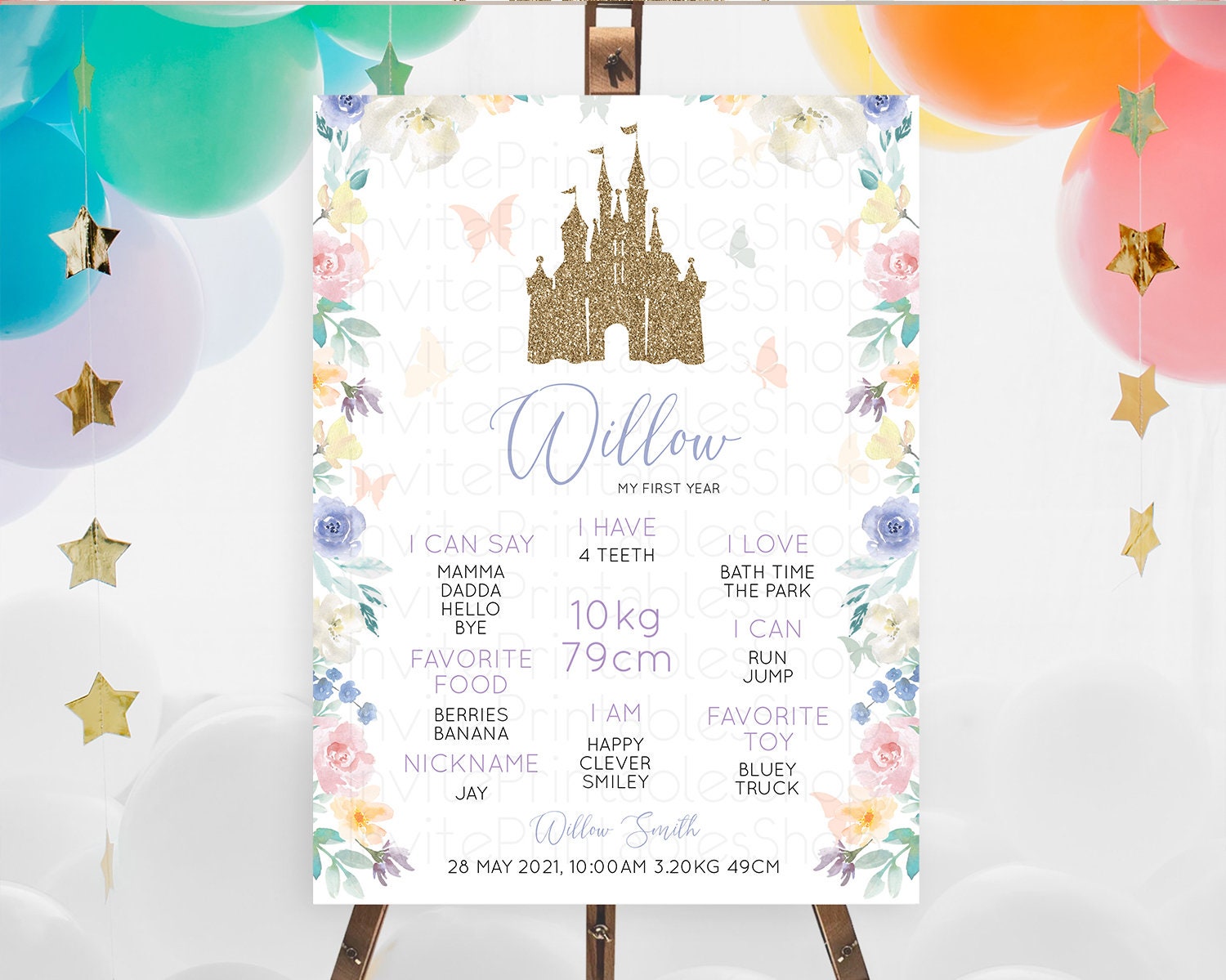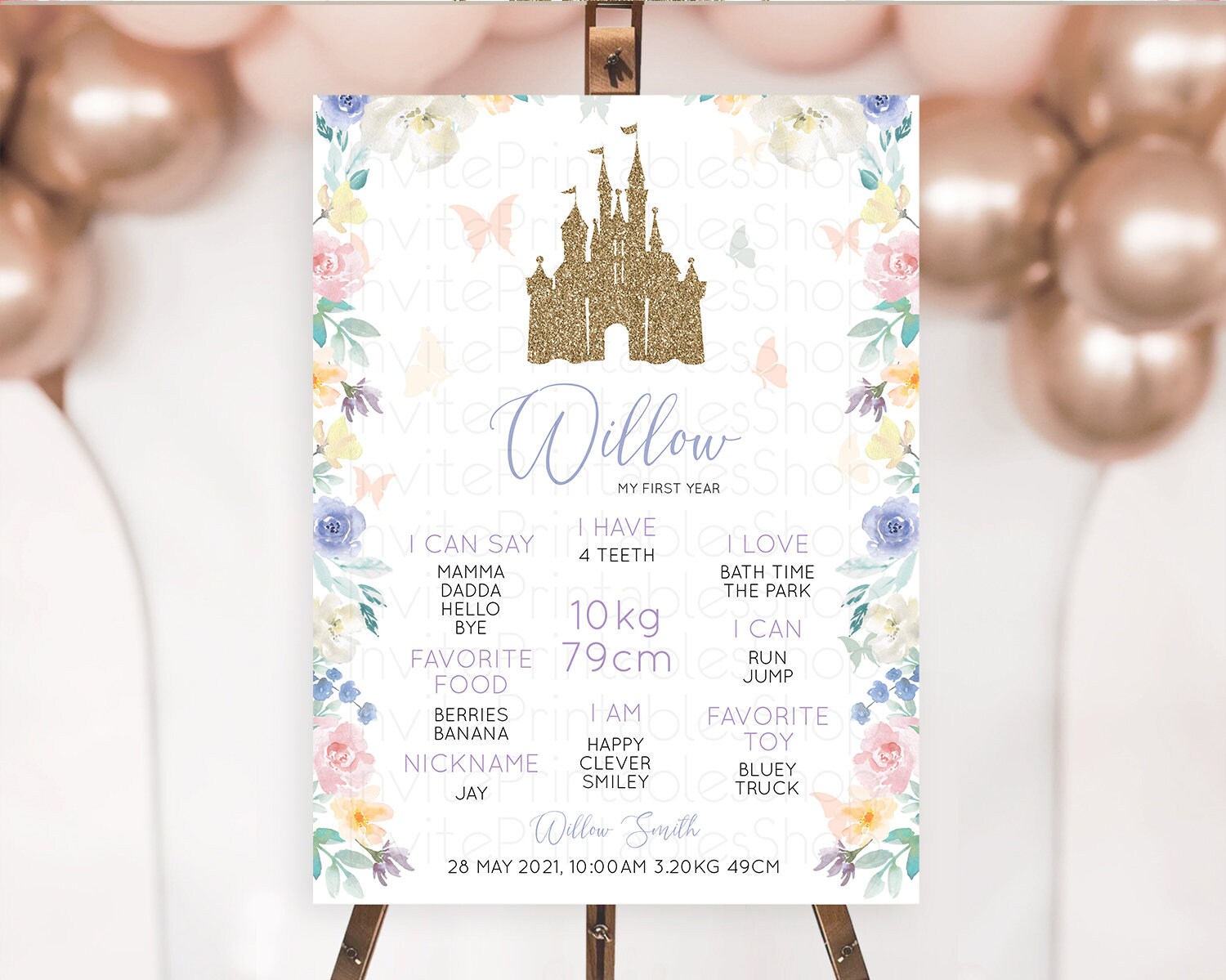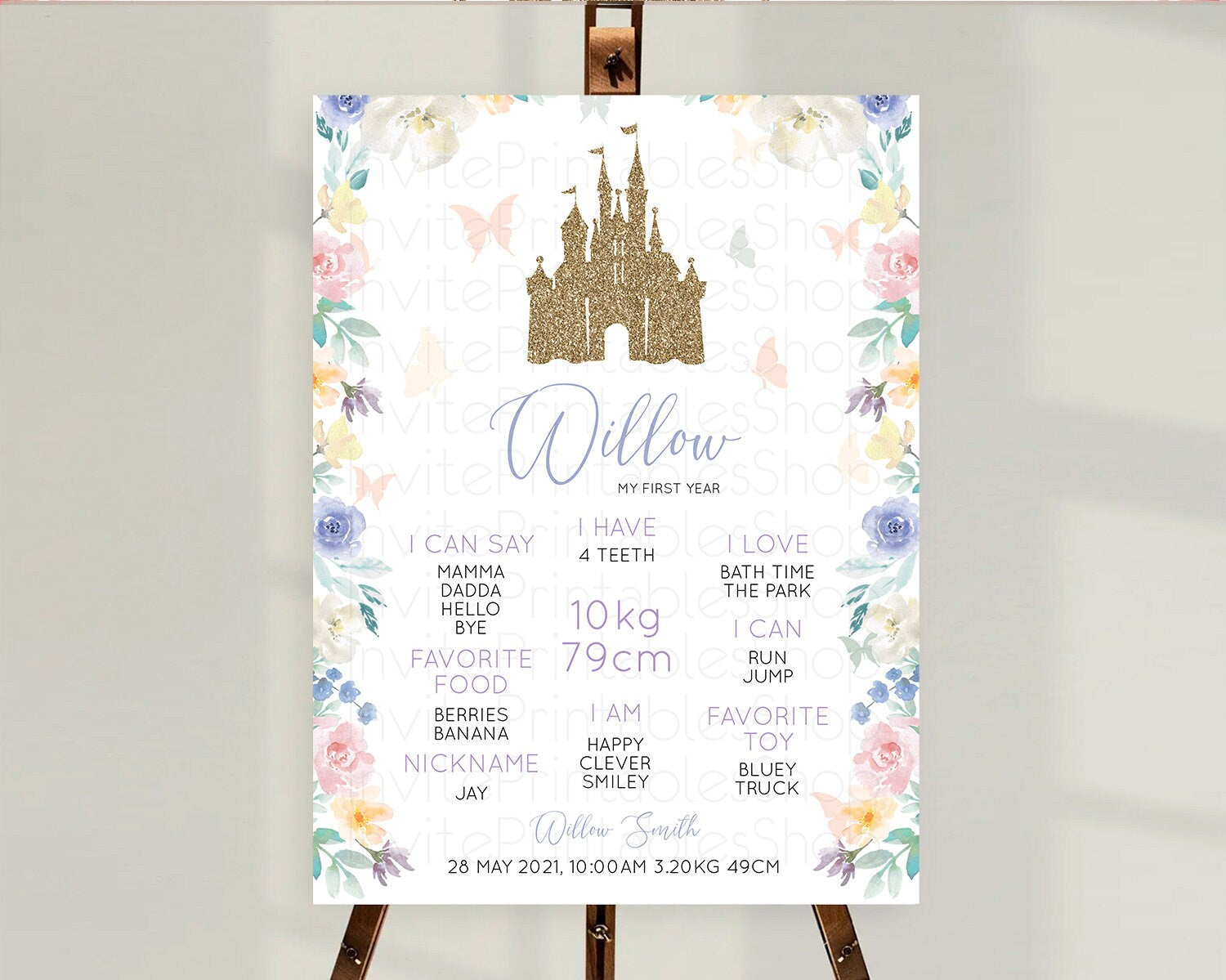 Princess First Birthday Milestone Poster Castle Milestone Board Secret Garden Enchanted Castle Pastel Floral Garden First Birthday D10931