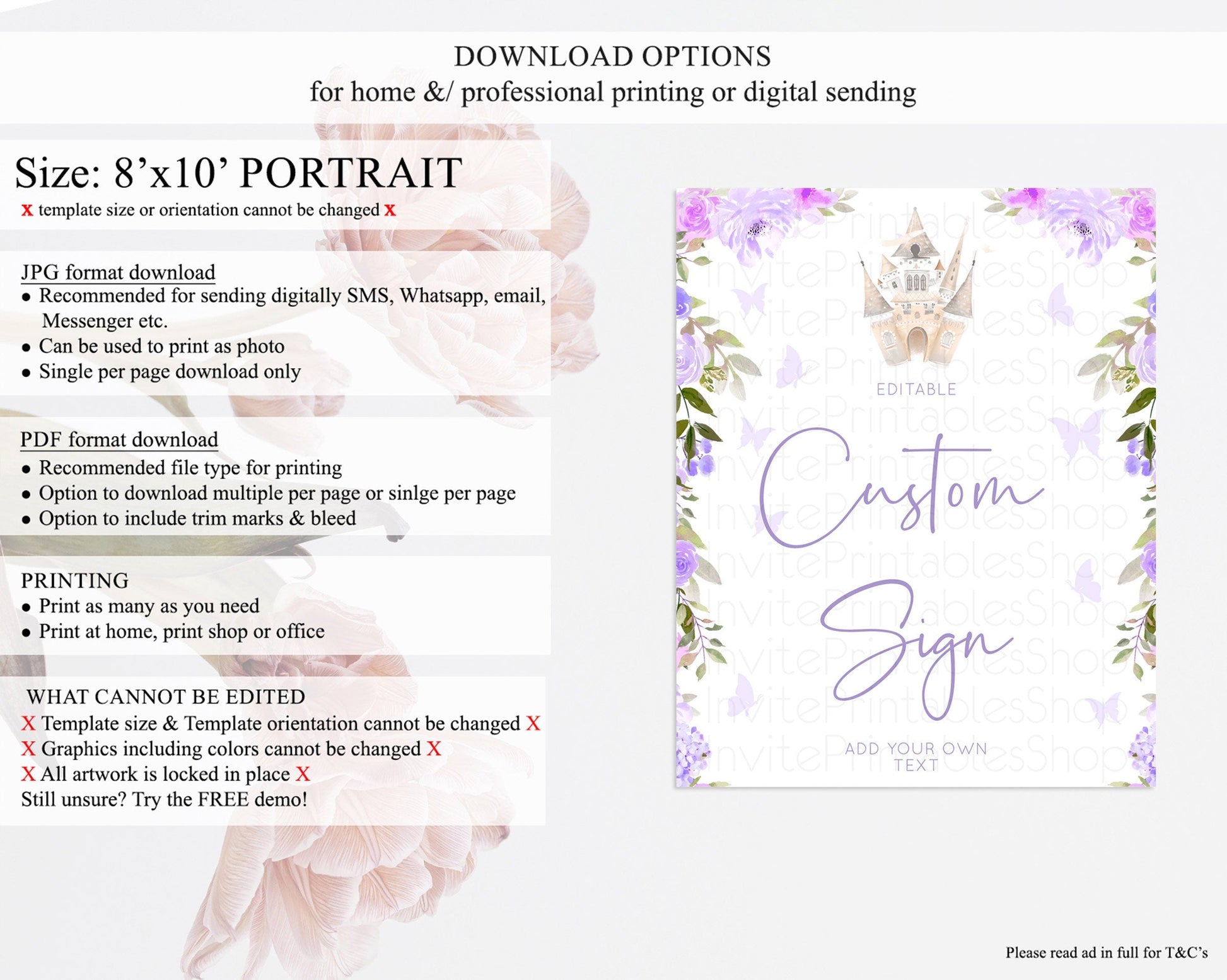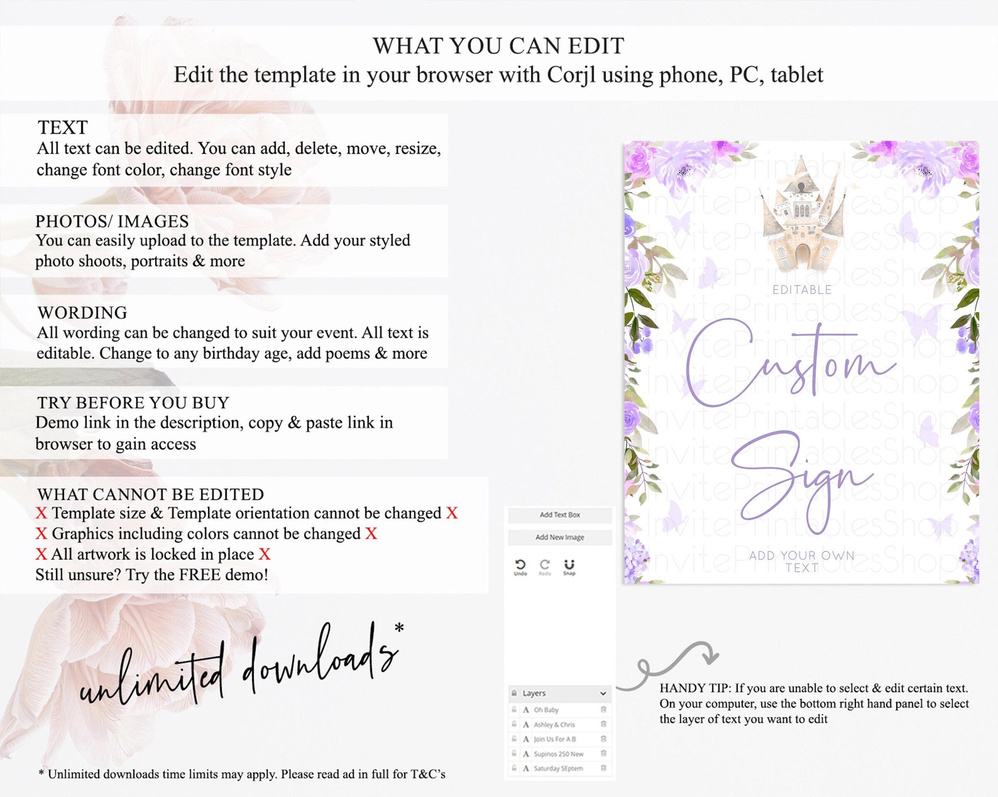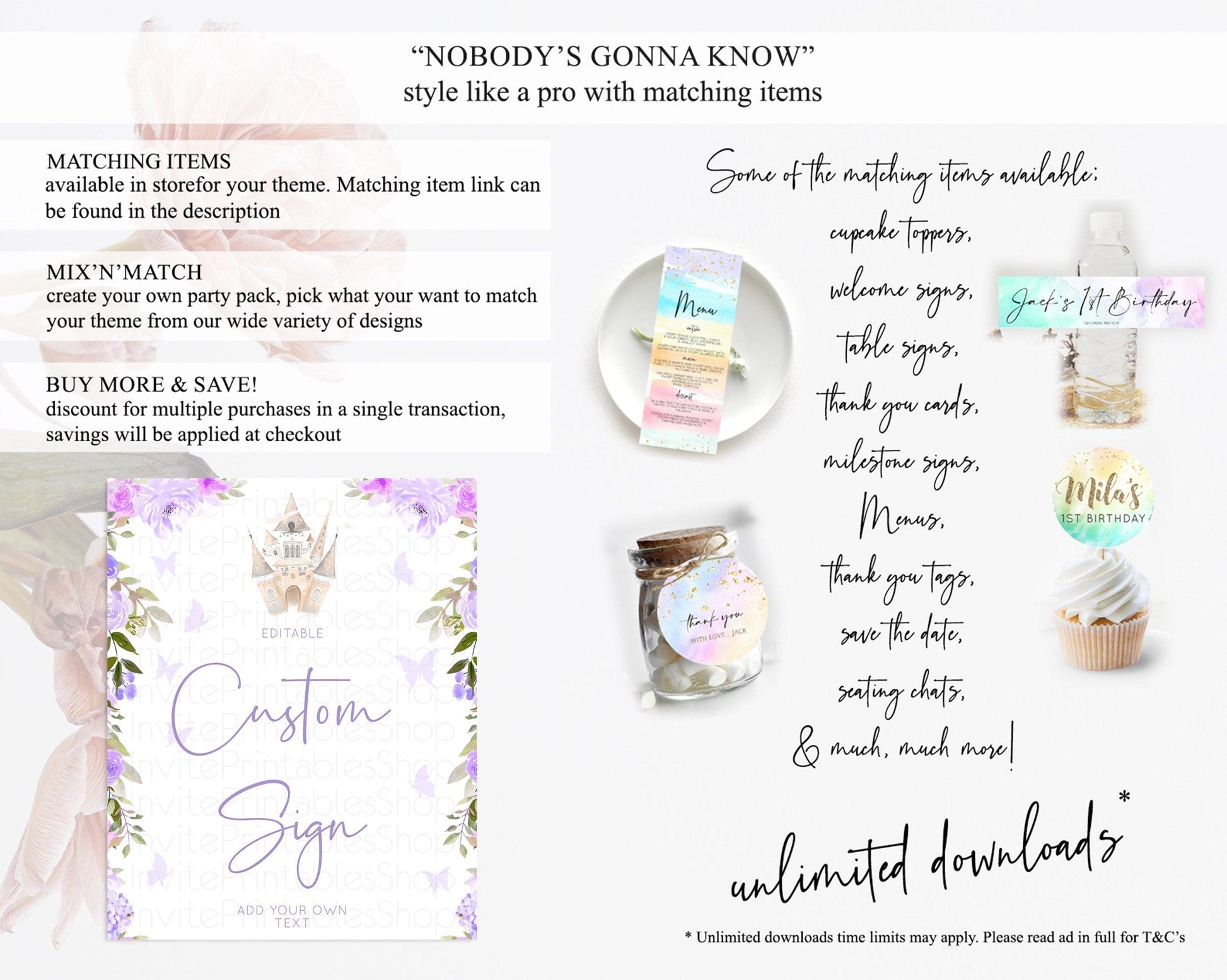 Princess Party Table Sign Decor Secret Garden Enchanted Castle Pastel Floral Royal Party For 1st Birthday Baptism Baby Shower D10339