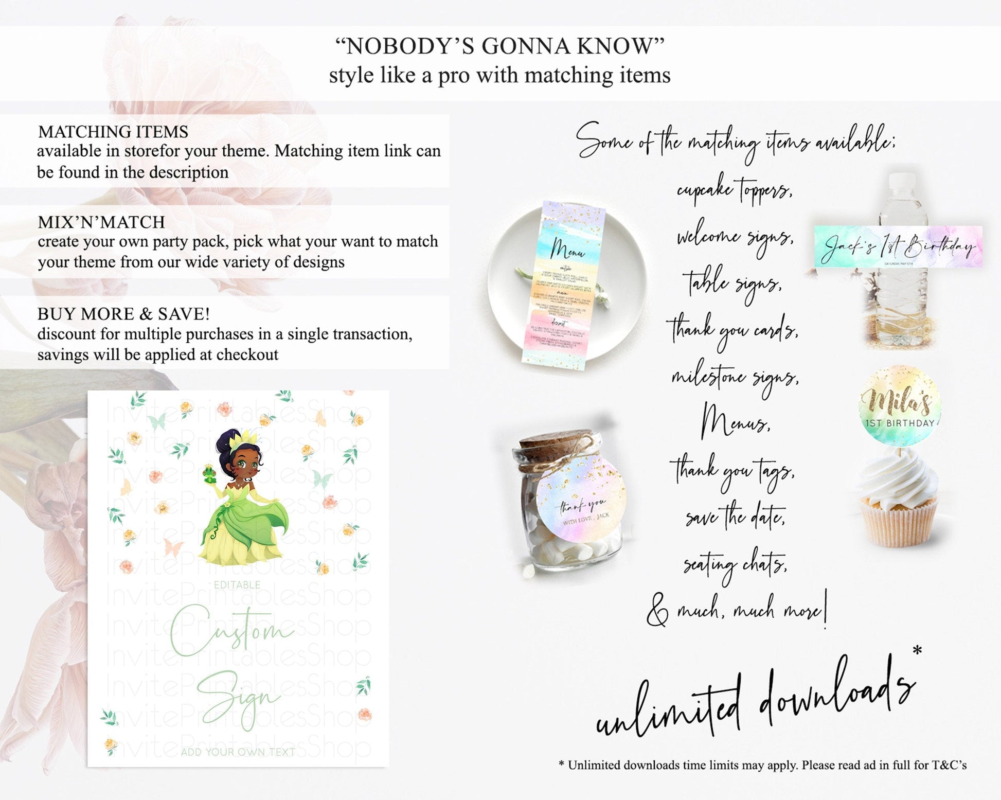Princess Party Table Sign Decor Secret Garden Enchanted Castle Pastel Floral Royal Party For 1st Birthday Baptism Baby Shower D10358