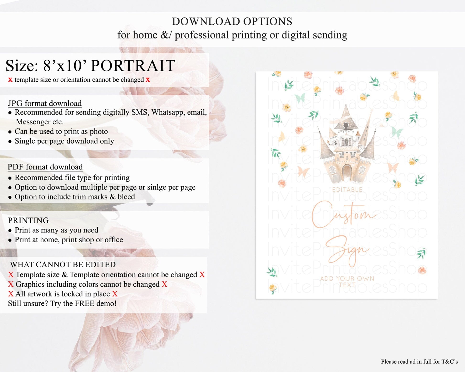 • Template size & orientation cannot be changed. Please use the demo link to confirm this product suits your needs.