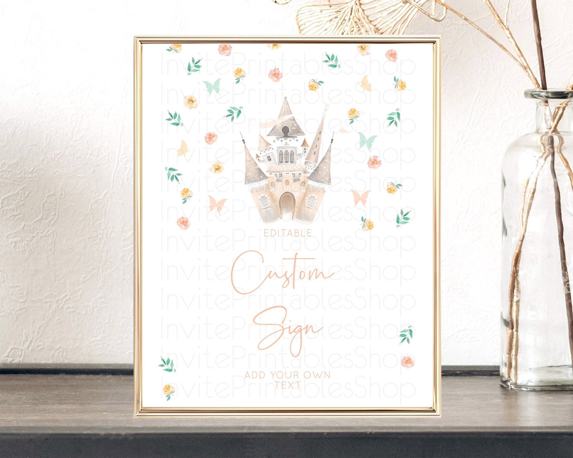 Princess Party Table Sign Decor Secret Garden Enchanted Castle Pastel Floral Royal Party For 1st Birthday Baptism Baby Shower D10363