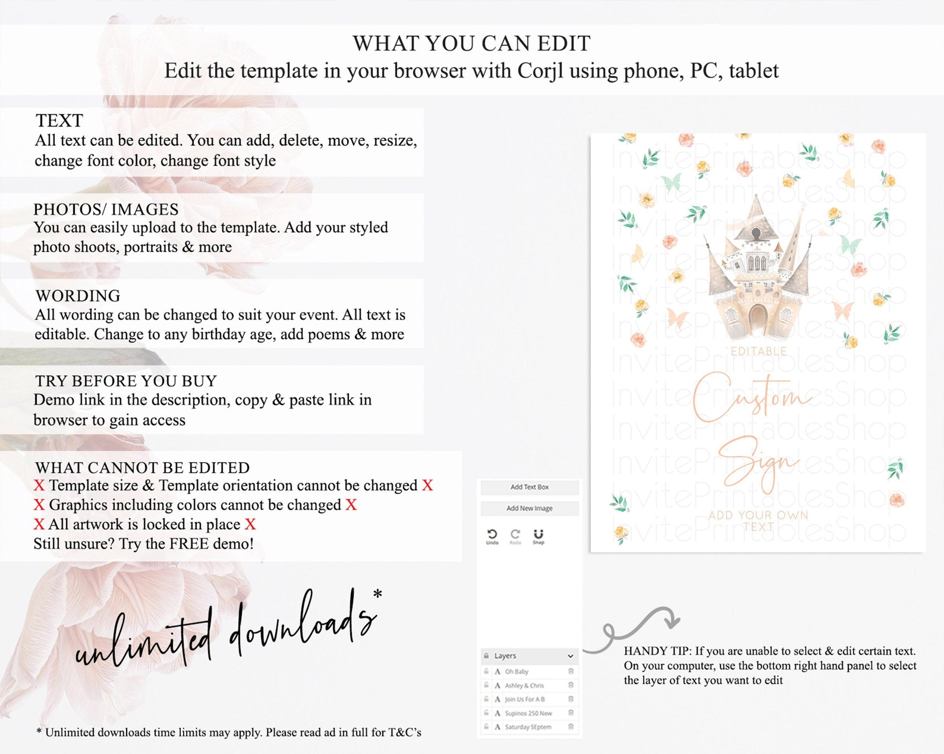 • After purchase, Corjl emails your editing link. Allow up to 15 minutes for delivery.