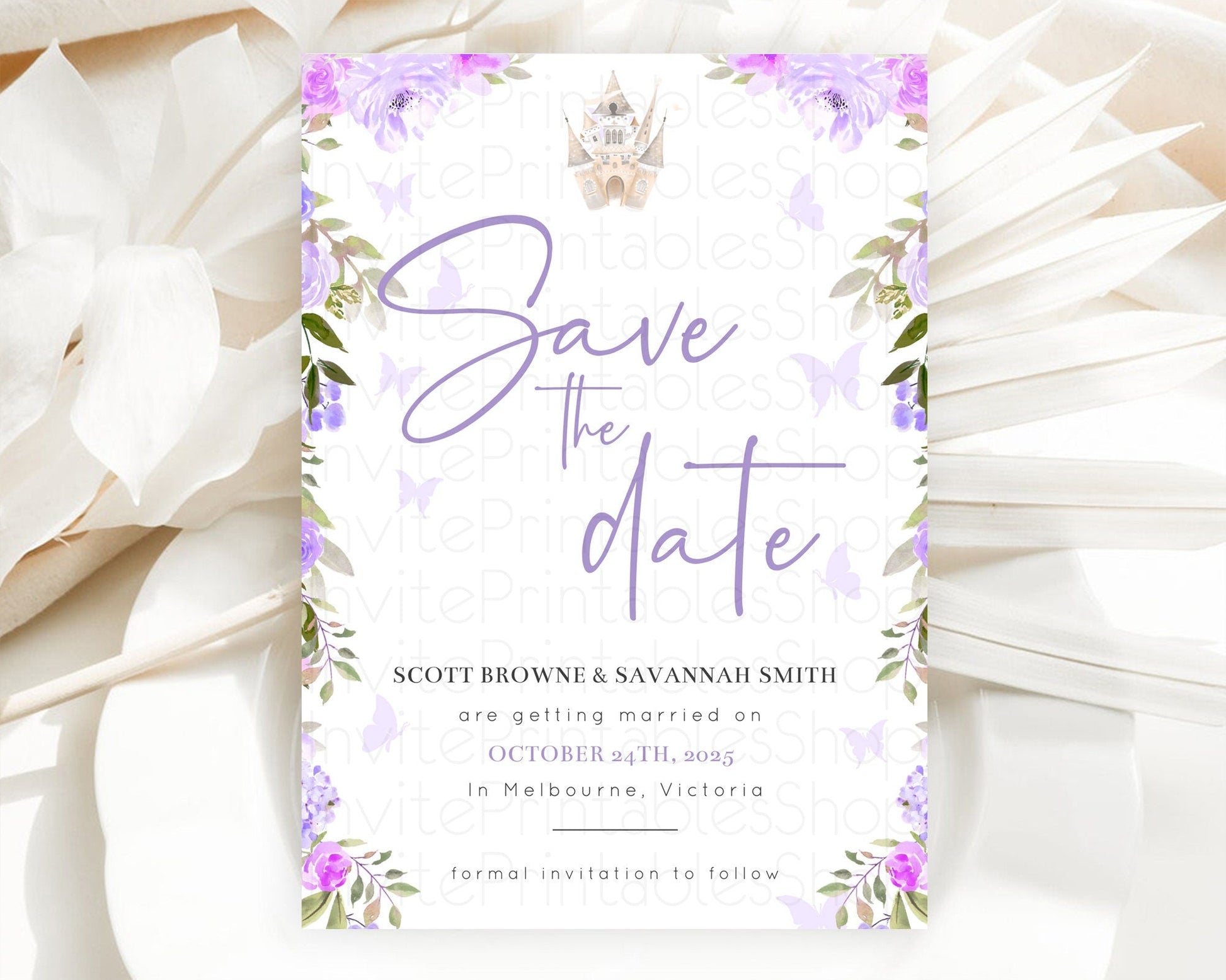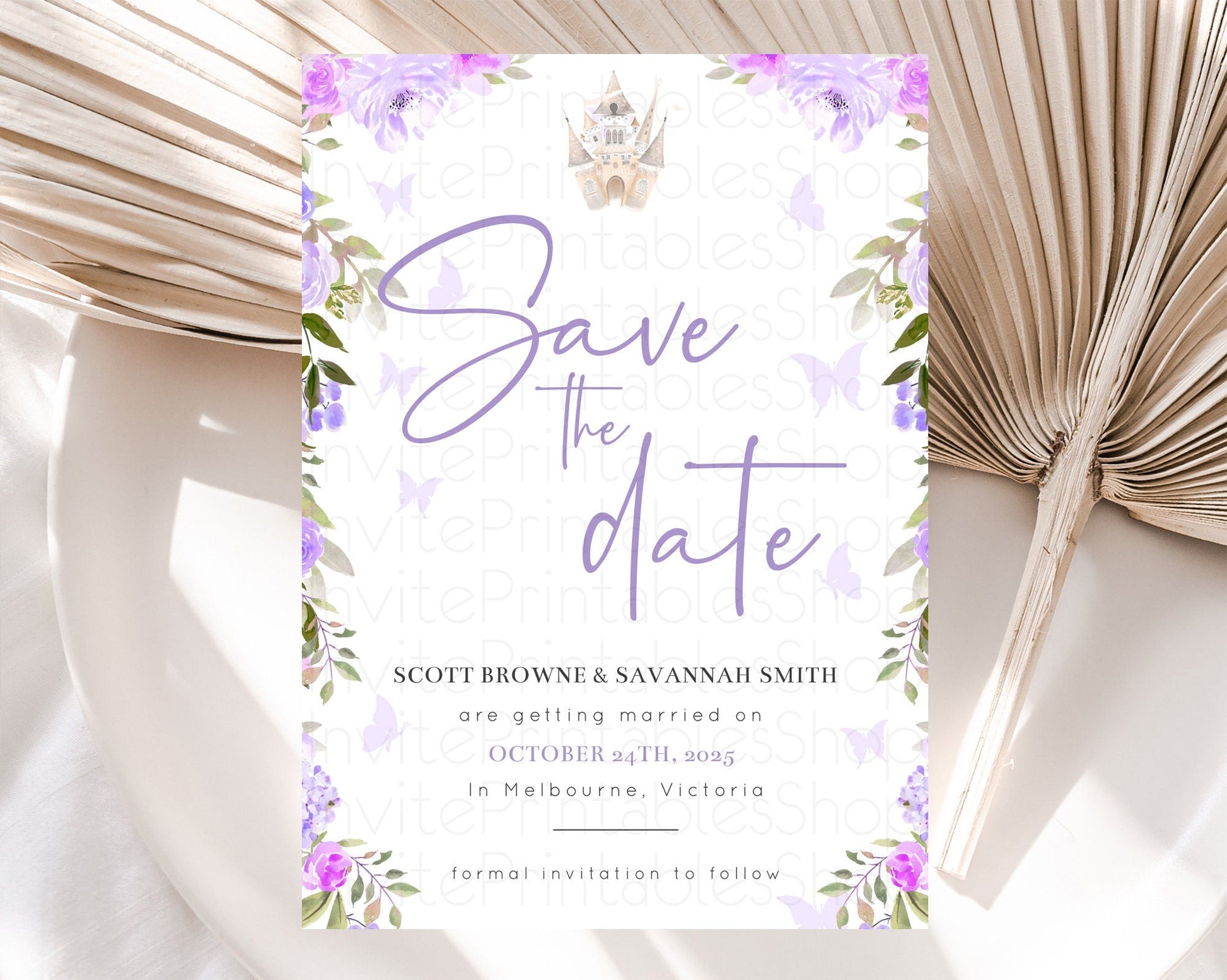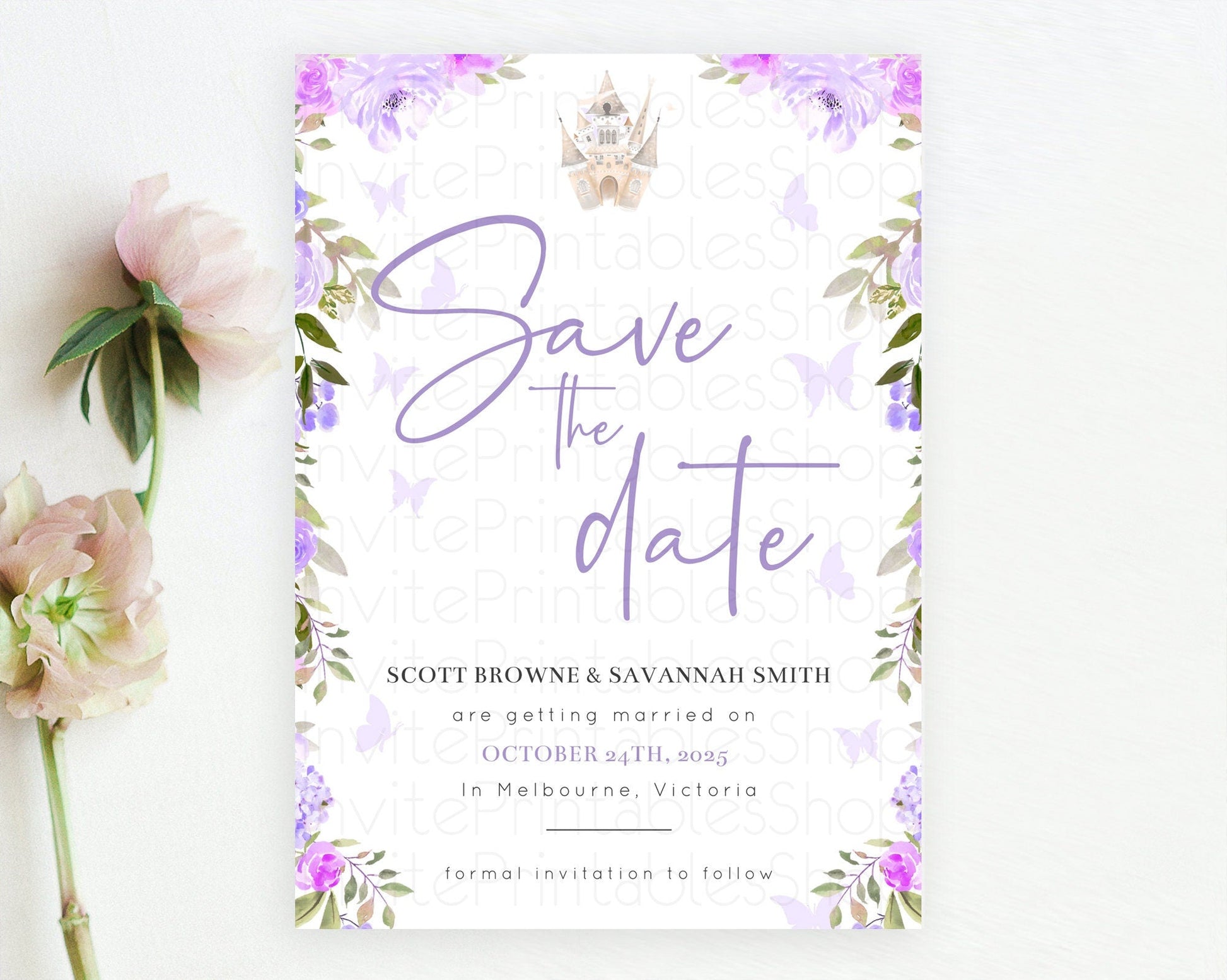 Princess Save The Date Template Secret Garden Enchanted Castle Pastel Floral Royal Party For 1st Birthday Baptism Baby Shower D10339