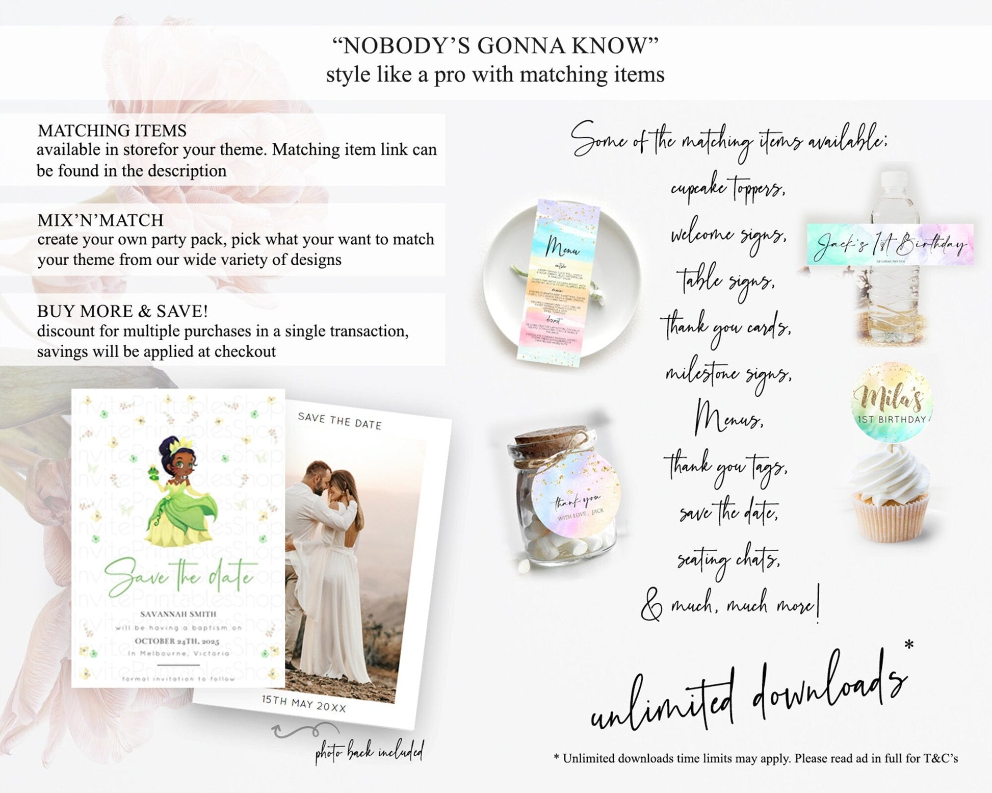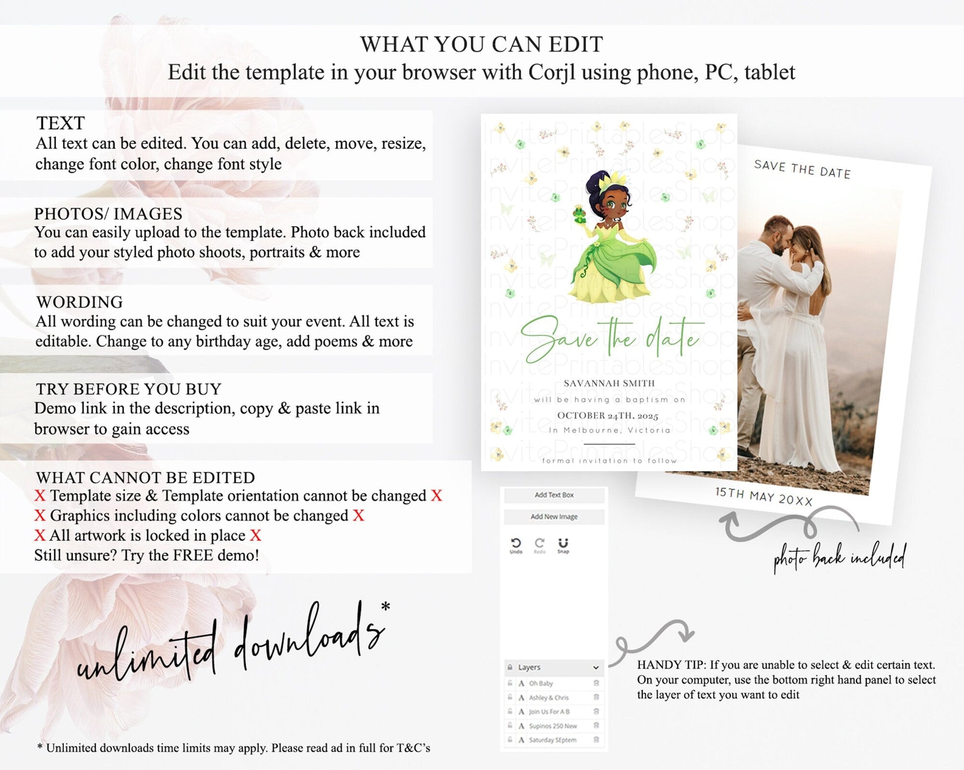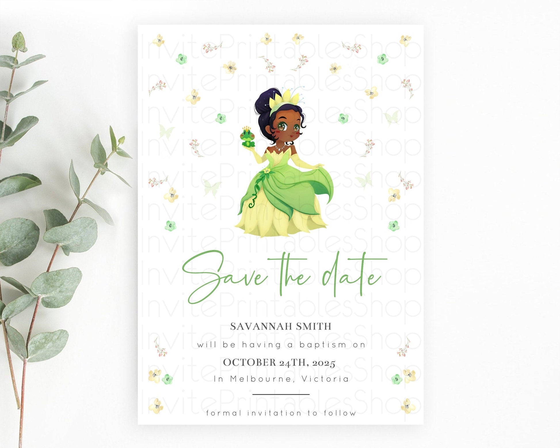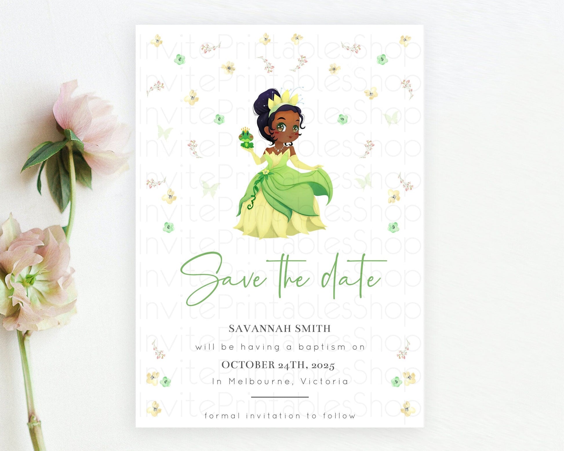 Princess Save The Date Template Secret Garden Enchanted Castle Pastel Floral Royal Party For 1st Birthday Baptism Baby Shower D10348
