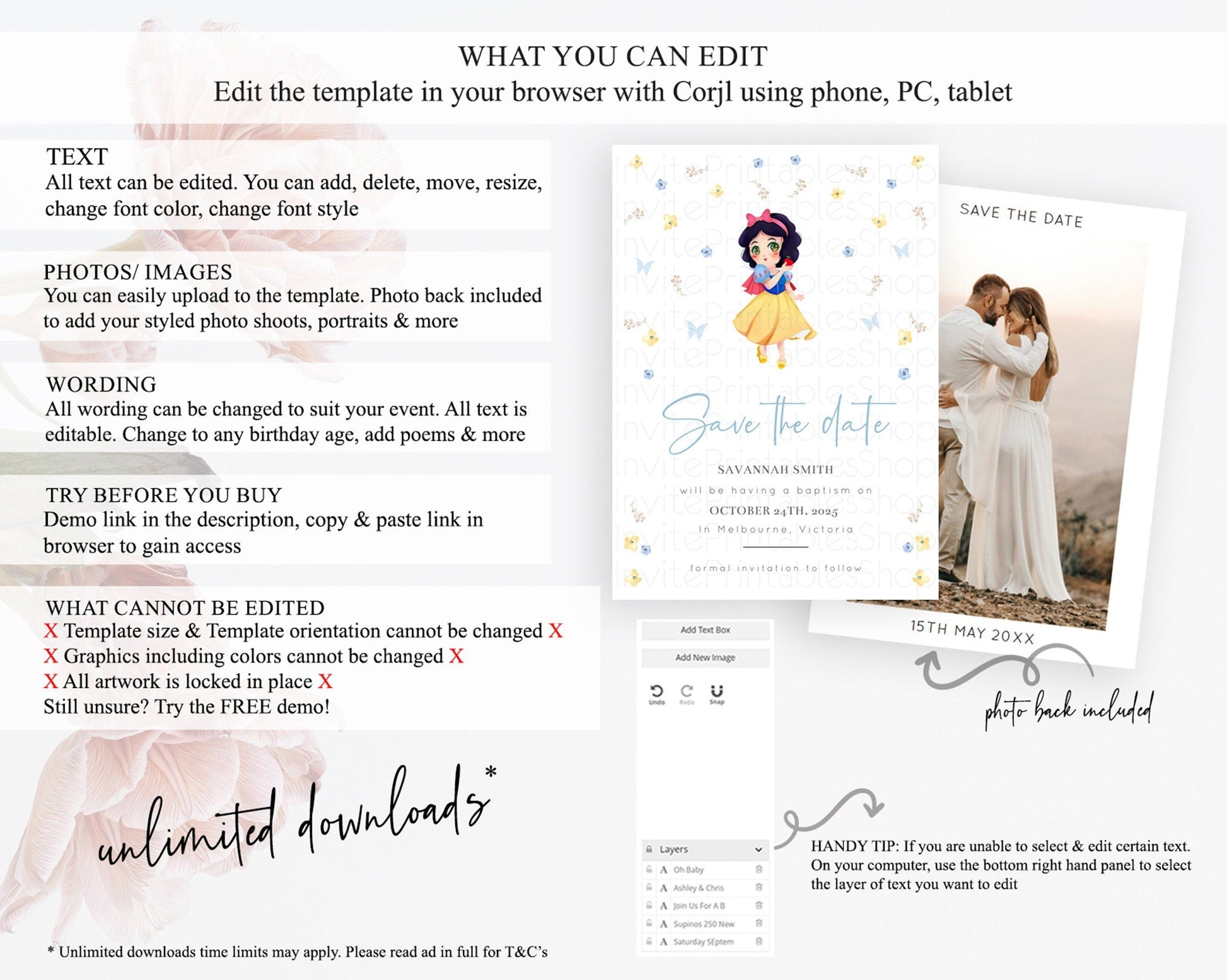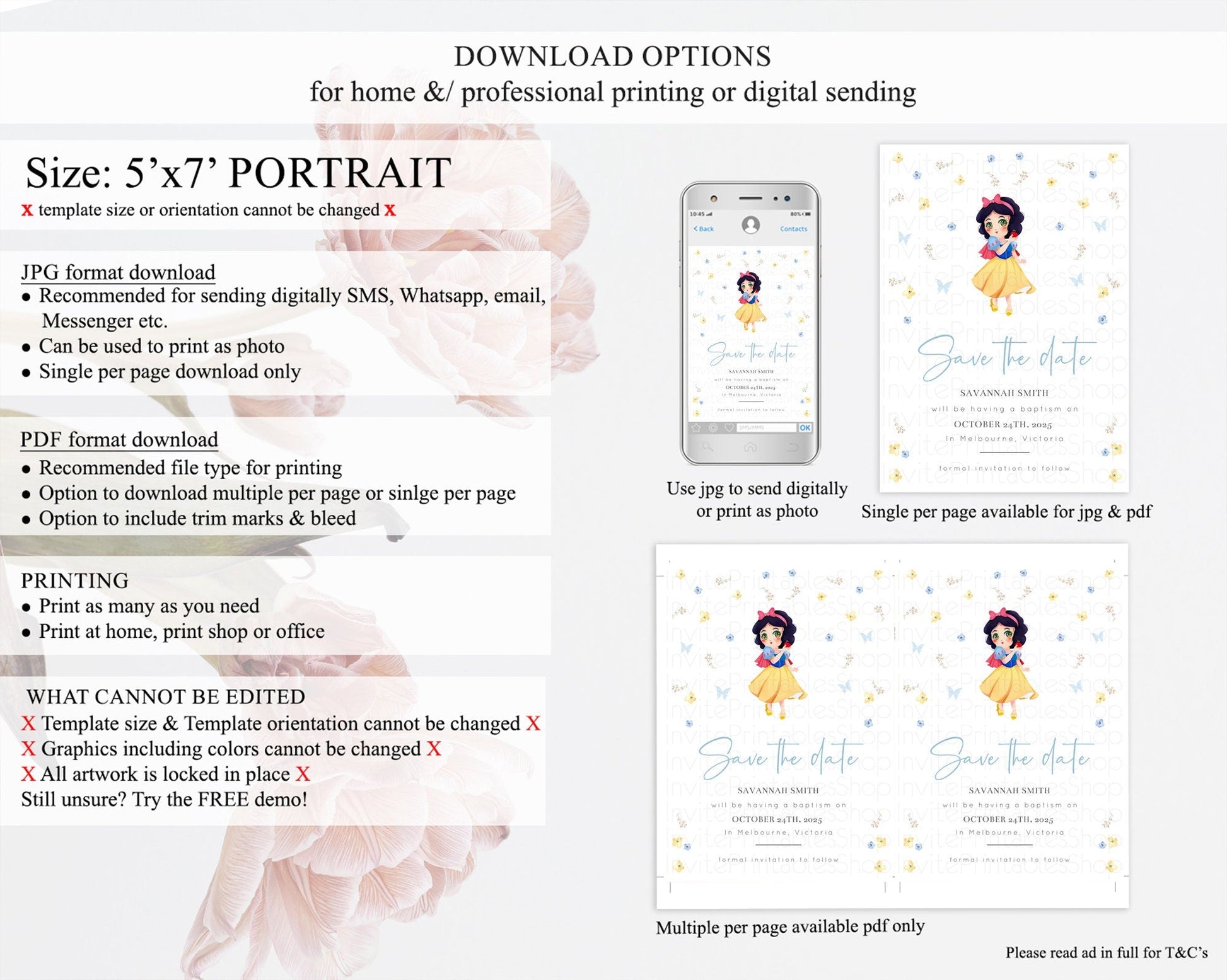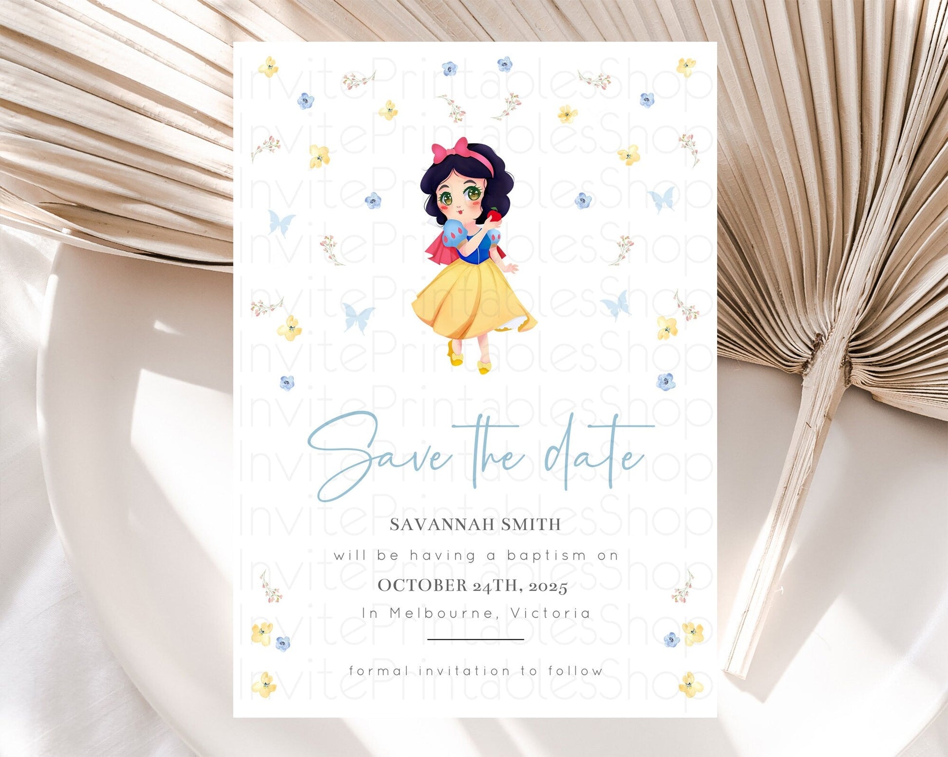 Princess Save The Date Template Secret Garden Enchanted Castle Pastel Floral Royal Party For 1st Birthday Baptism Baby Shower D10353