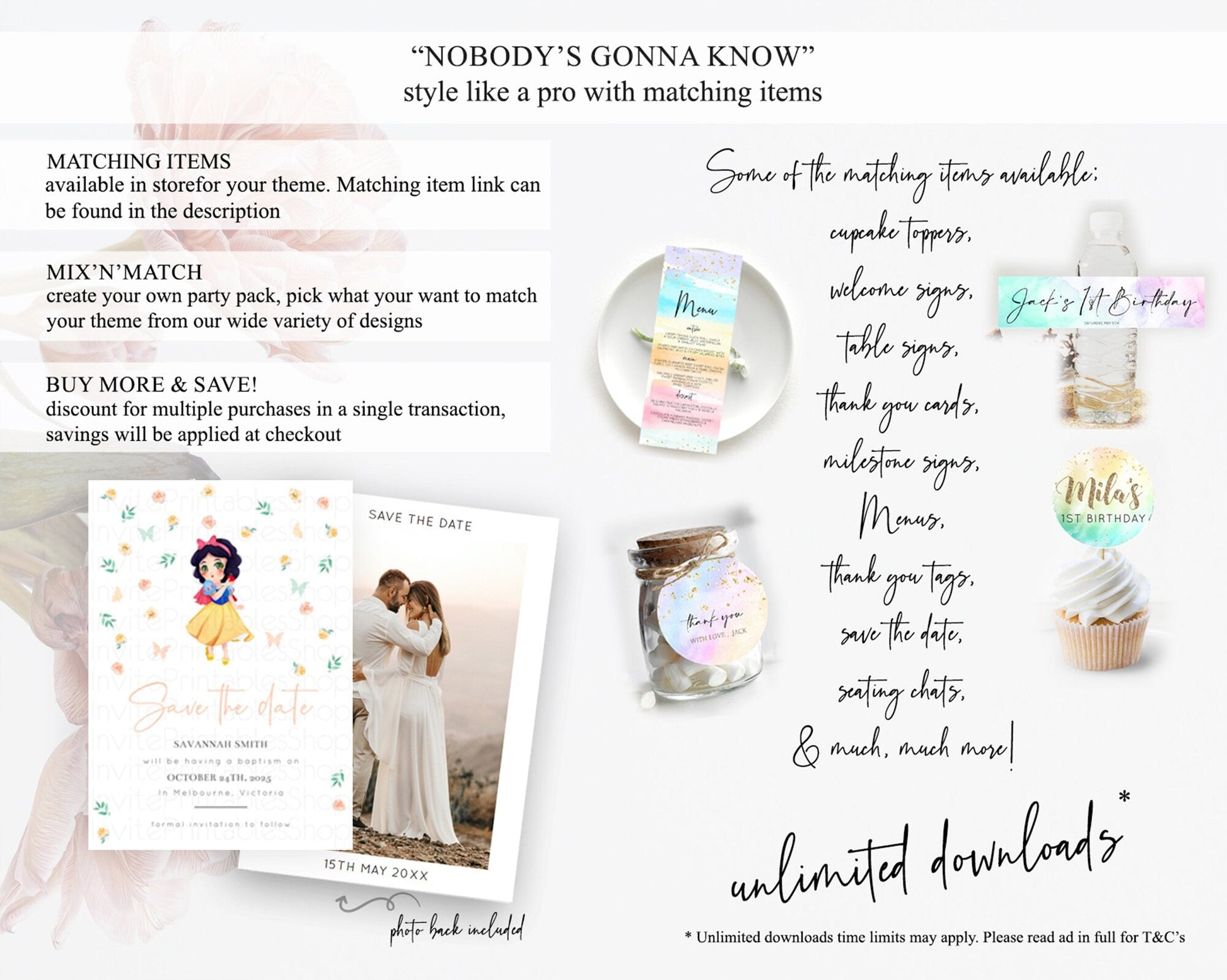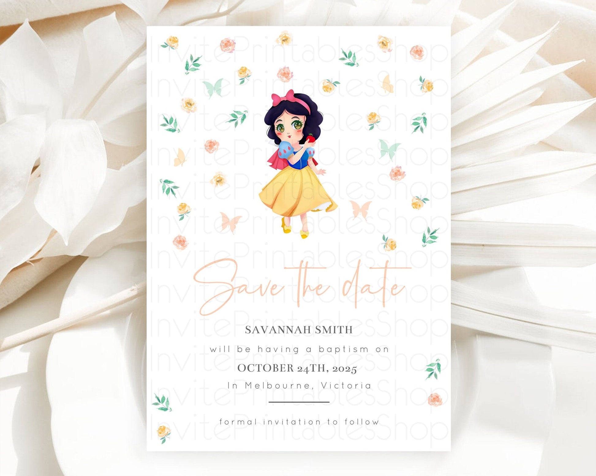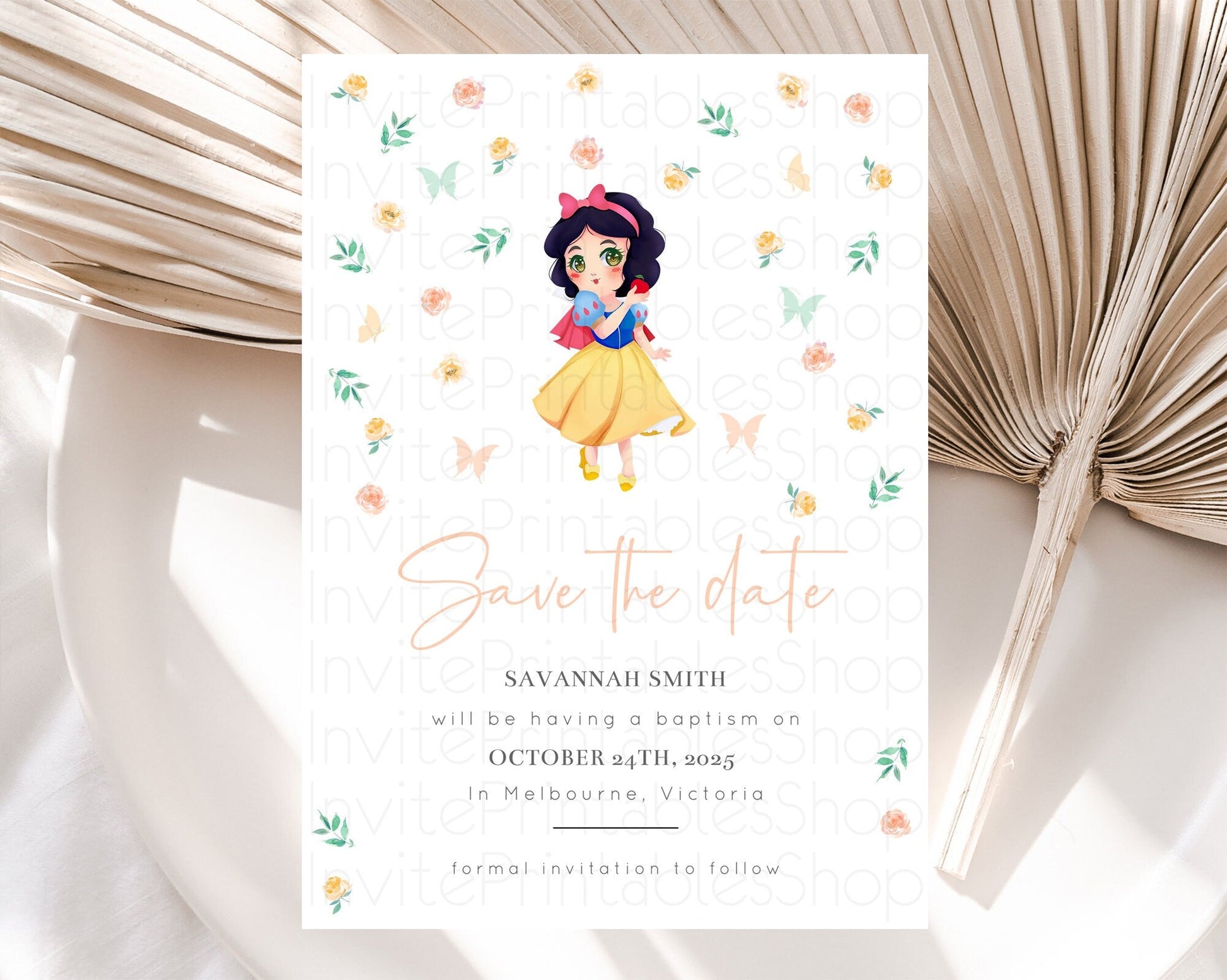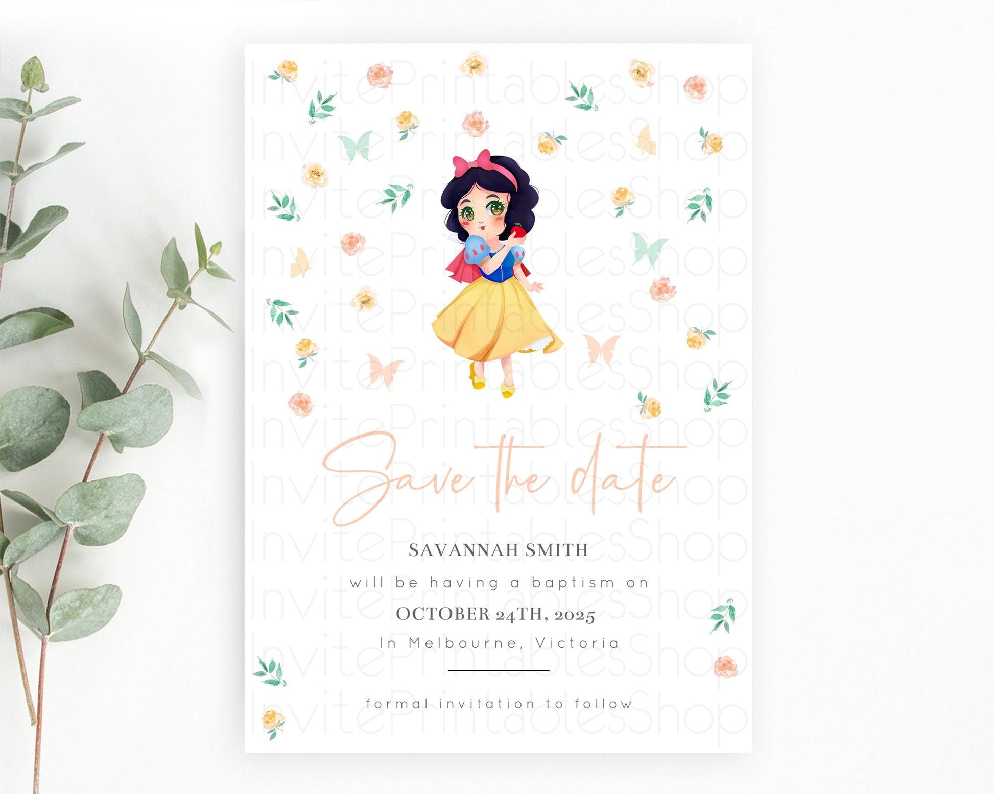 Princess Save The Date Template Secret Garden Enchanted Castle Pastel Floral Royal Party For 1st Birthday Baptism Baby Shower D10356
