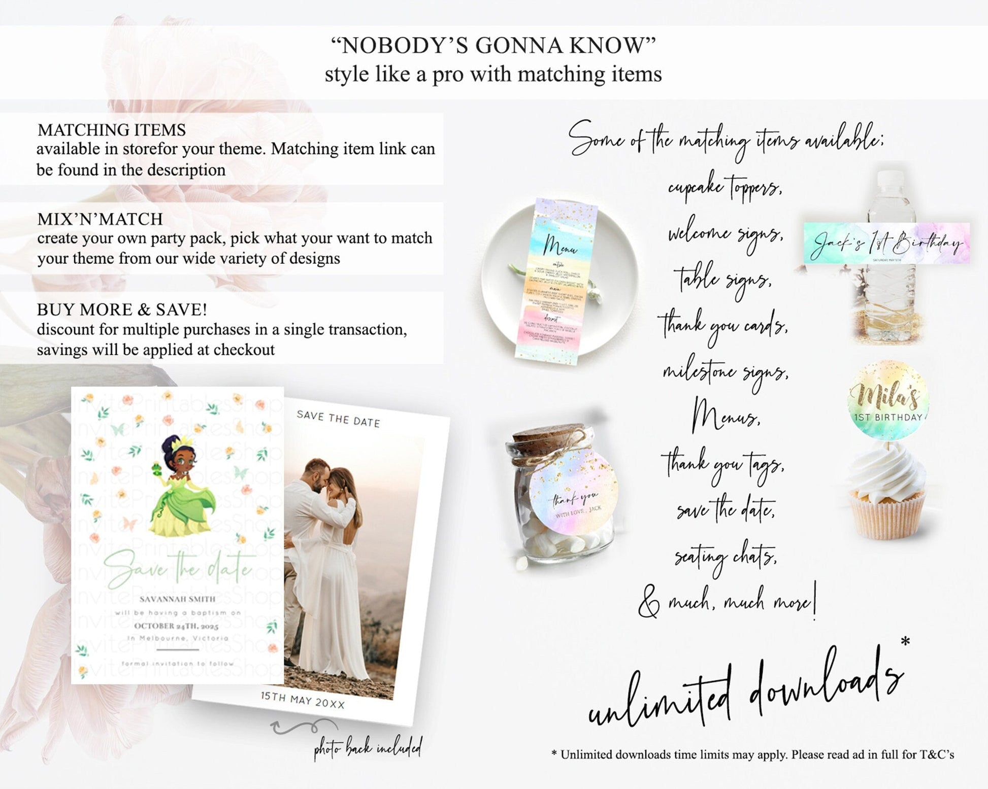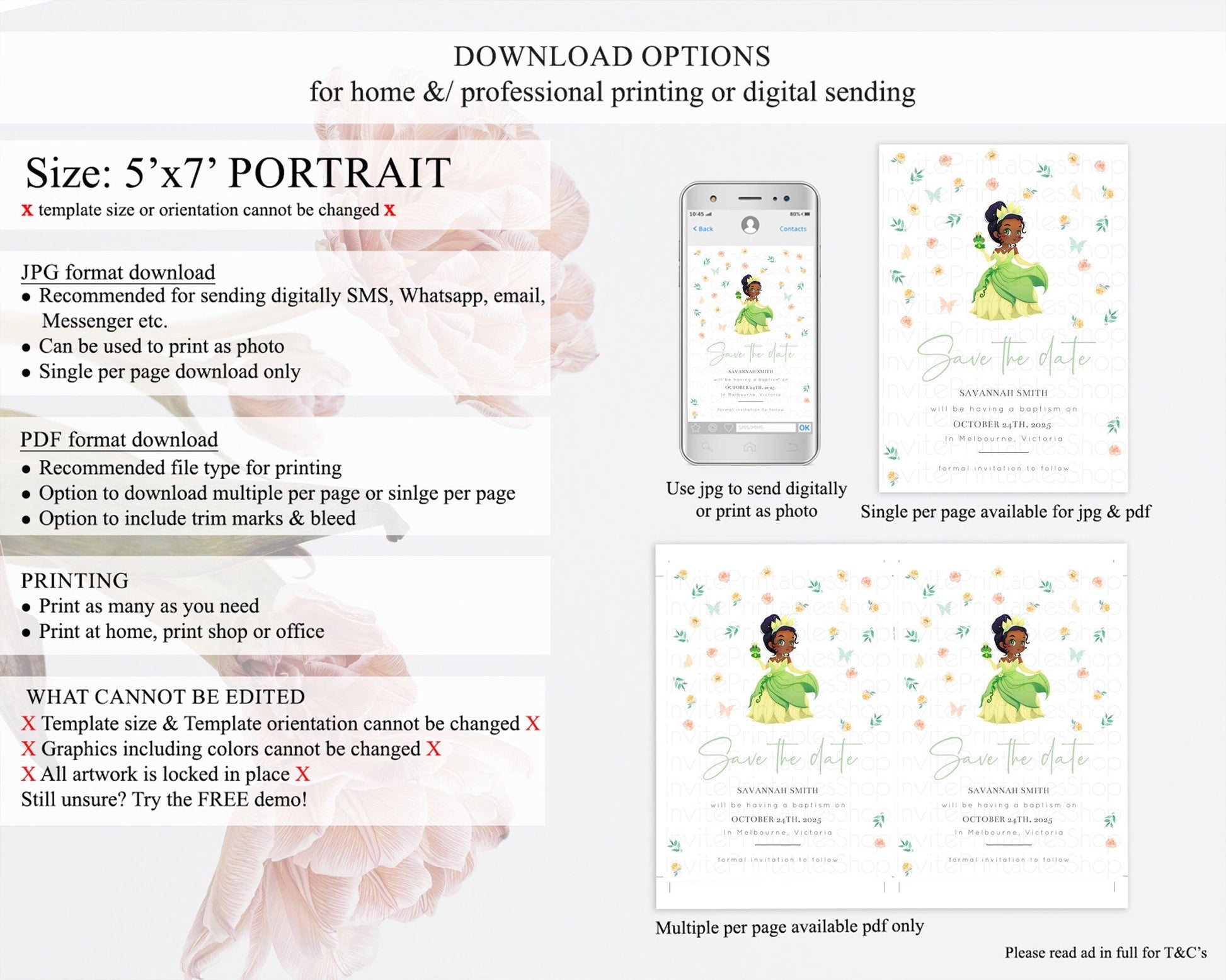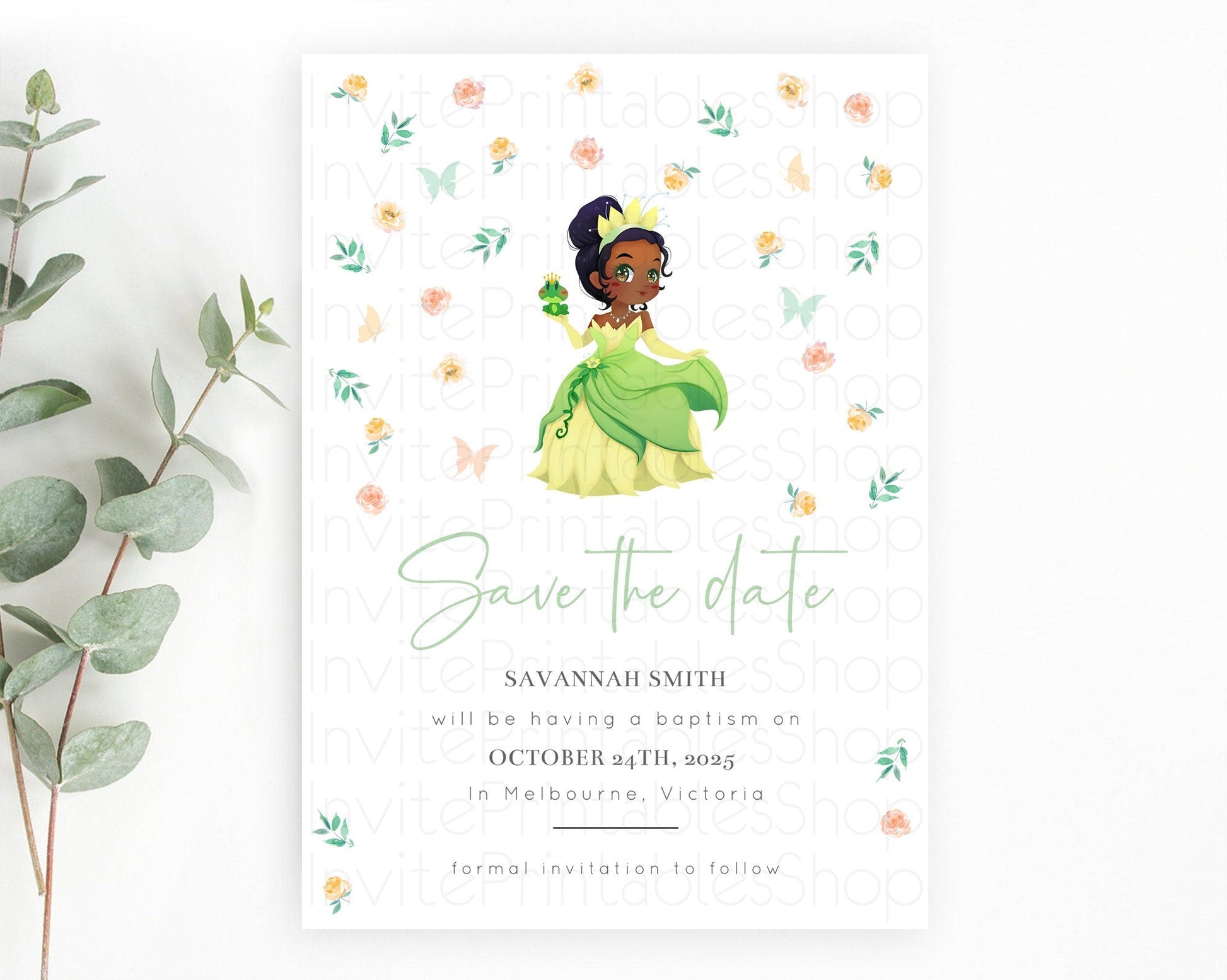 Princess Save The Date Template Secret Garden Enchanted Castle Pastel Floral Royal Party For 1st Birthday Baptism Baby Shower D10358
