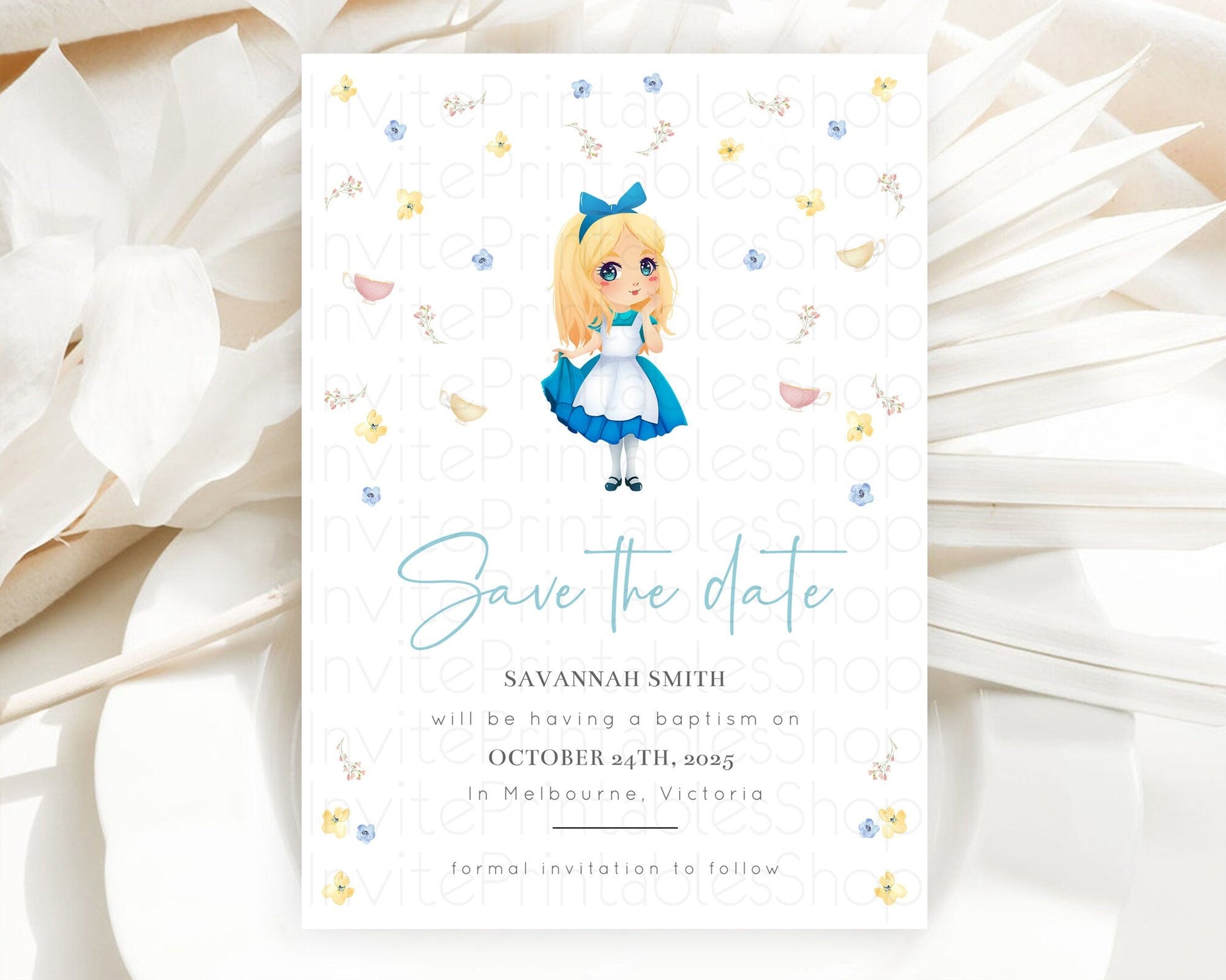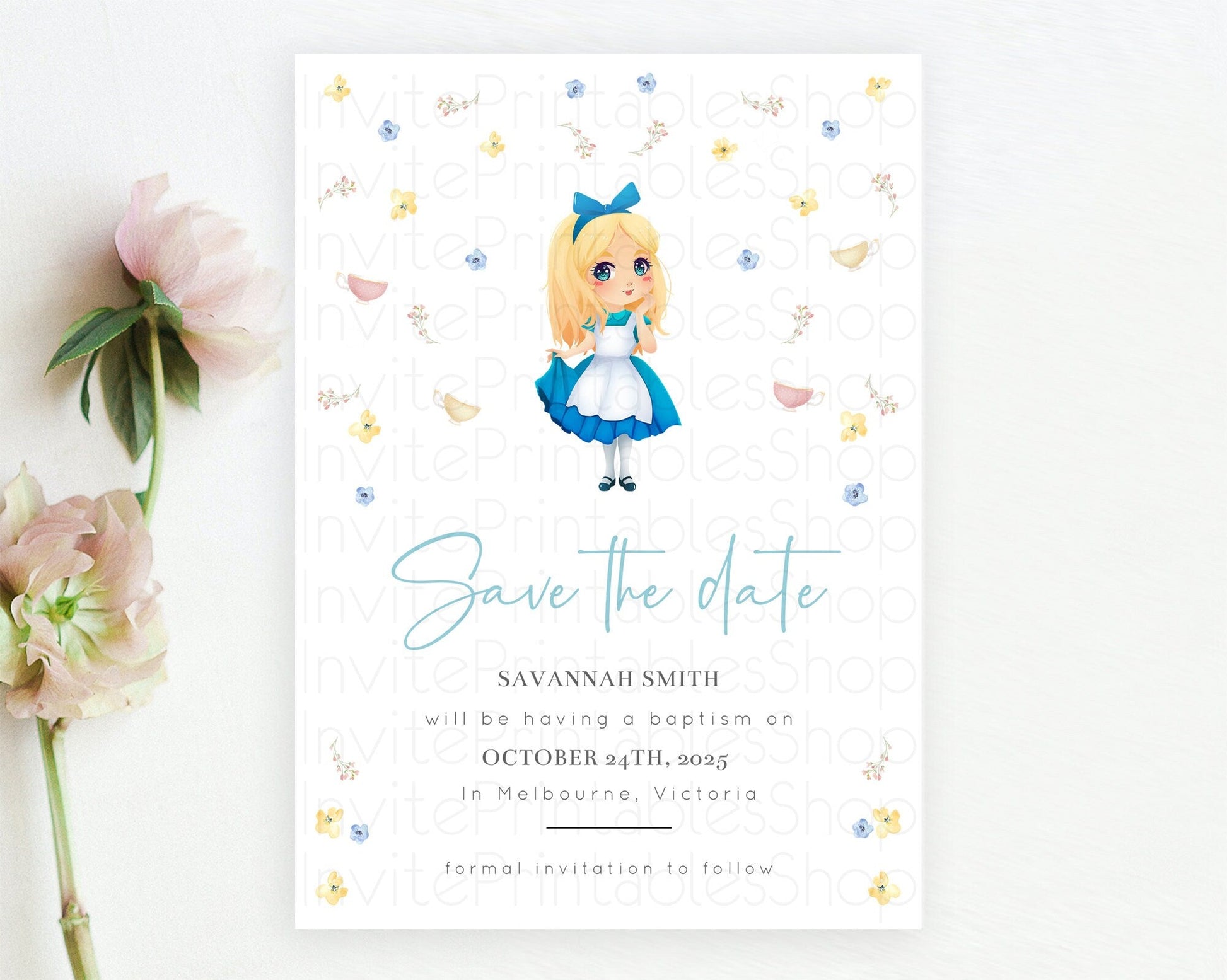 Princess Save The Date Template Secret Garden Enchanted Castle Pastel Floral Royal Party For 1st Birthday Baptism Baby Shower D10886