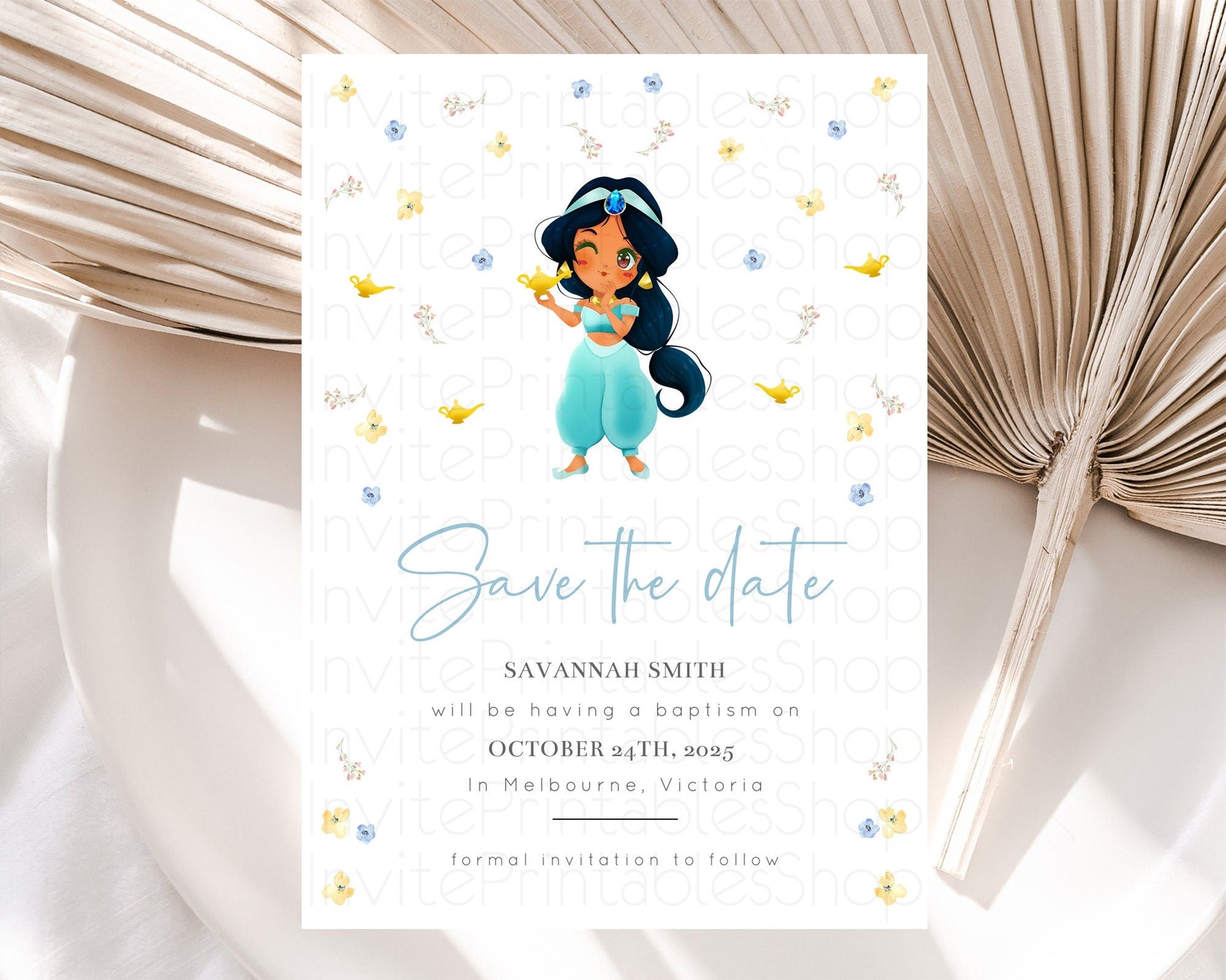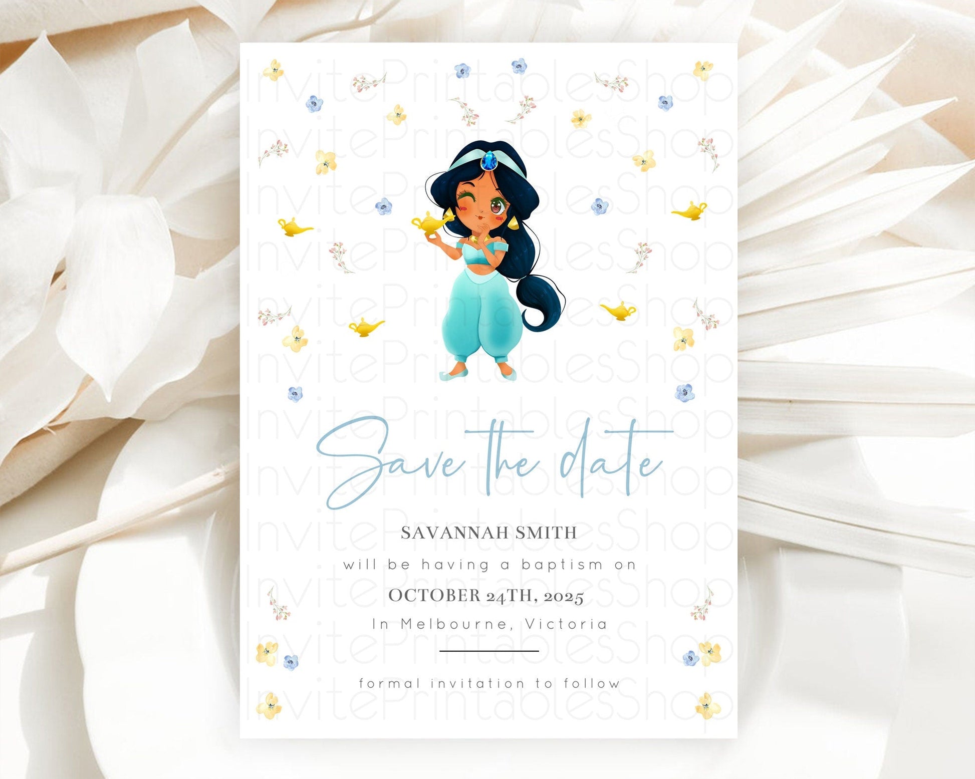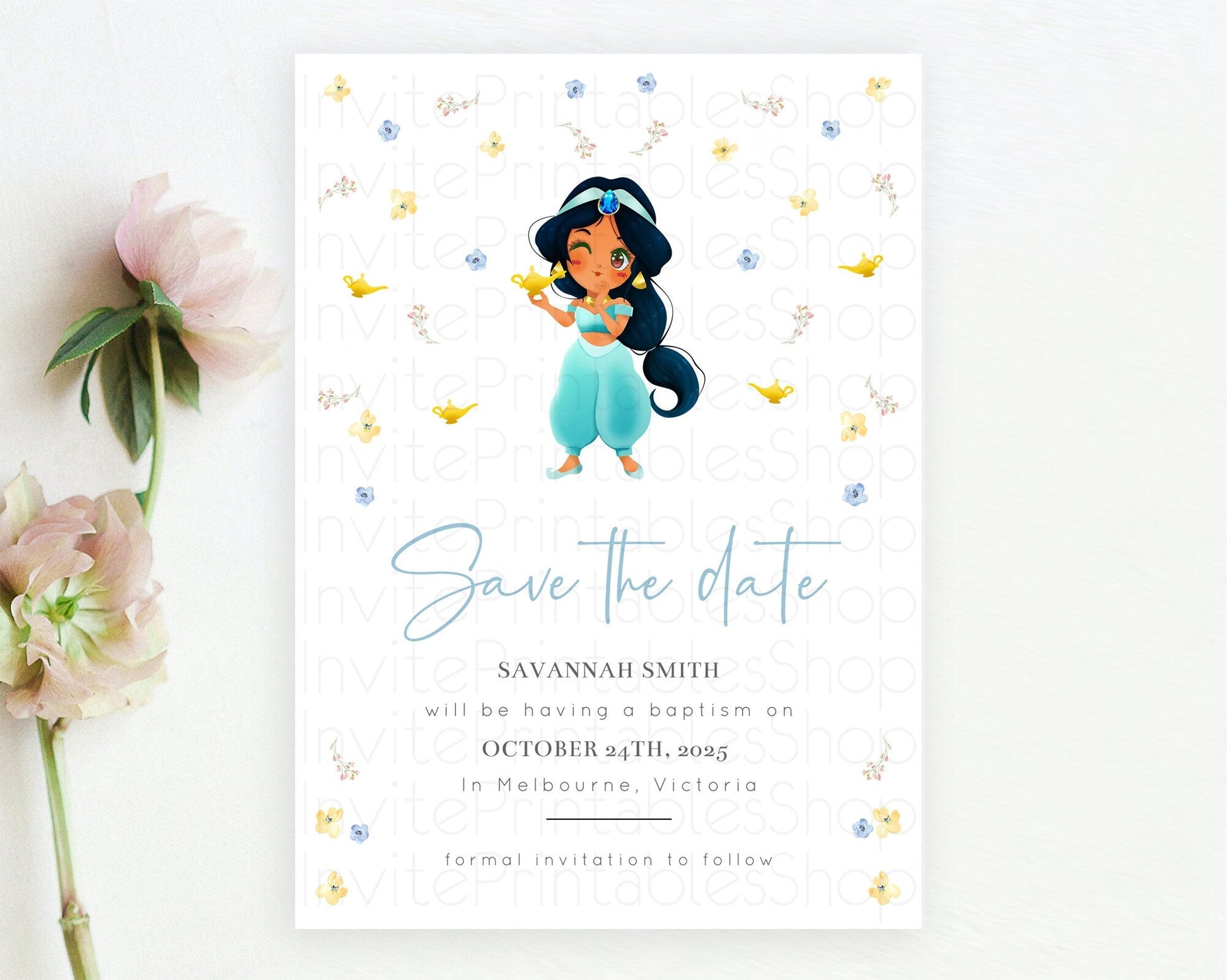Princess Save The Date Template Secret Garden Enchanted Castle Pastel Floral Royal Party For 1st Birthday Baptism Baby Shower D10887