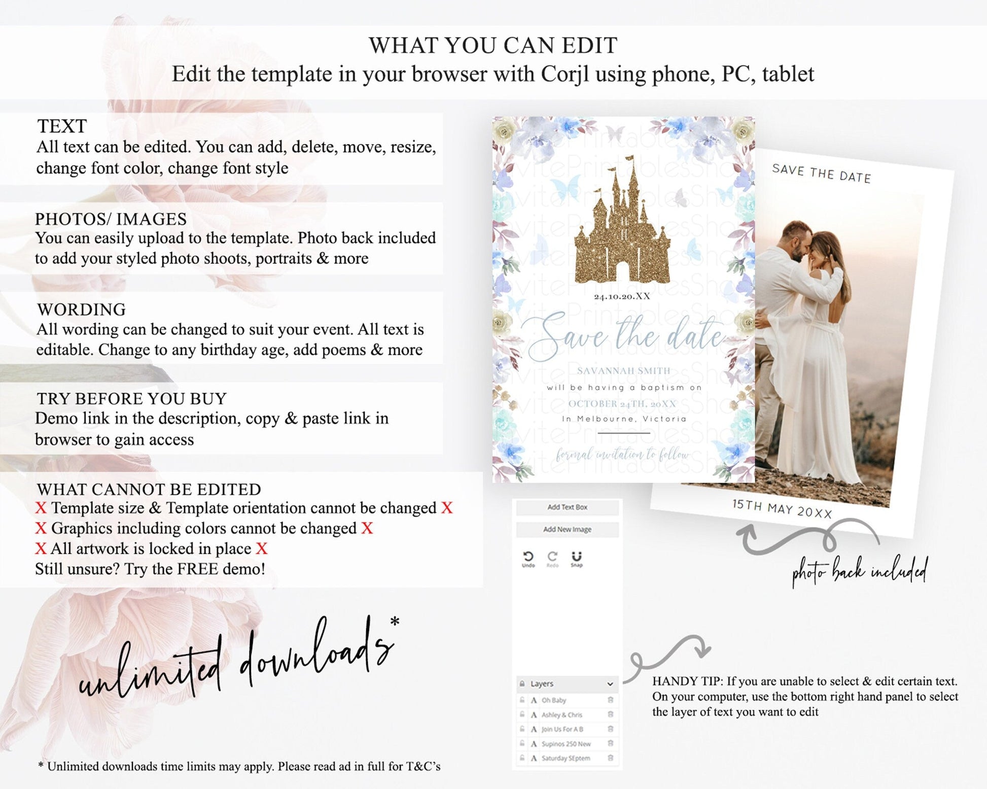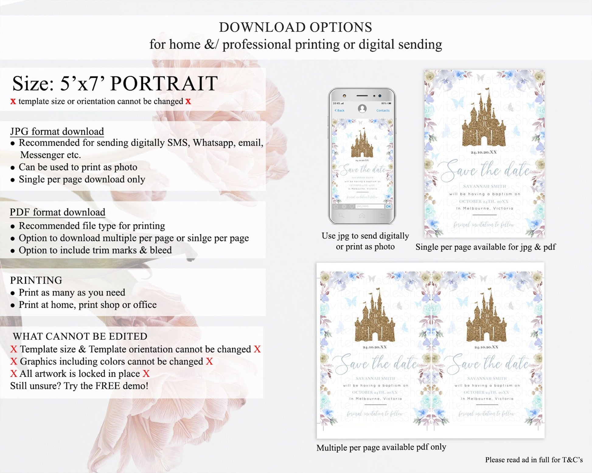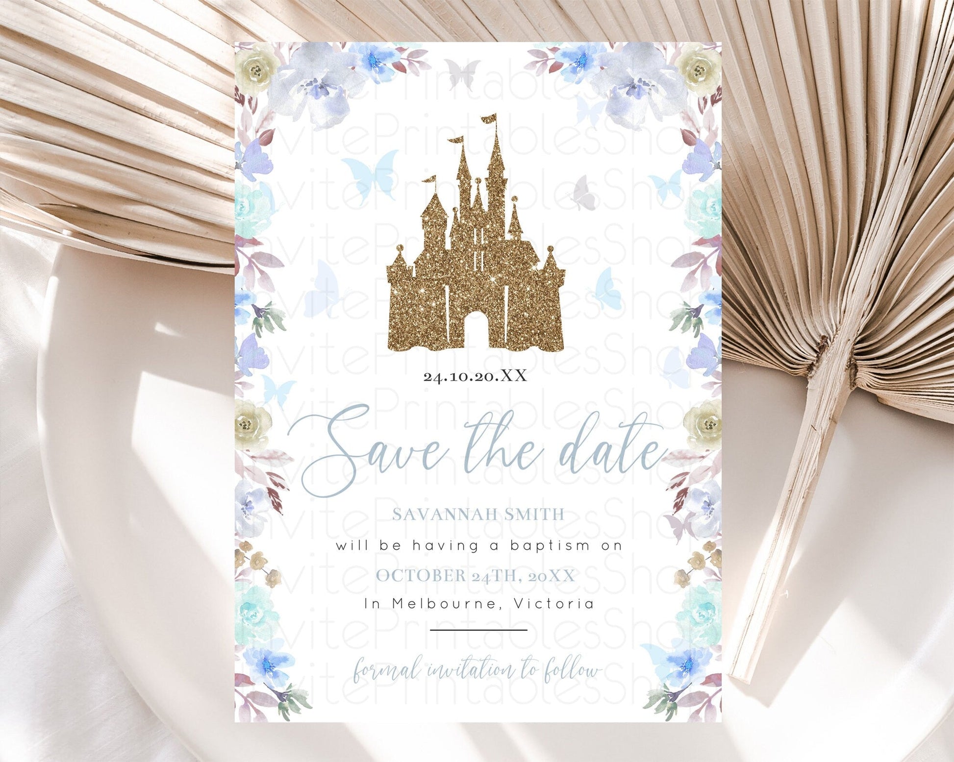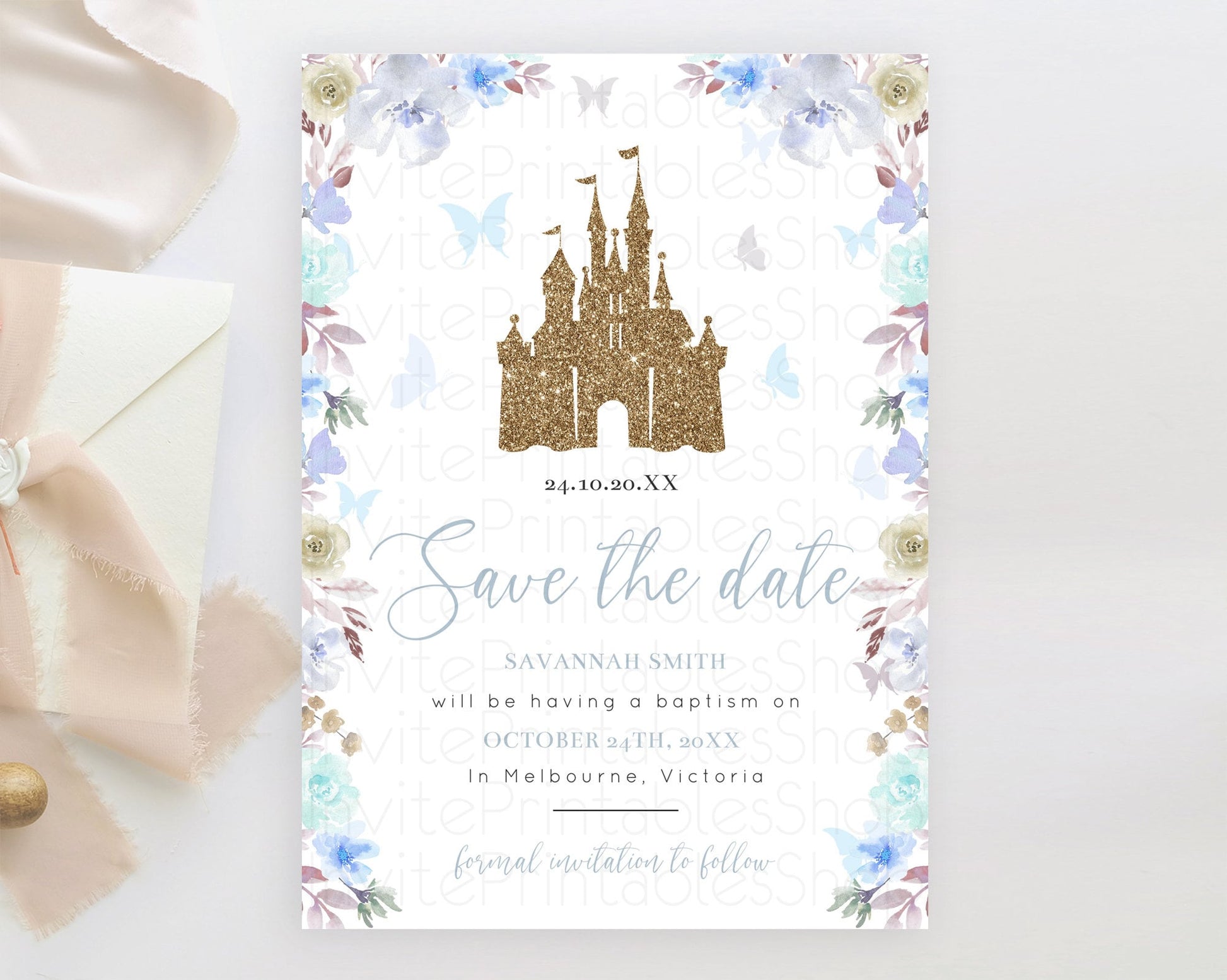 Princess Save The Date Template Secret Garden Enchanted Castle Pastel Floral Royal Party For 1st Birthday Baptism Baby Shower D10932