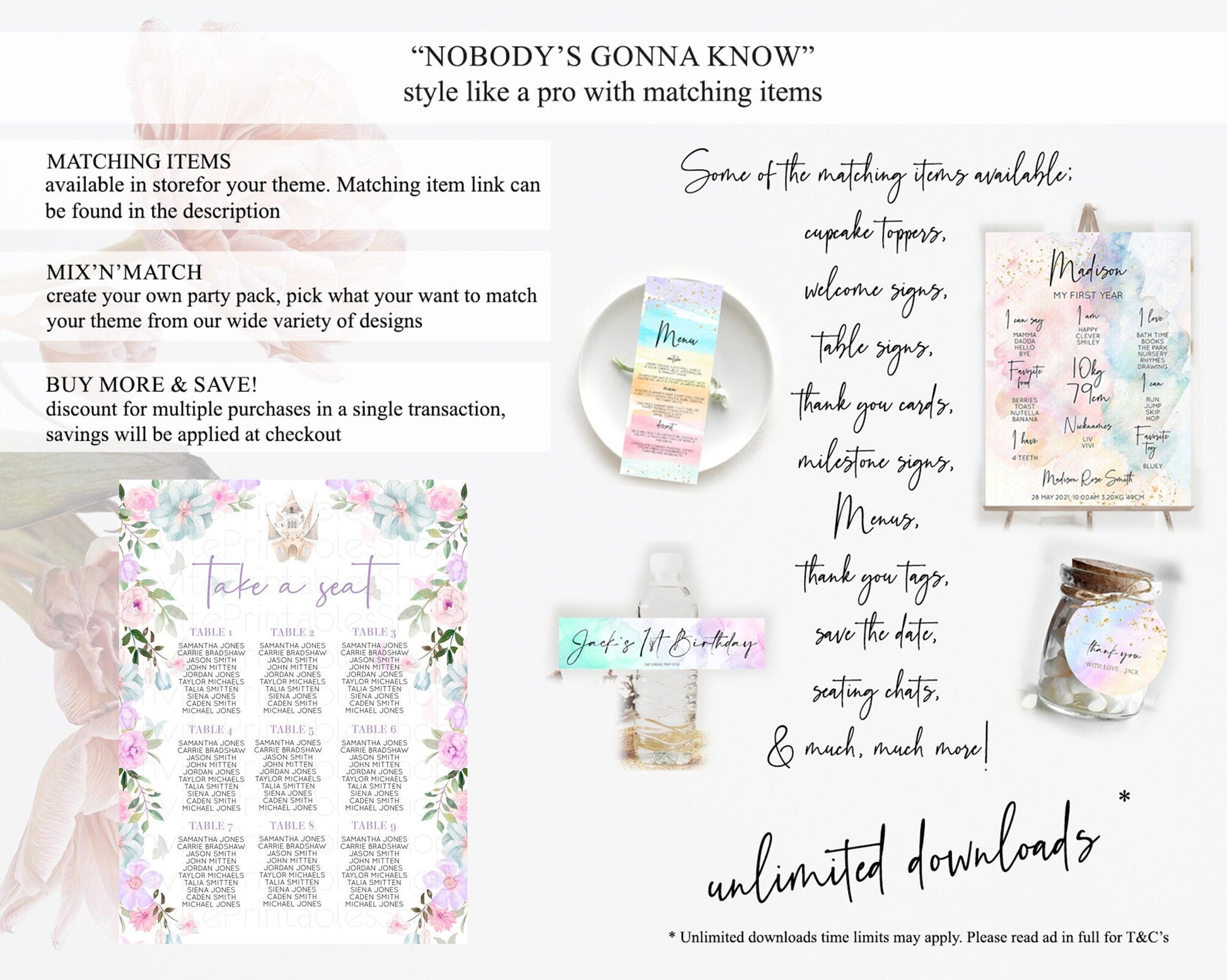 Princess Seating Chart Castle Seating Chart Royal Princess Decor Fairy Tale Enchanted Castle Pastel Floral Garden Table Number Sign D10471