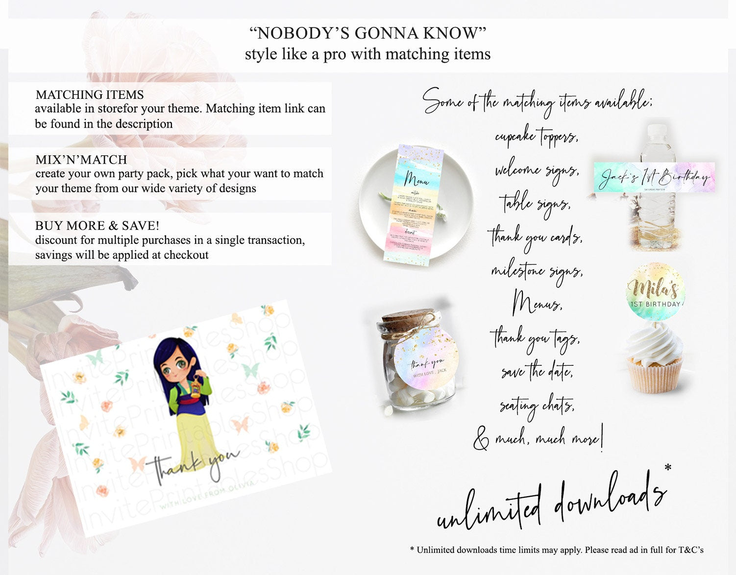 Princess Thank You Castle Thank You Card Secret Garden Birthday Thank You Card Enchanted Castle Pastel Floral Teacher Thank You Card D10357