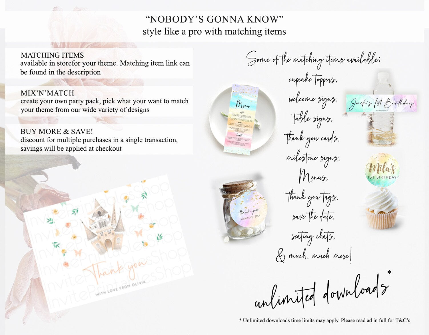 Princess Thank You Castle Thank You Card Secret Garden Birthday Thank You Card Enchanted Castle Pastel Floral Teacher Thank You Card D10363