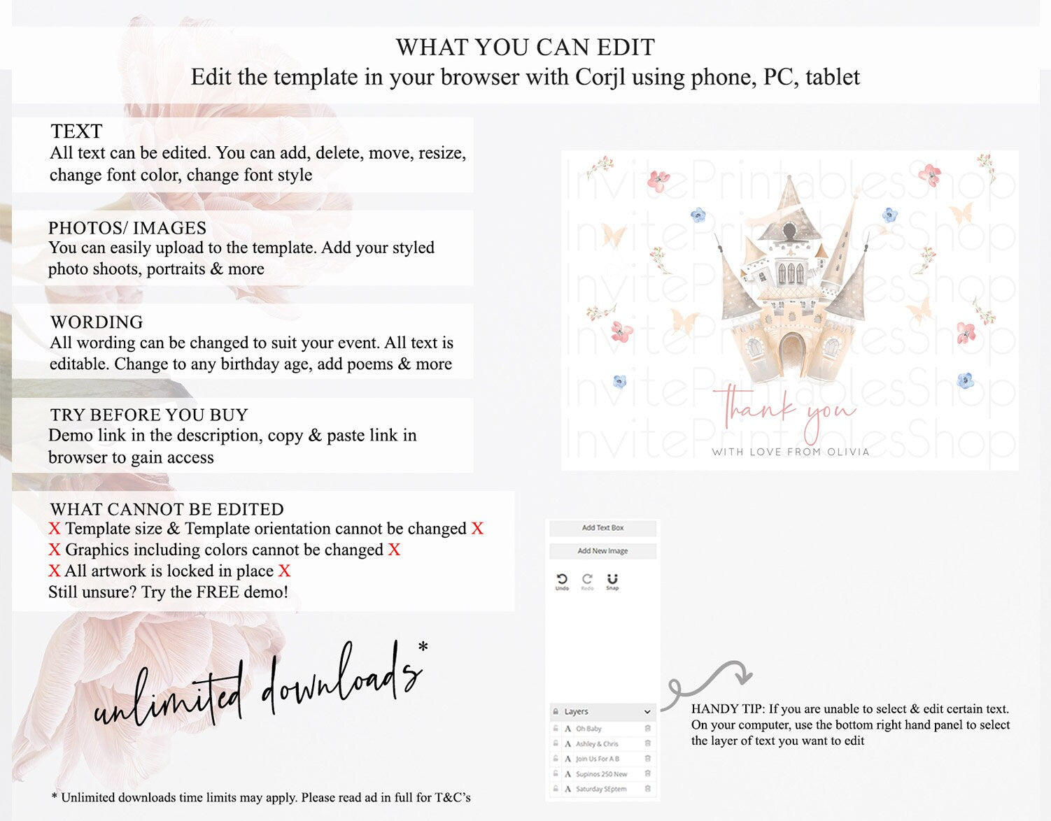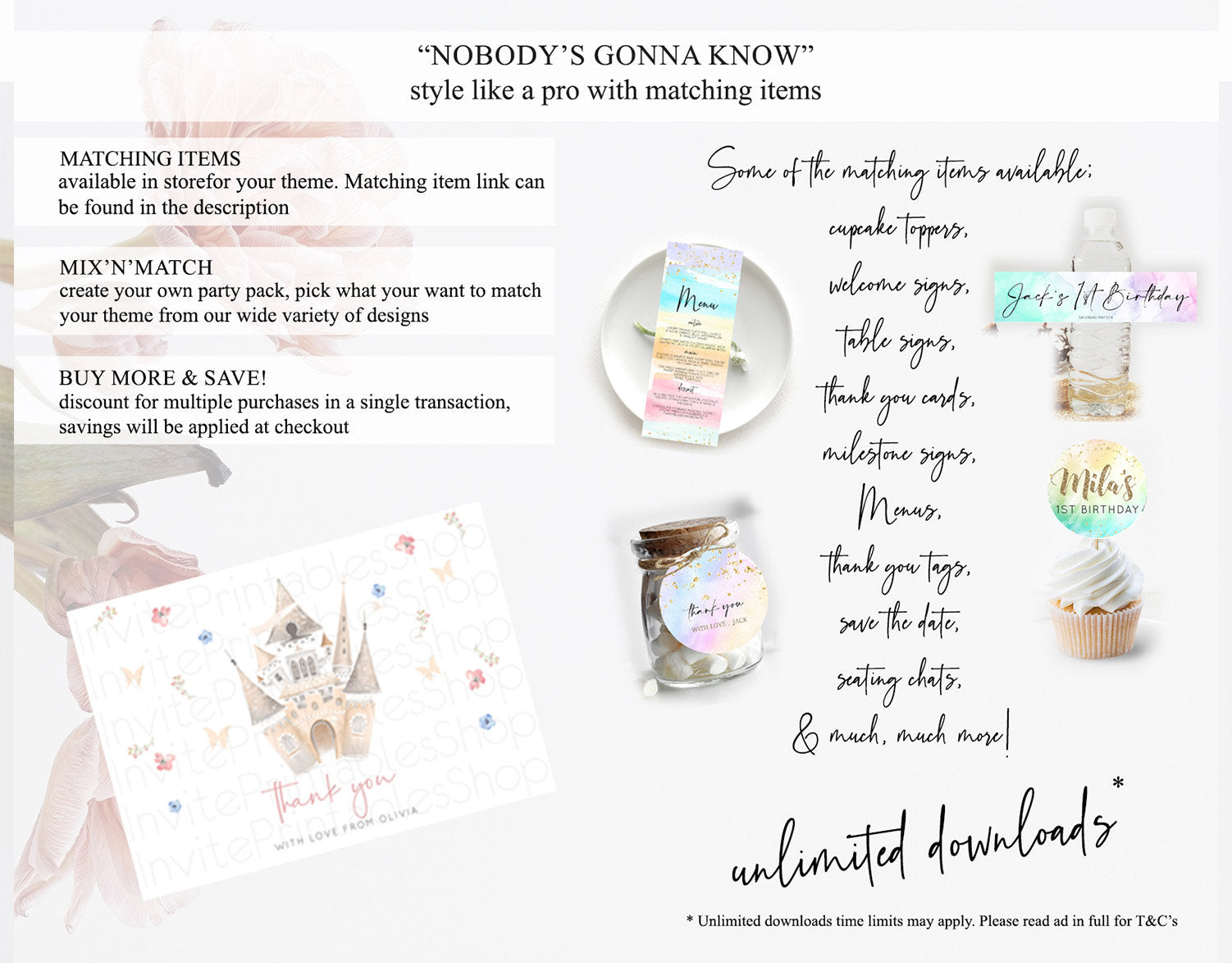 Princess Thank You Castle Thank You Card Secret Garden Birthday Thank You Card Enchanted Castle Pastel Floral Teacher Thank You Card D10364