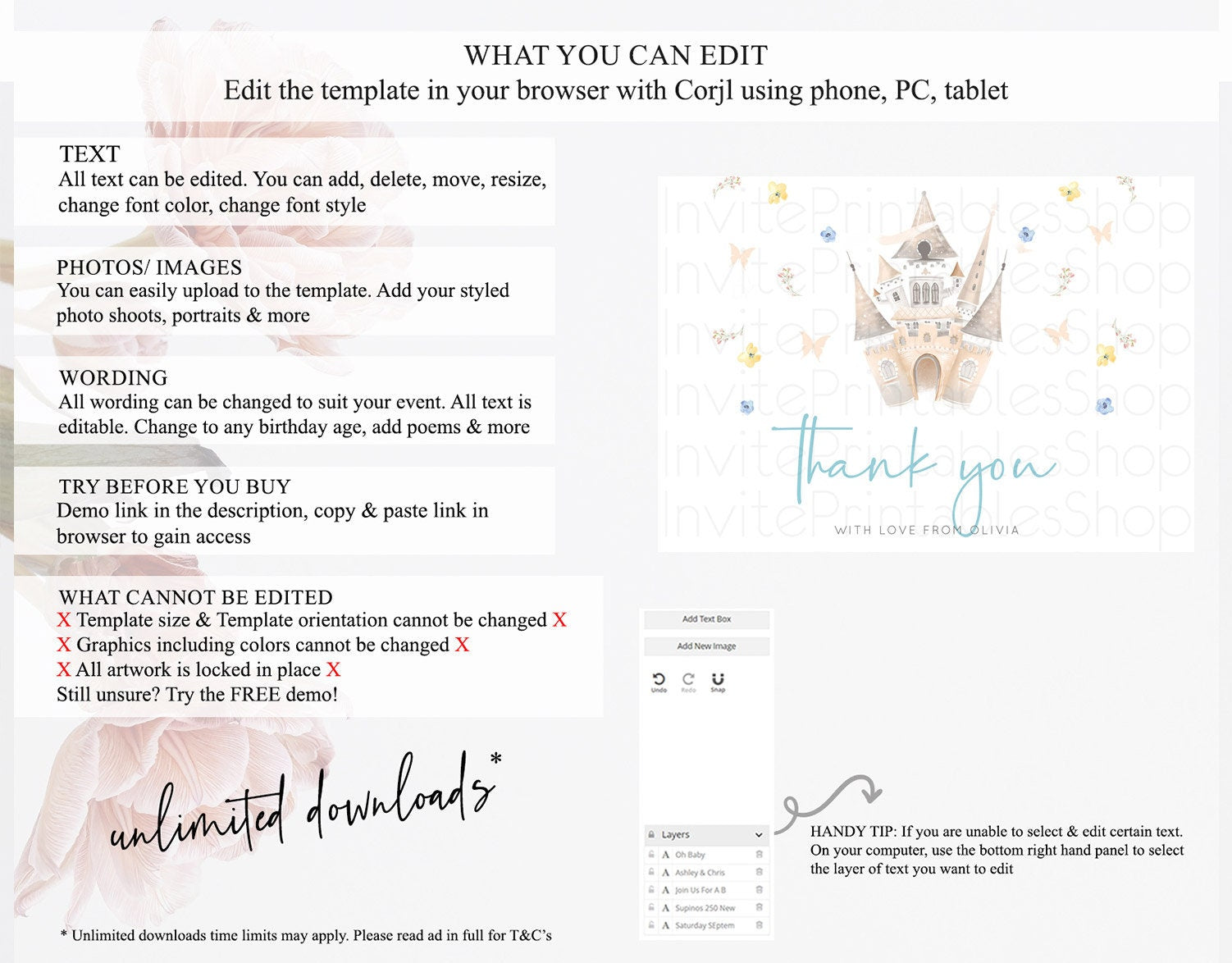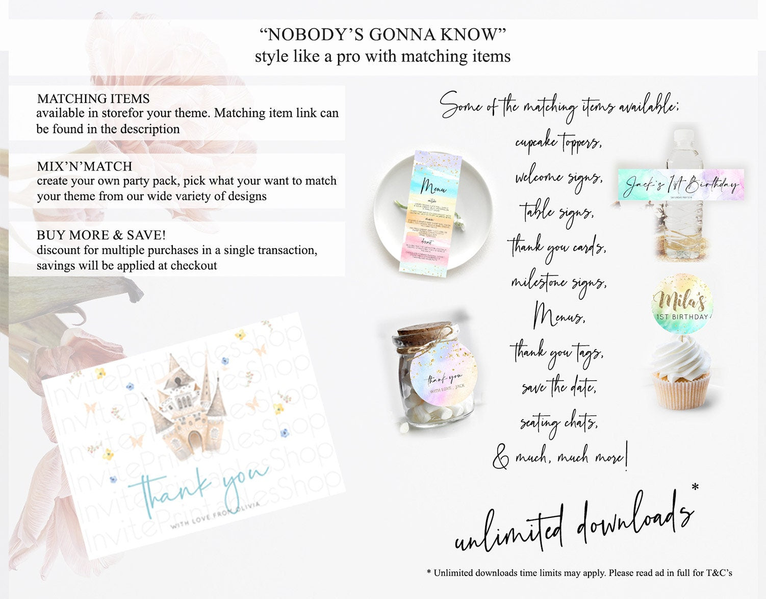 Princess Thank You Castle Thank You Card Secret Garden Birthday Thank You Card Enchanted Castle Pastel Floral Teacher Thank You Card D10365
