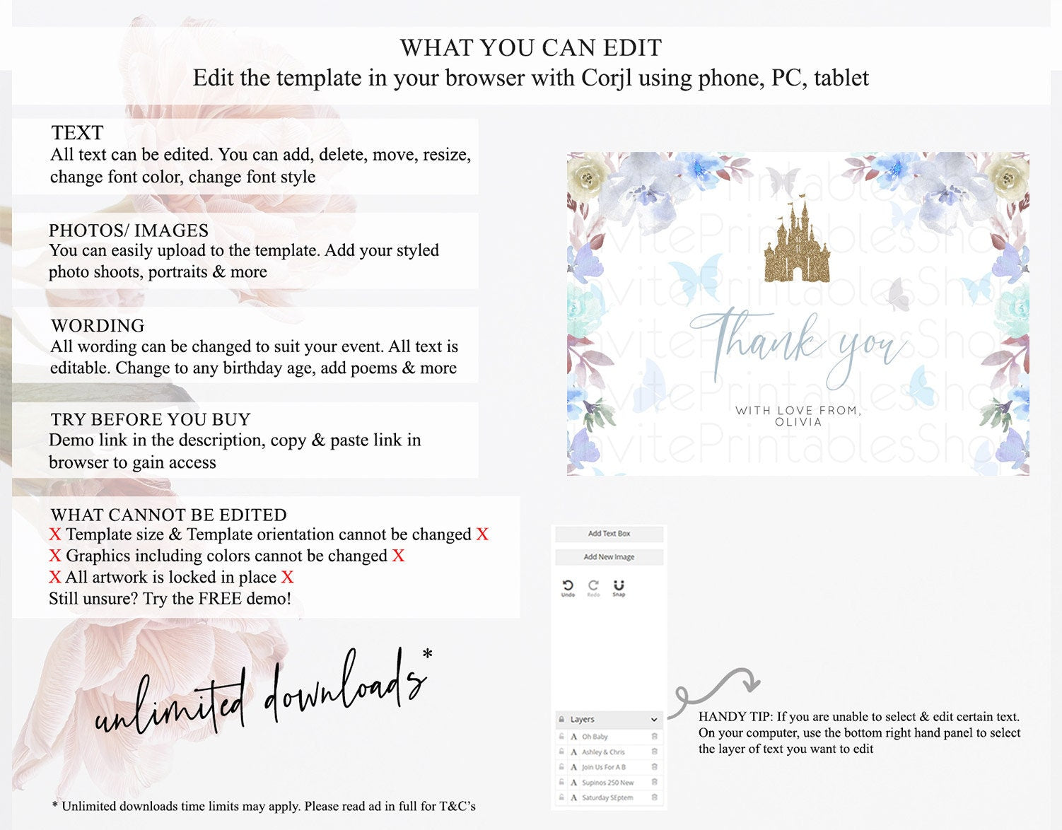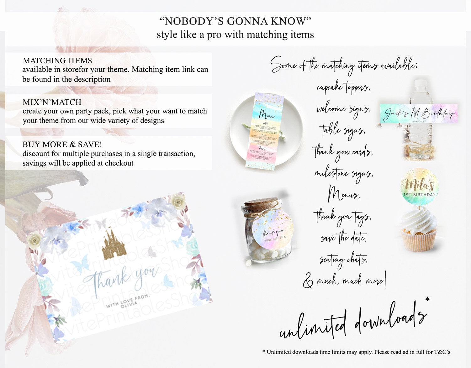 Princess Thank You Castle Thank You Card Secret Garden Birthday Thank You Card Enchanted Castle Pastel Floral Teacher Thank You Card D10932