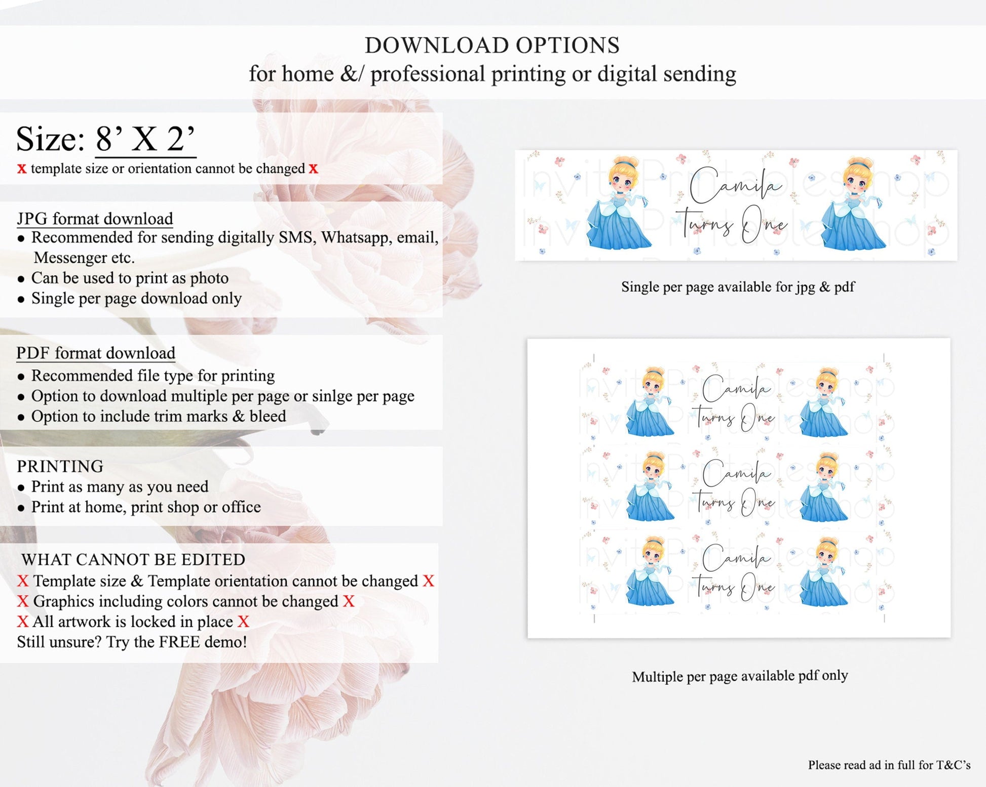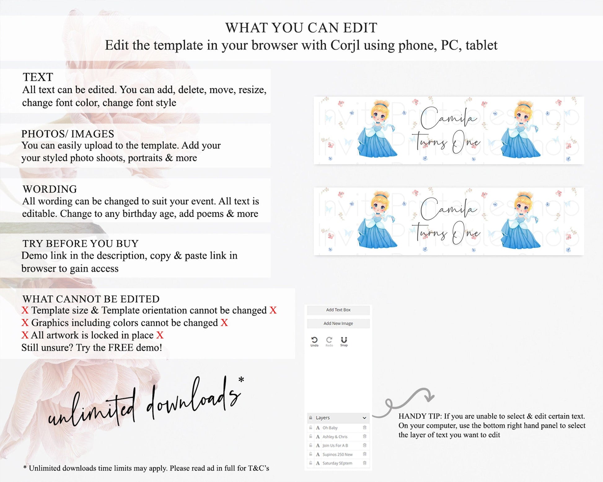 Princess Water Label Template Secret Garden Enchanted Castle Pastel Floral Royal Party Decor For 1st Birthday Baptism Baby Shower D10354