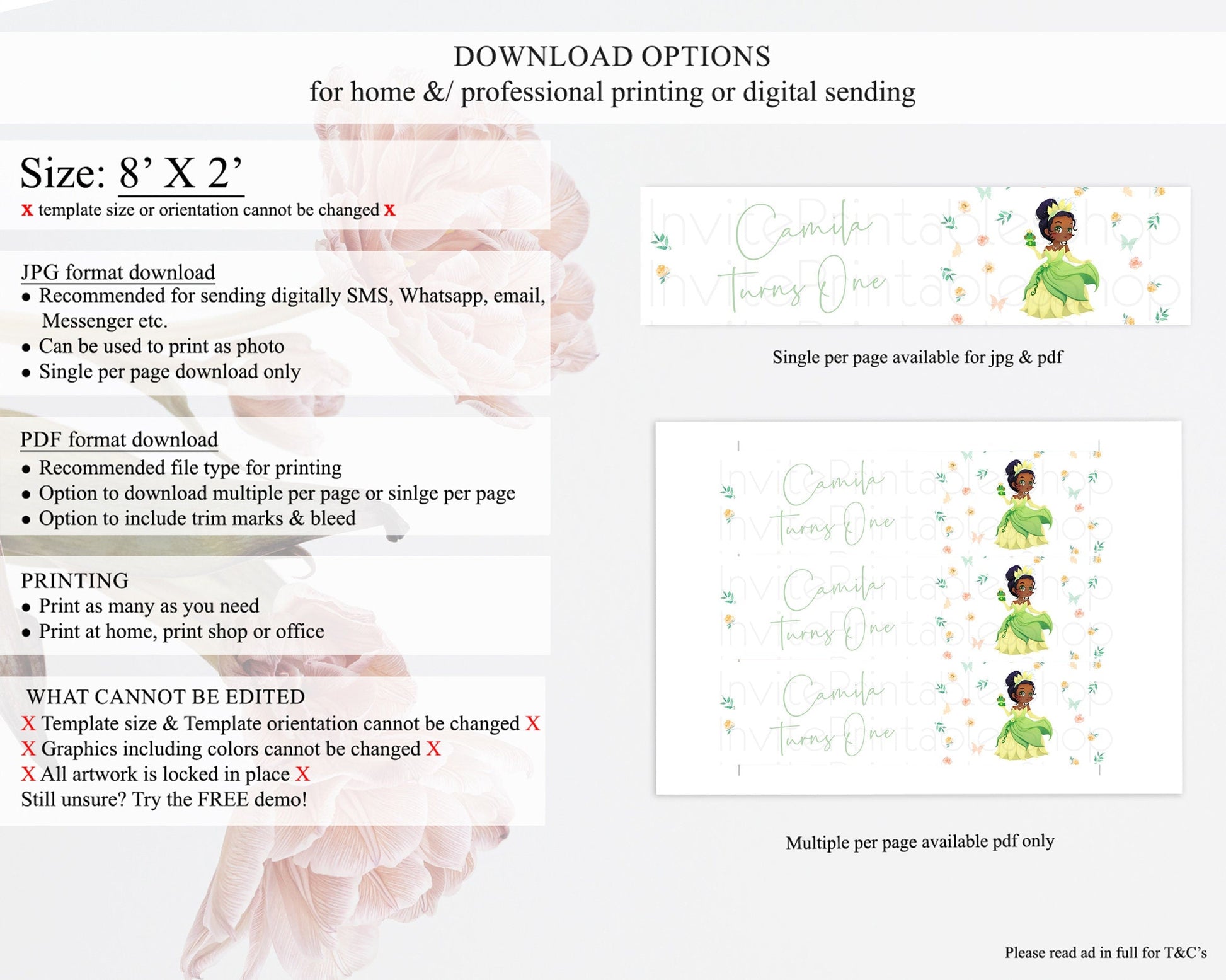 • Template size & orientation cannot be changed. Please use the demo link to confirm this product suits your needs.