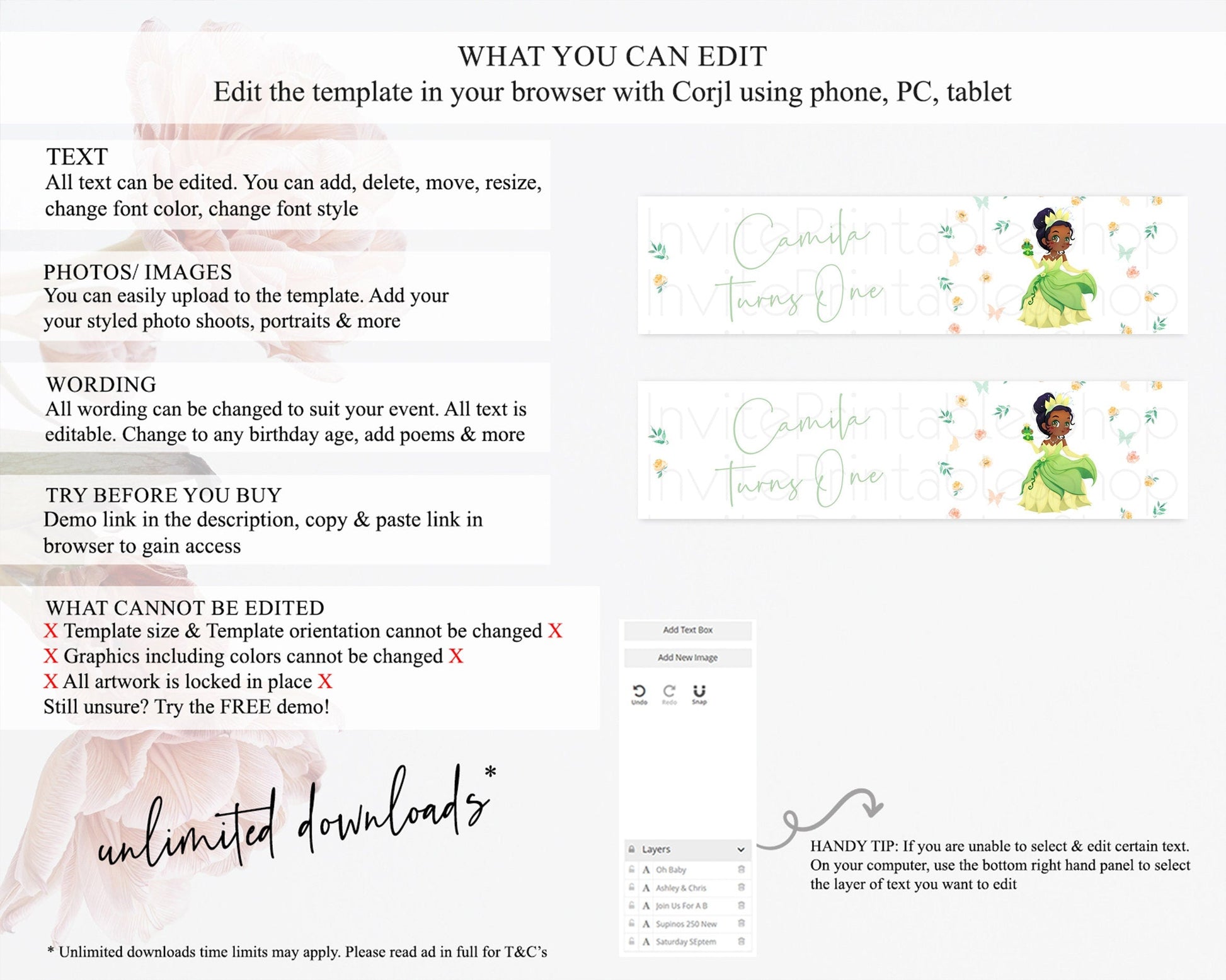 • After purchase, Corjl emails your editing link. Allow up to 15 minutes for delivery.