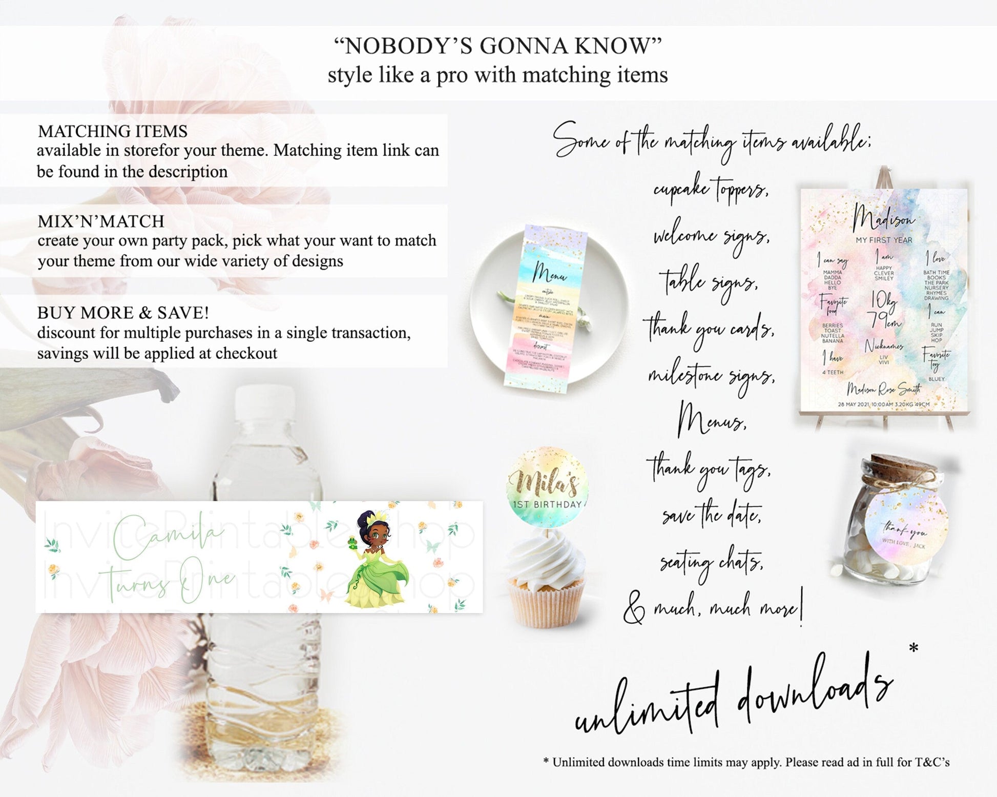 Princess Water Label Template Secret Garden Enchanted Castle Pastel Floral Royal Party Decor For 1st Birthday Baptism Baby Shower D10358