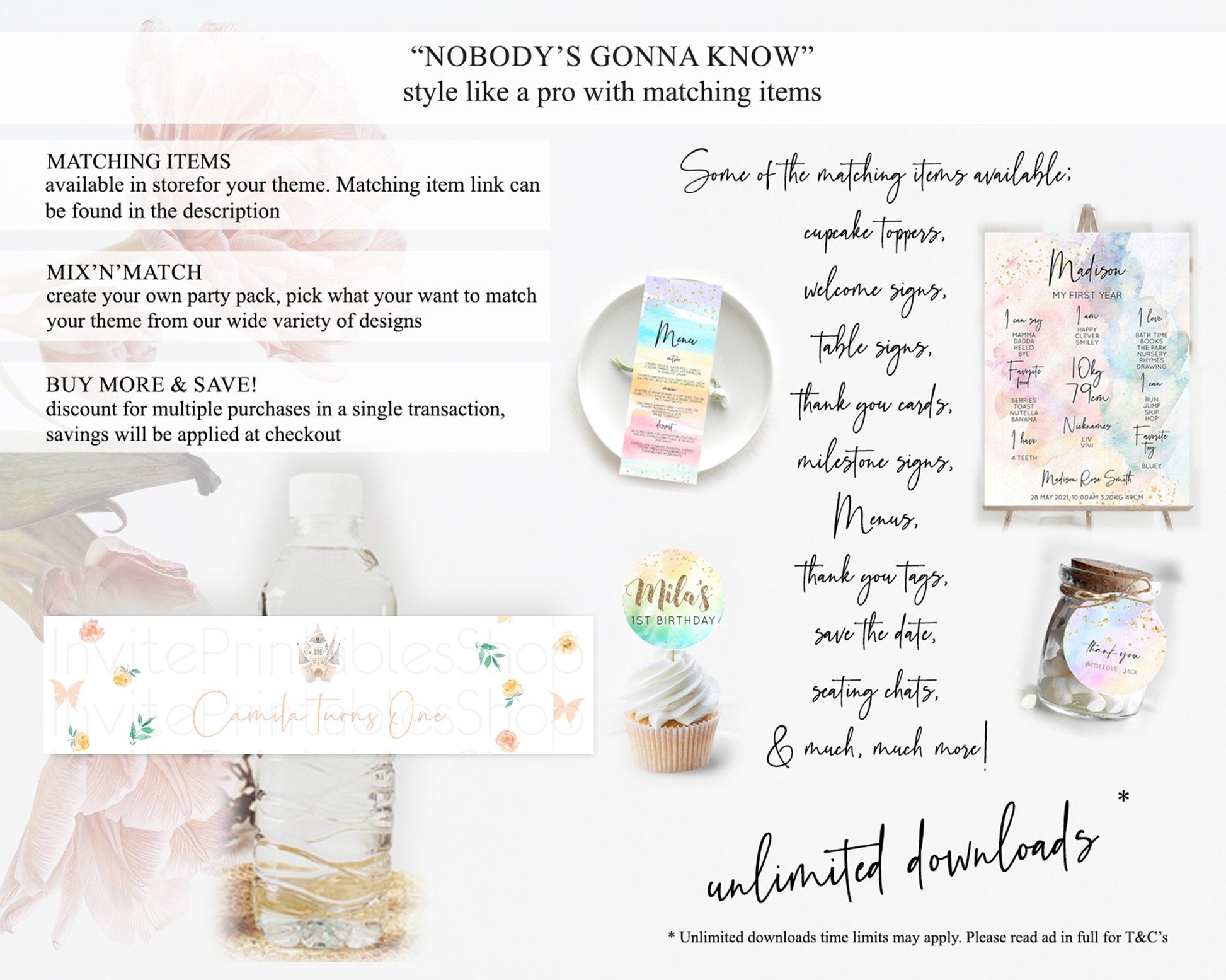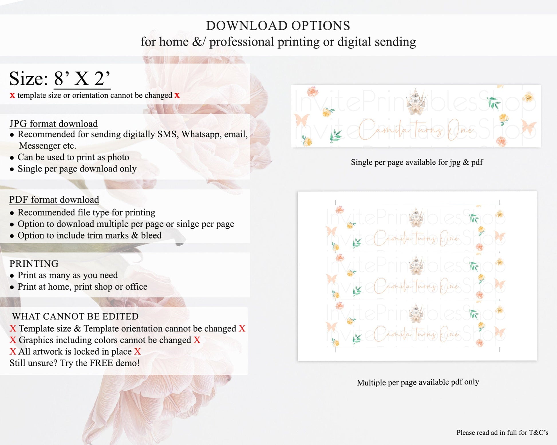 Princess Water Label Template Secret Garden Enchanted Castle Pastel Floral Royal Party Decor For 1st Birthday Baptism Baby Shower D10363