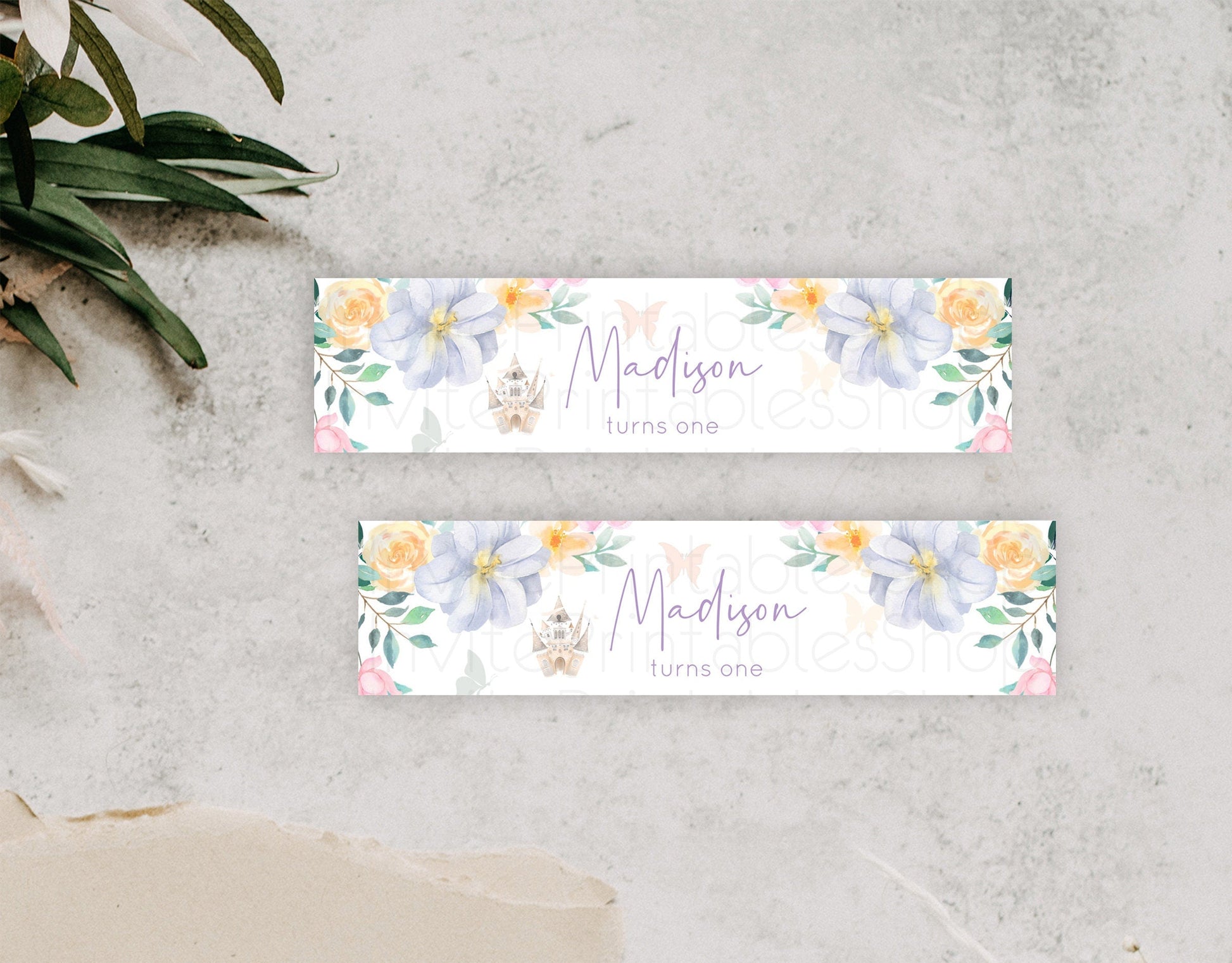 Princess Water Label Template Secret Garden Enchanted Castle Pastel Floral Royal Party Decor For 1st Birthday Baptism Baby Shower D10473