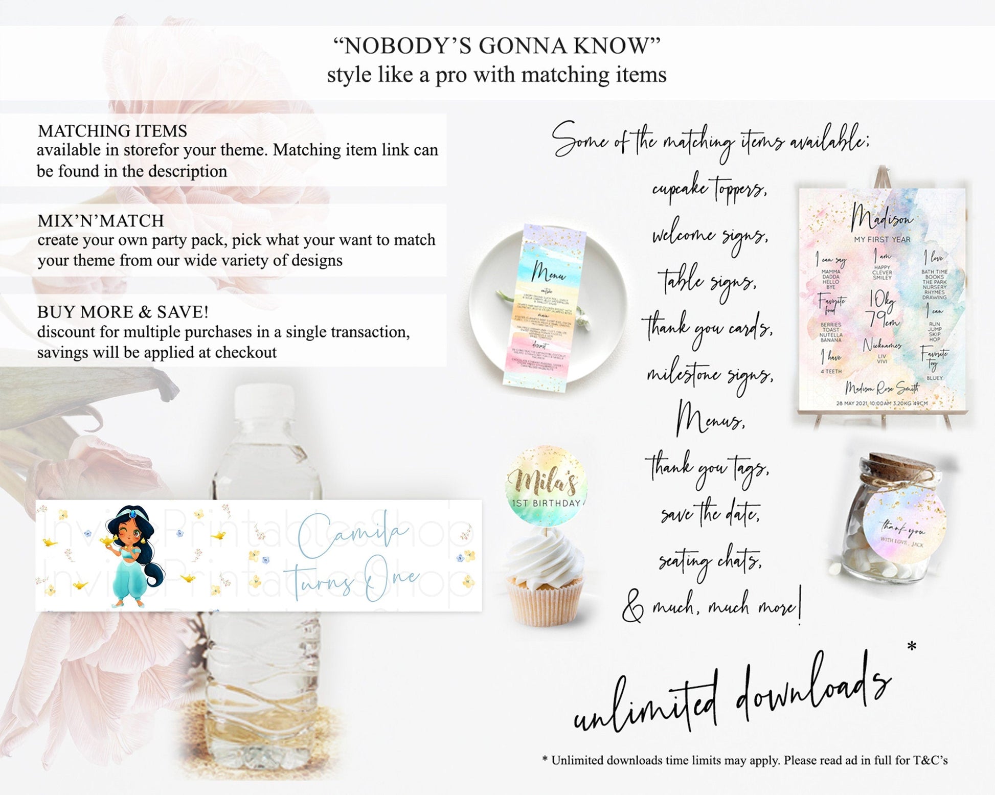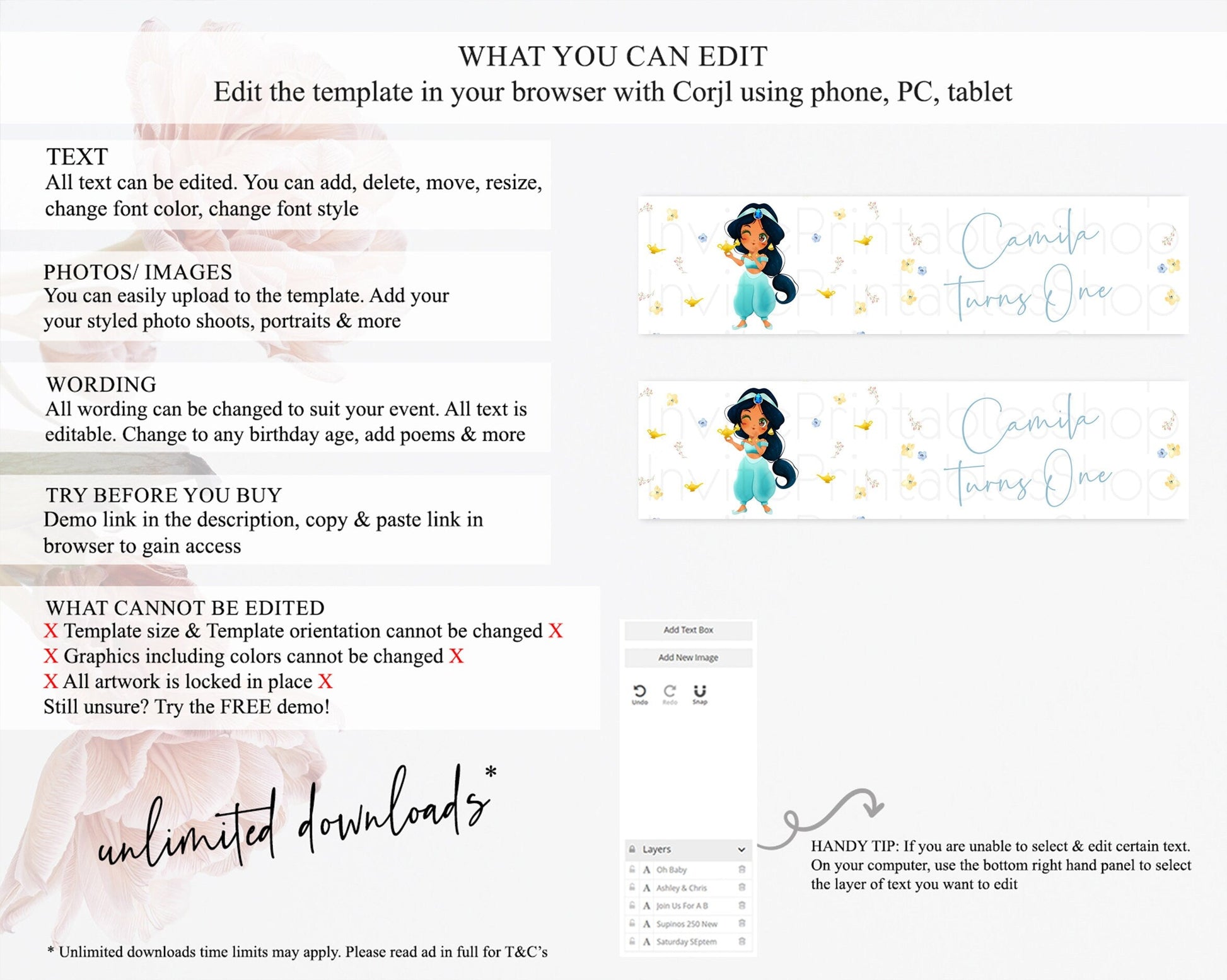 Princess Water Label Template Secret Garden Enchanted Castle Pastel Floral Royal Party Decor For 1st Birthday Baptism Baby Shower D10887