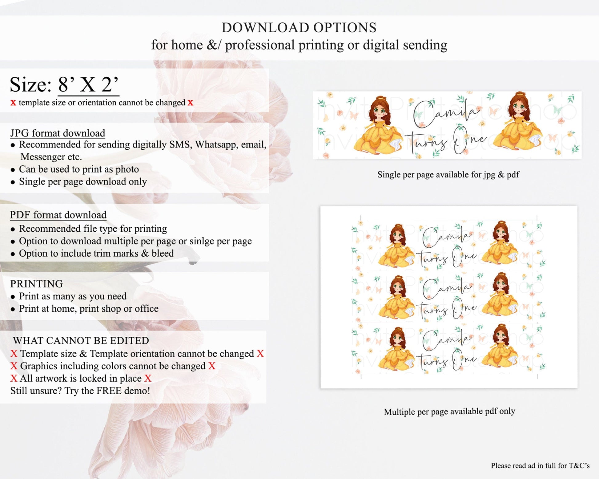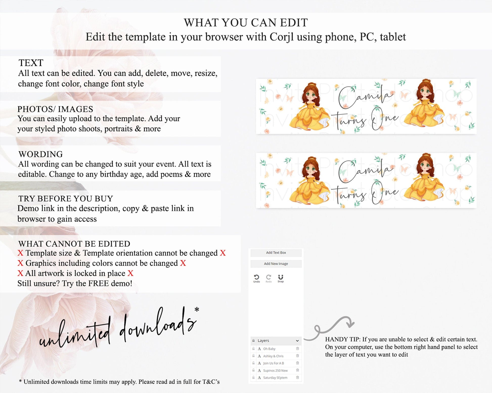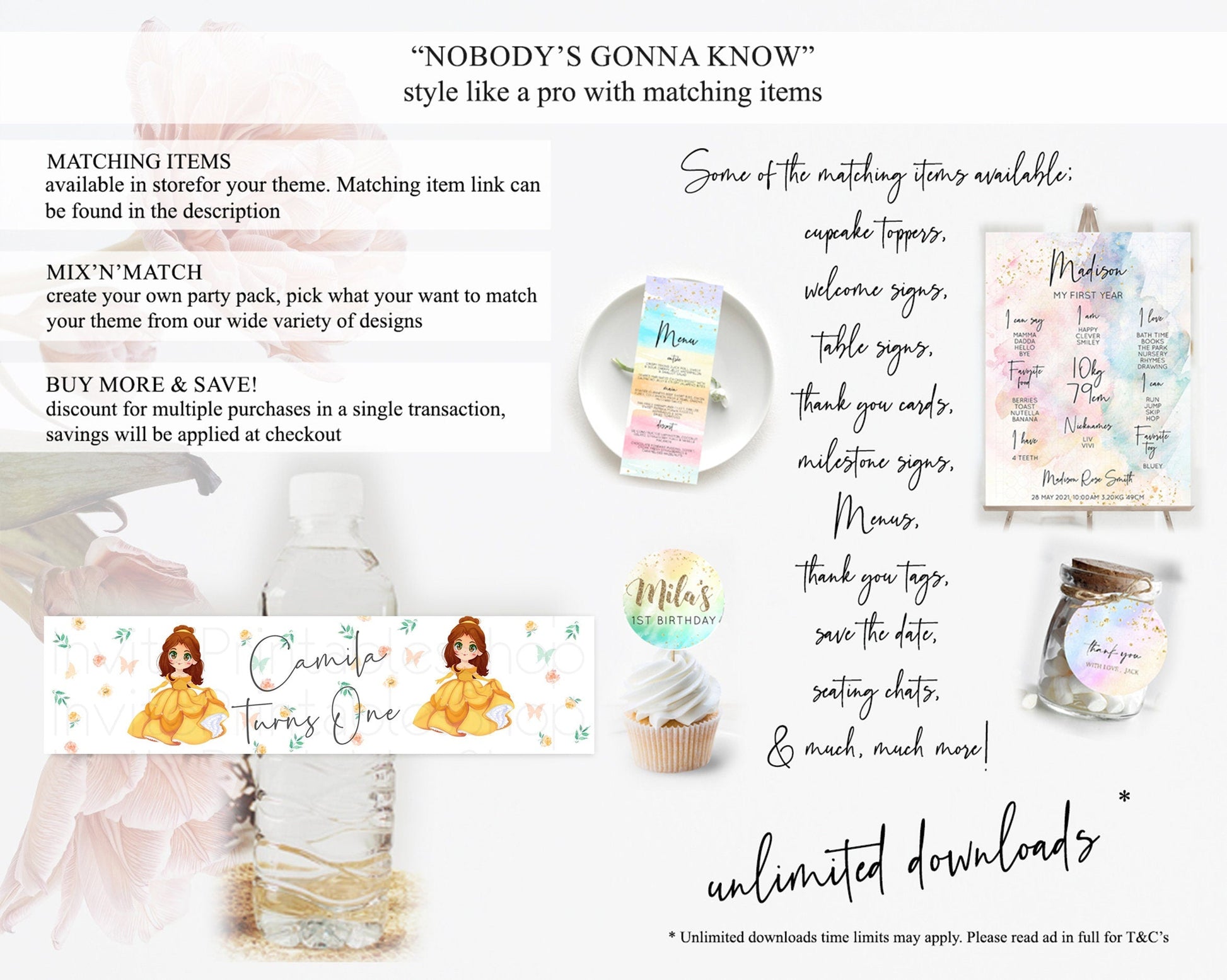 Princess Water Label Template Secret Garden Enchanted Castle Pastel Floral Royal Party Decor For 1st Birthday Baptism Baby Shower D10890