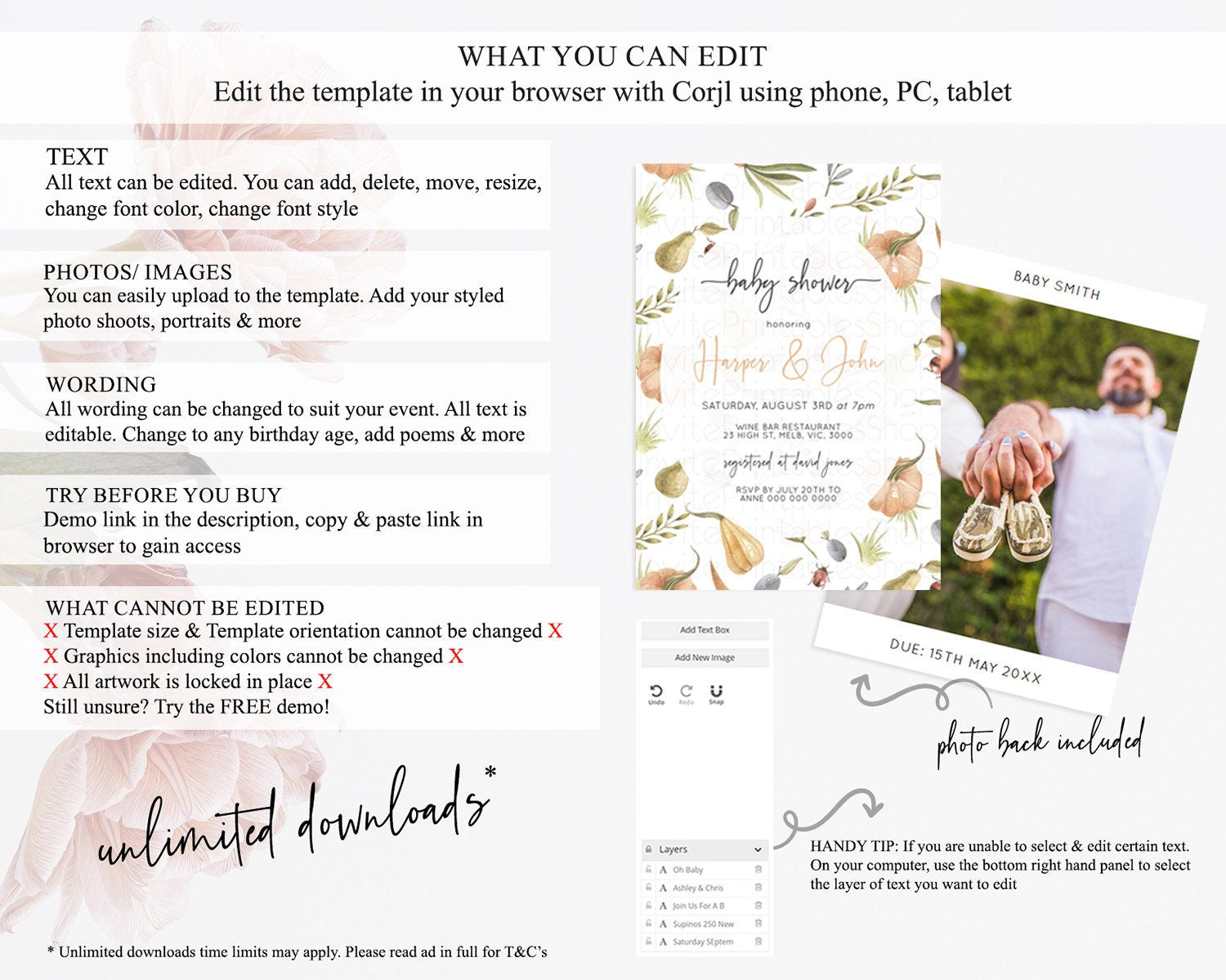 • After purchase, Corjl emails your editing link. Allow up to 15 minutes for delivery.