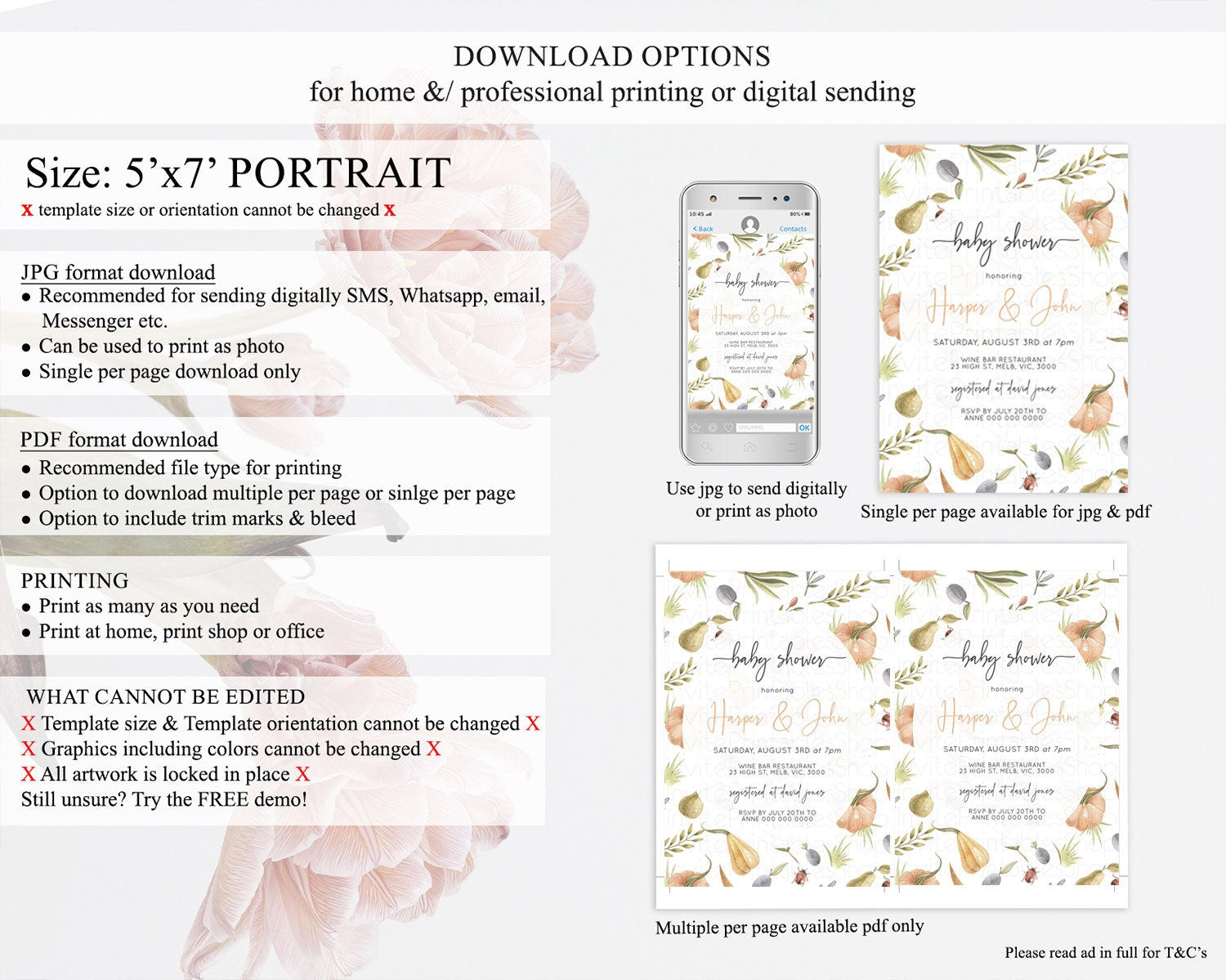 • Template size & orientation cannot be changed. Please use the demo link to confirm this product suits your needs.