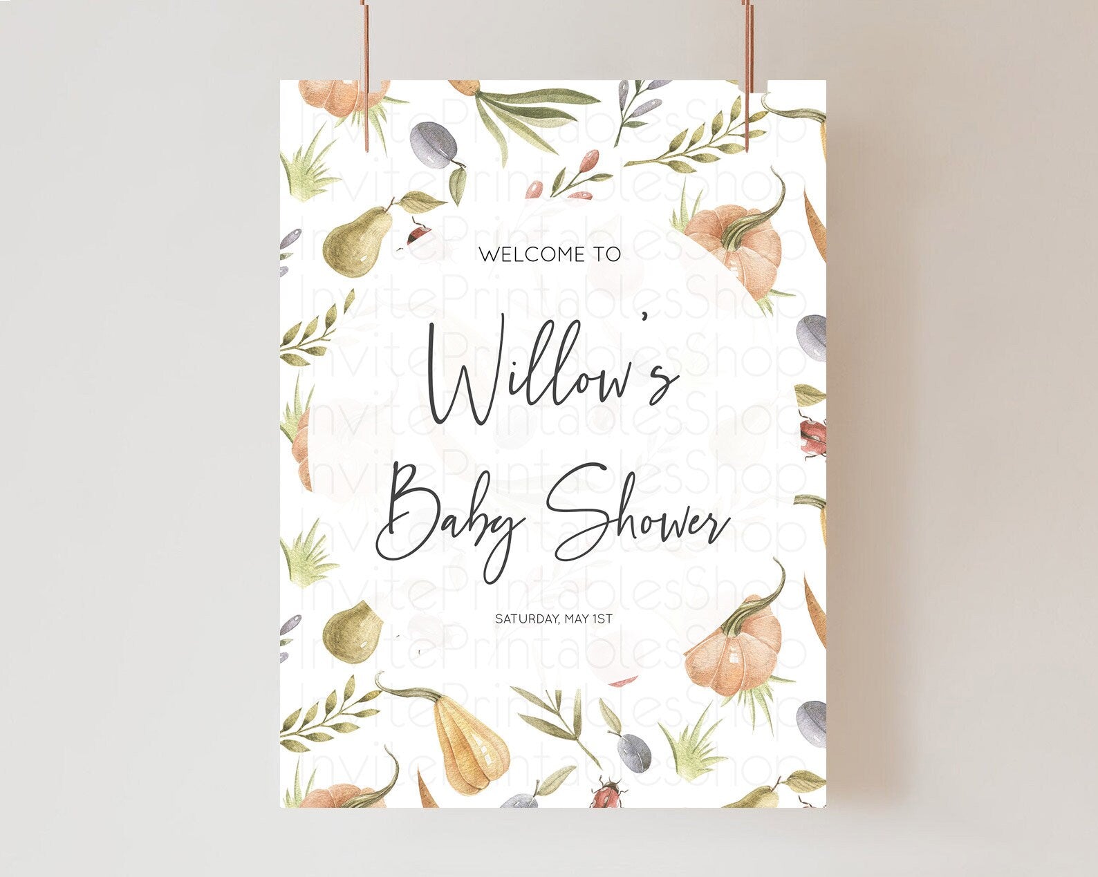 Pumpkin Baby Shower Welcome Board Pear Welcome Sign Ladybug Plum Welcome Sign Vegetable Country Garden Farm Decor Baby Welcome Sign D10543