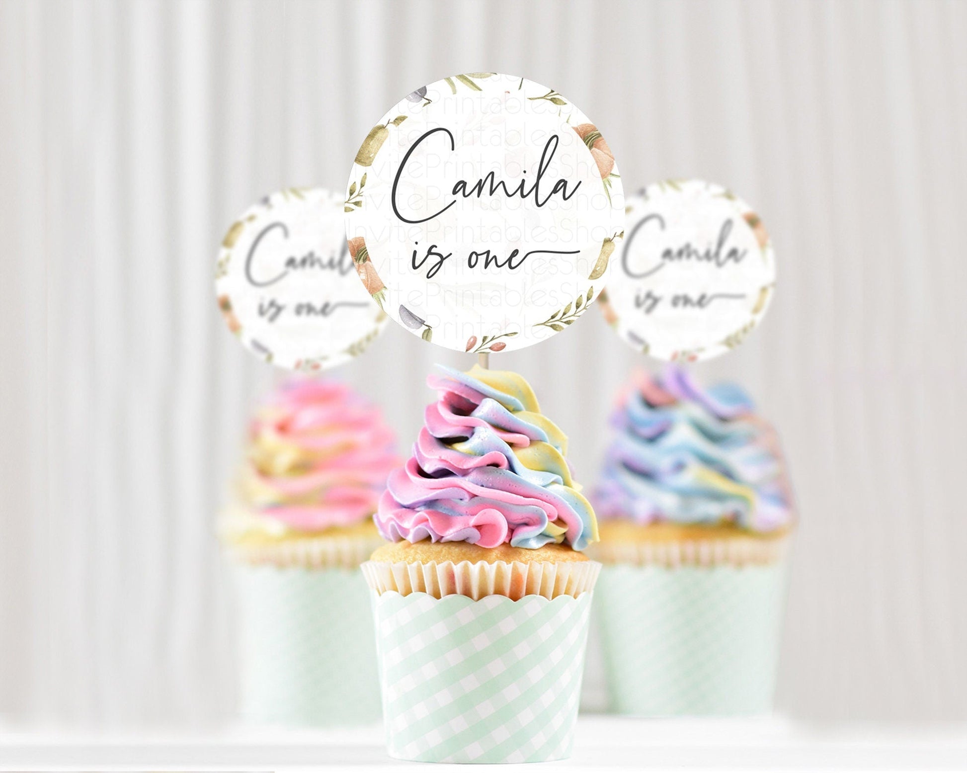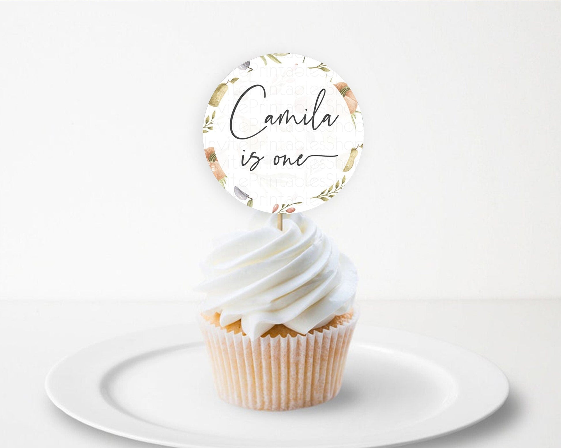 Pumpkin Cupcake Pear Pumpkin Plum Cupcake Toppers Watercolor Ladybug Plum Pear Pumpkin Vegetable Country Garden Decor D10543