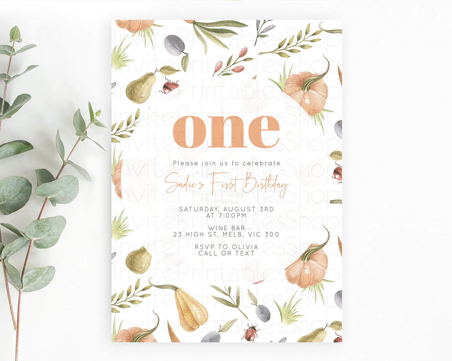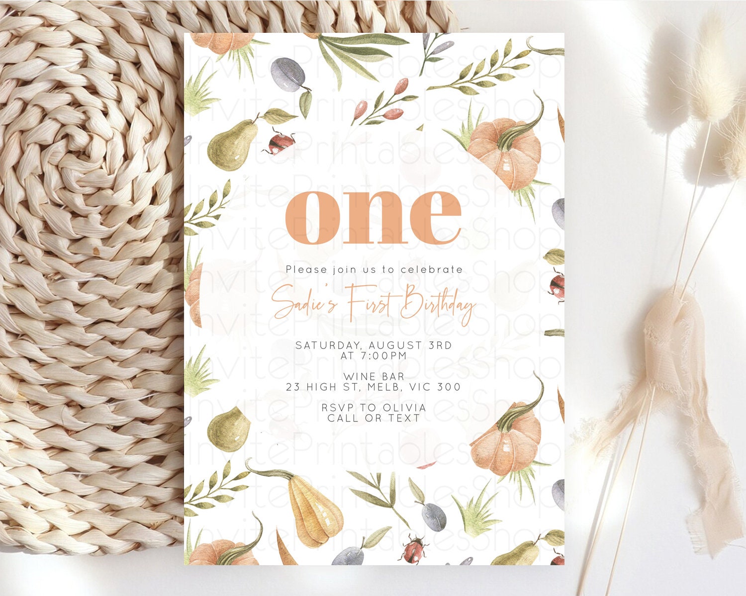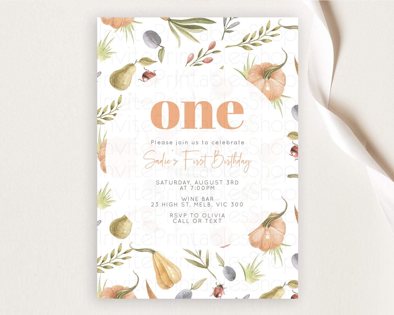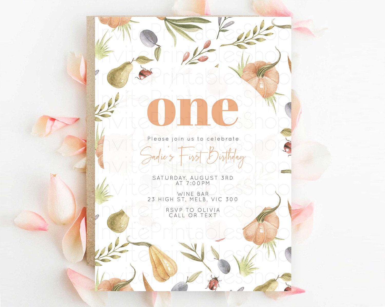 Pumpkin Invitation Pear Invitation Ladybug Invitation Plum Invitation Ladybug Invitation Watercolor Invitation 2nd First Birthday D10543