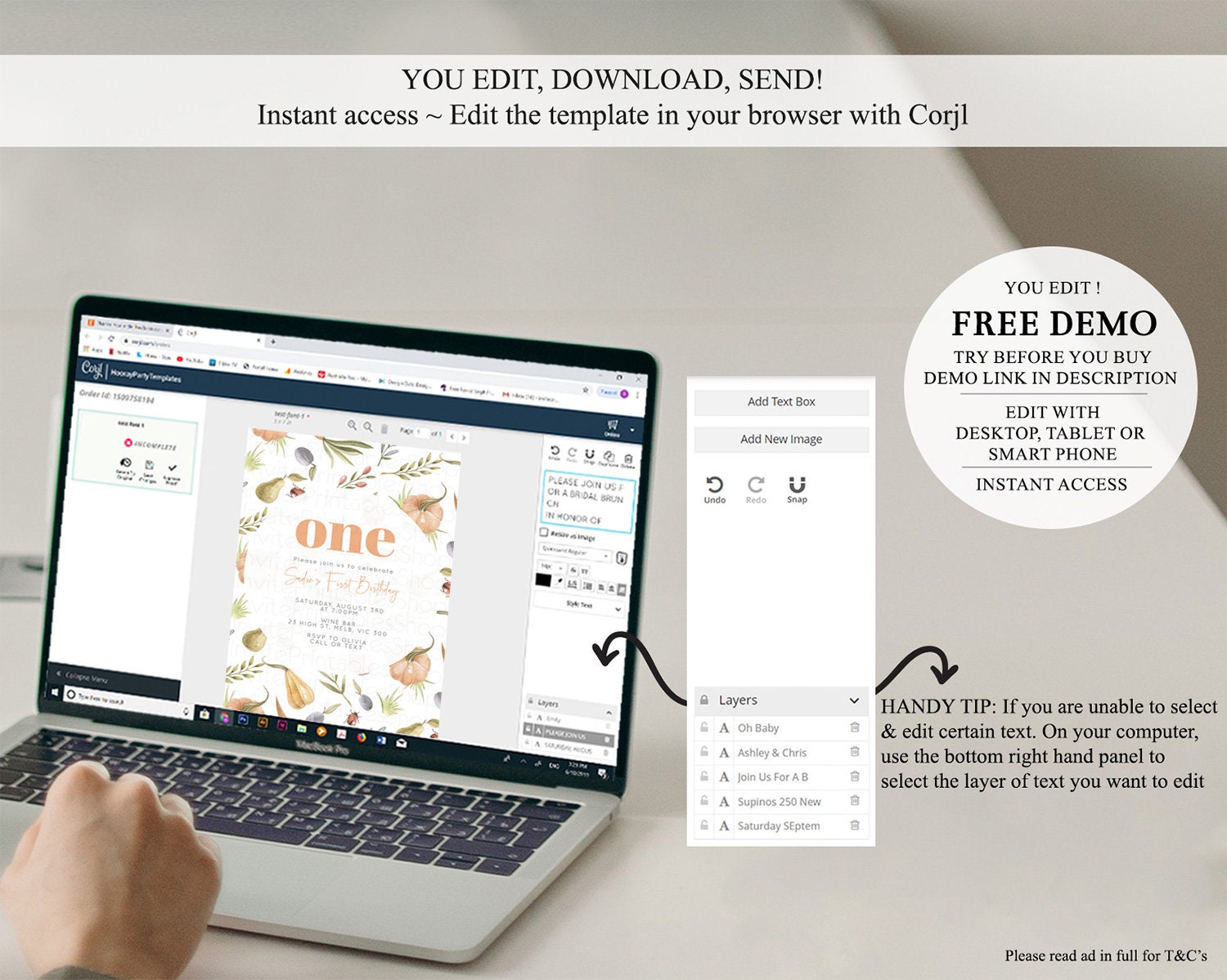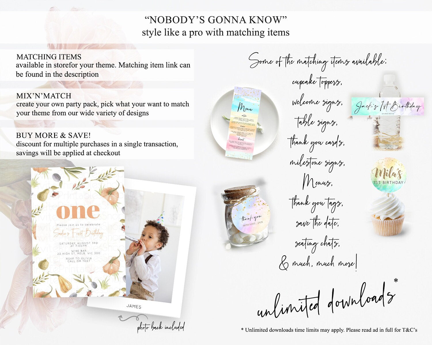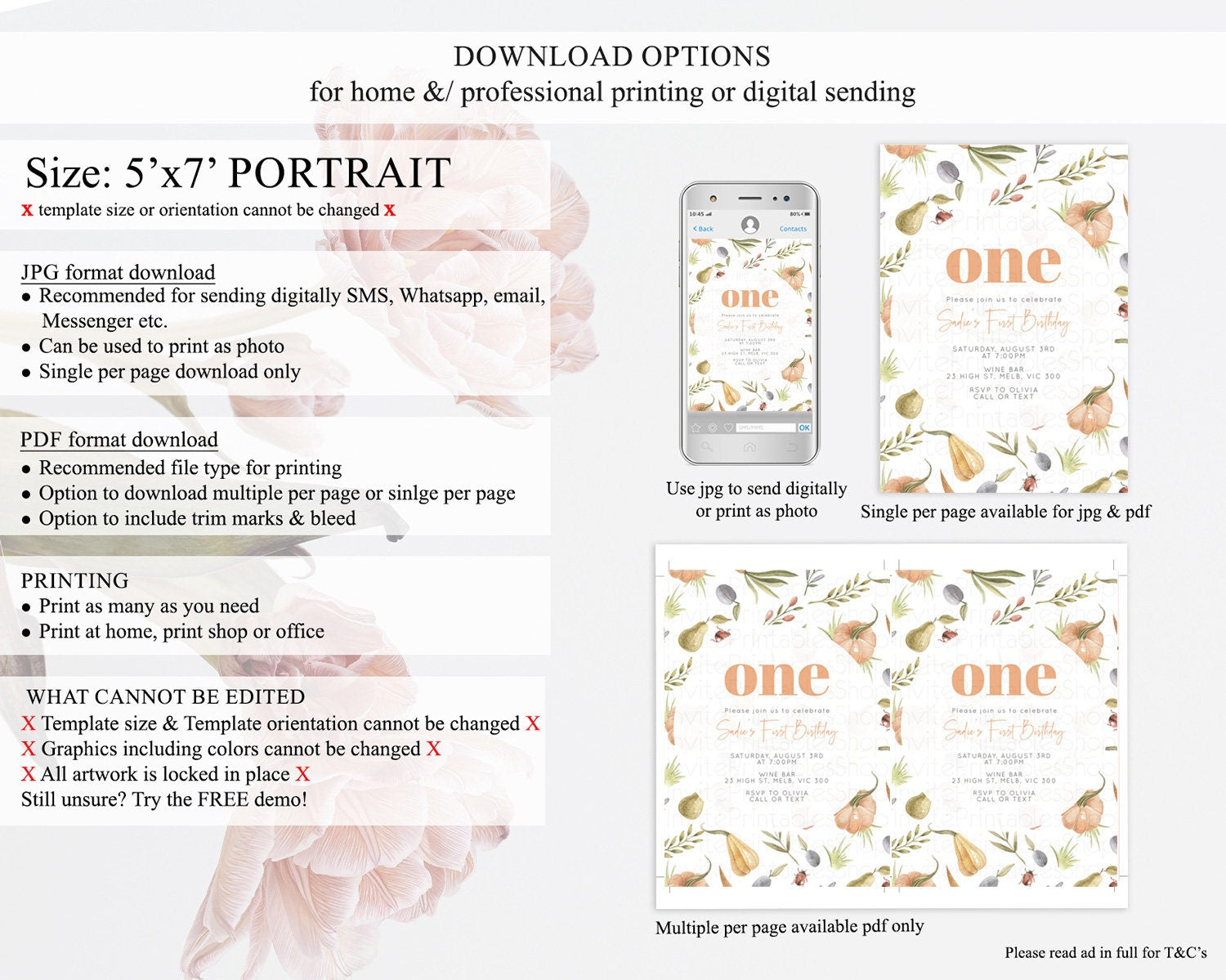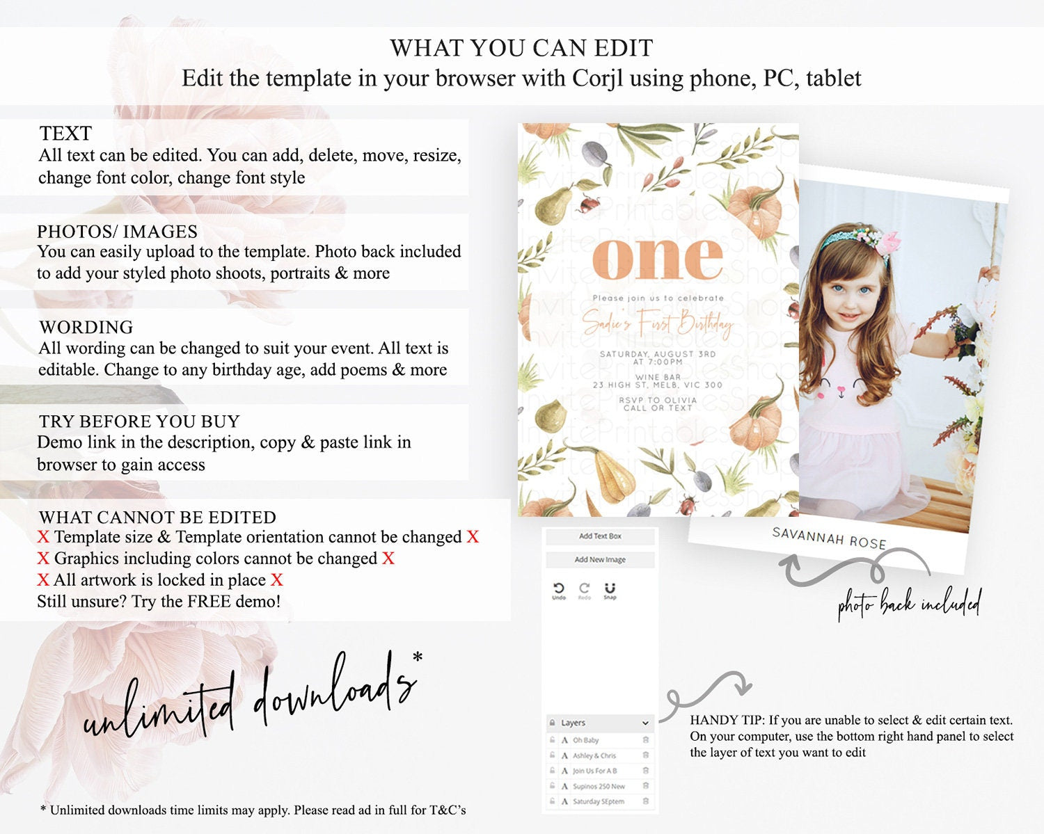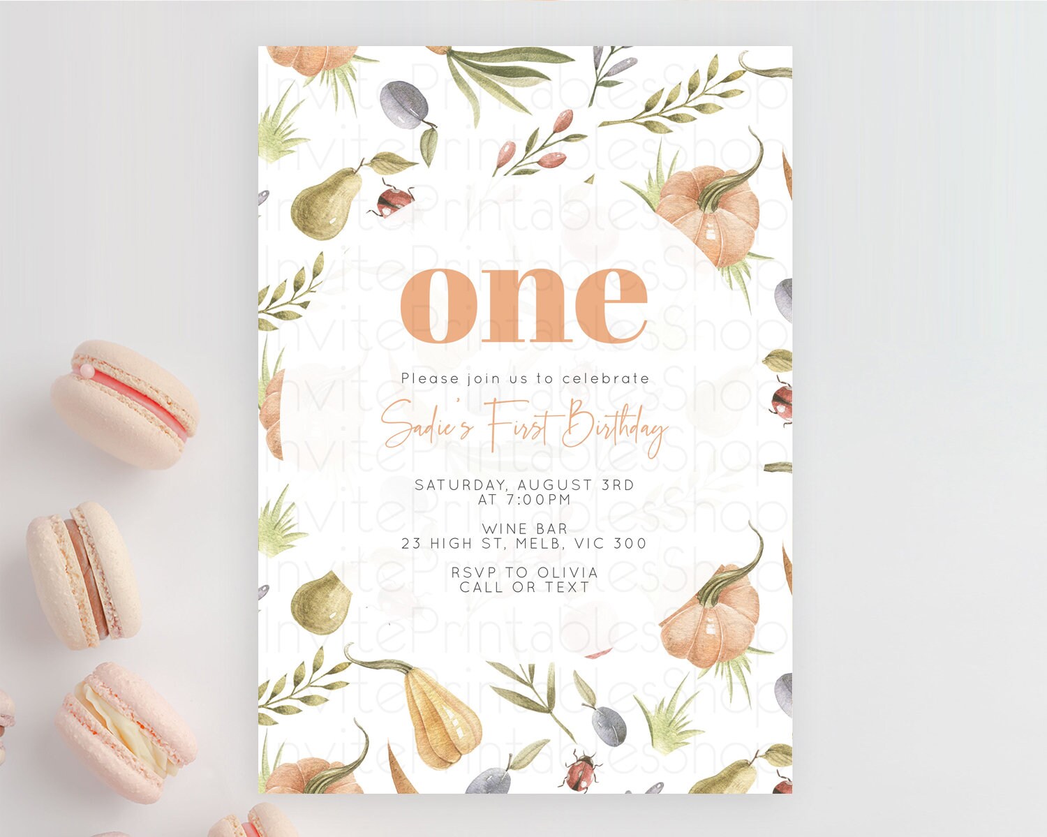 Pumpkin Invitation Pear Invitation Ladybug Invitation Plum Invitation Ladybug Invitation Watercolor Invitation 2nd First Birthday D10543