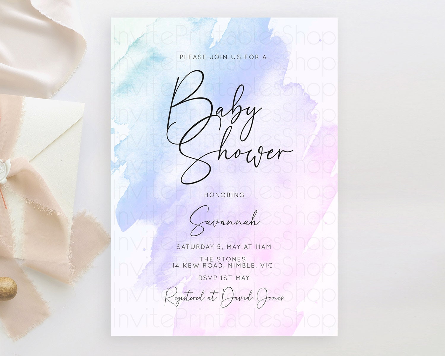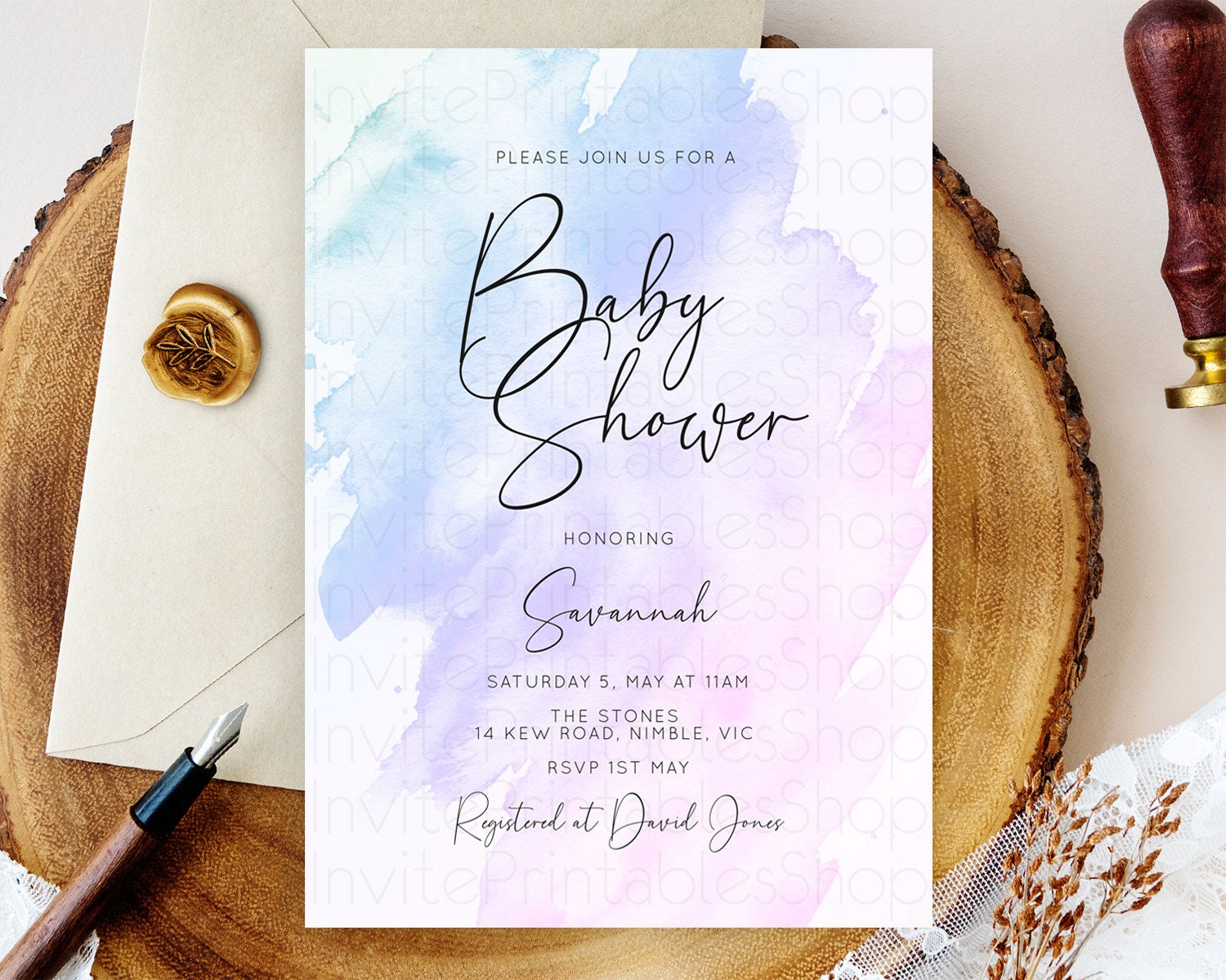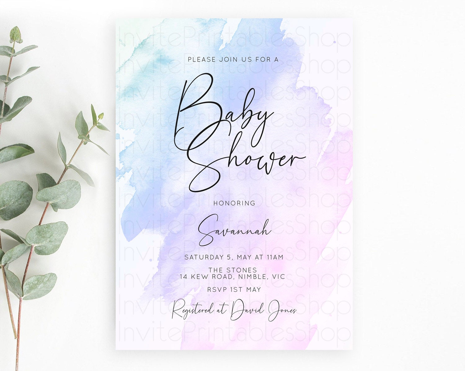 Purple Baby Shower Invitation Purple Watercolor Baby Shower Invitation Pastel Purple Watercolor Invitation Purple Splash Invitation D10165